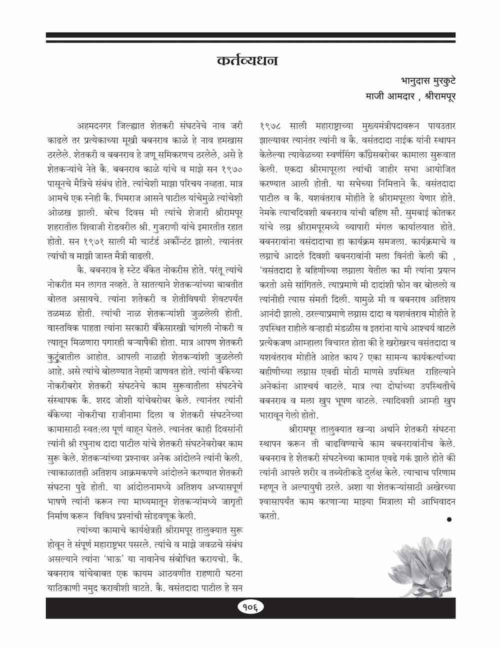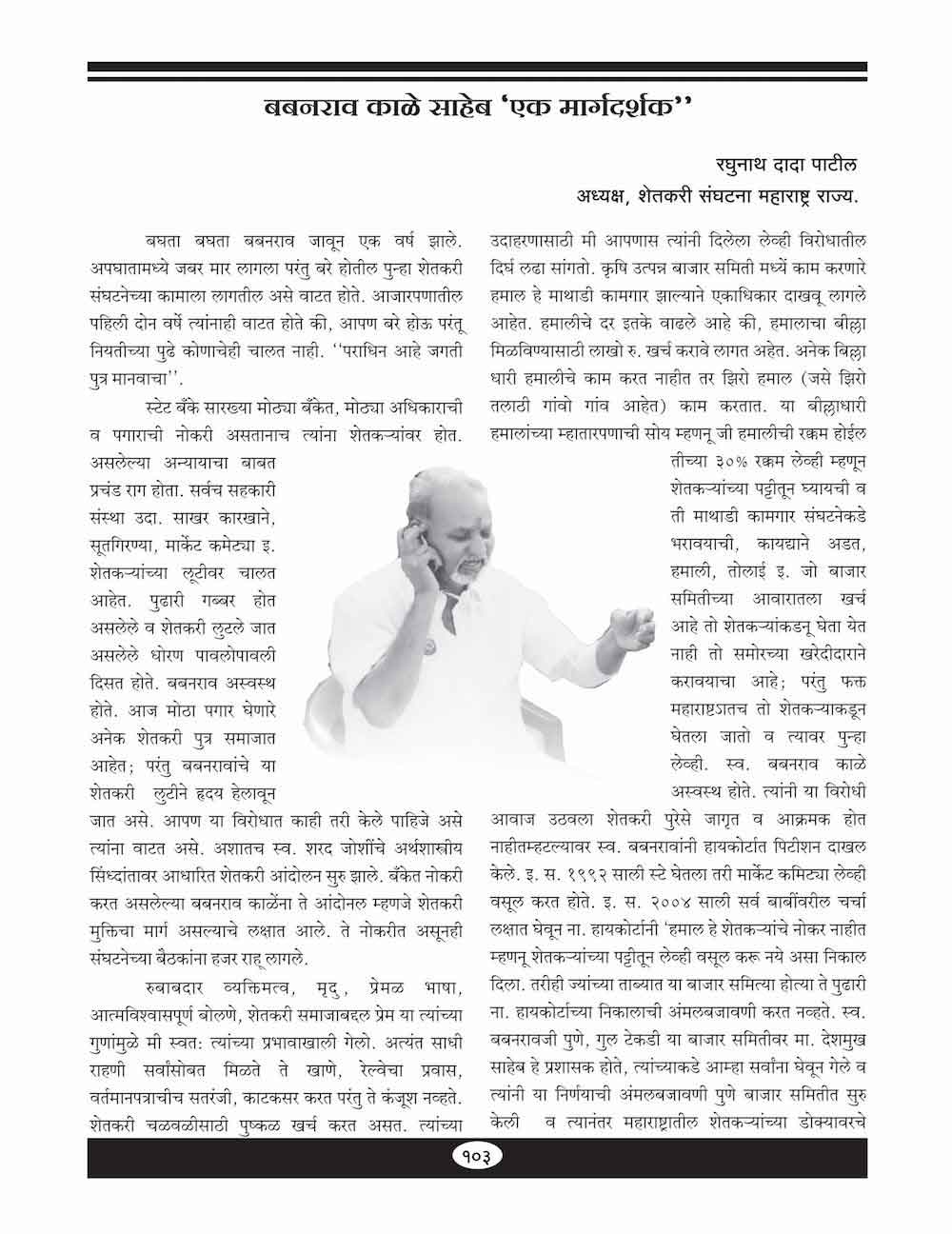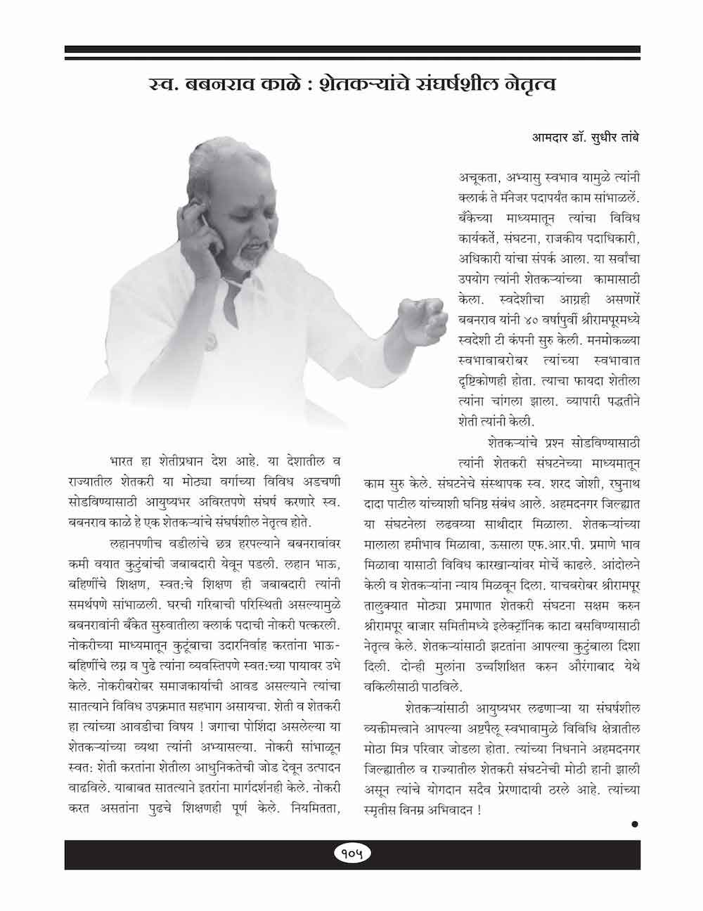 स्व. बबनराव काळे : शेतकऱ्यांचे संघर्षशील नेतृत्व -१०५