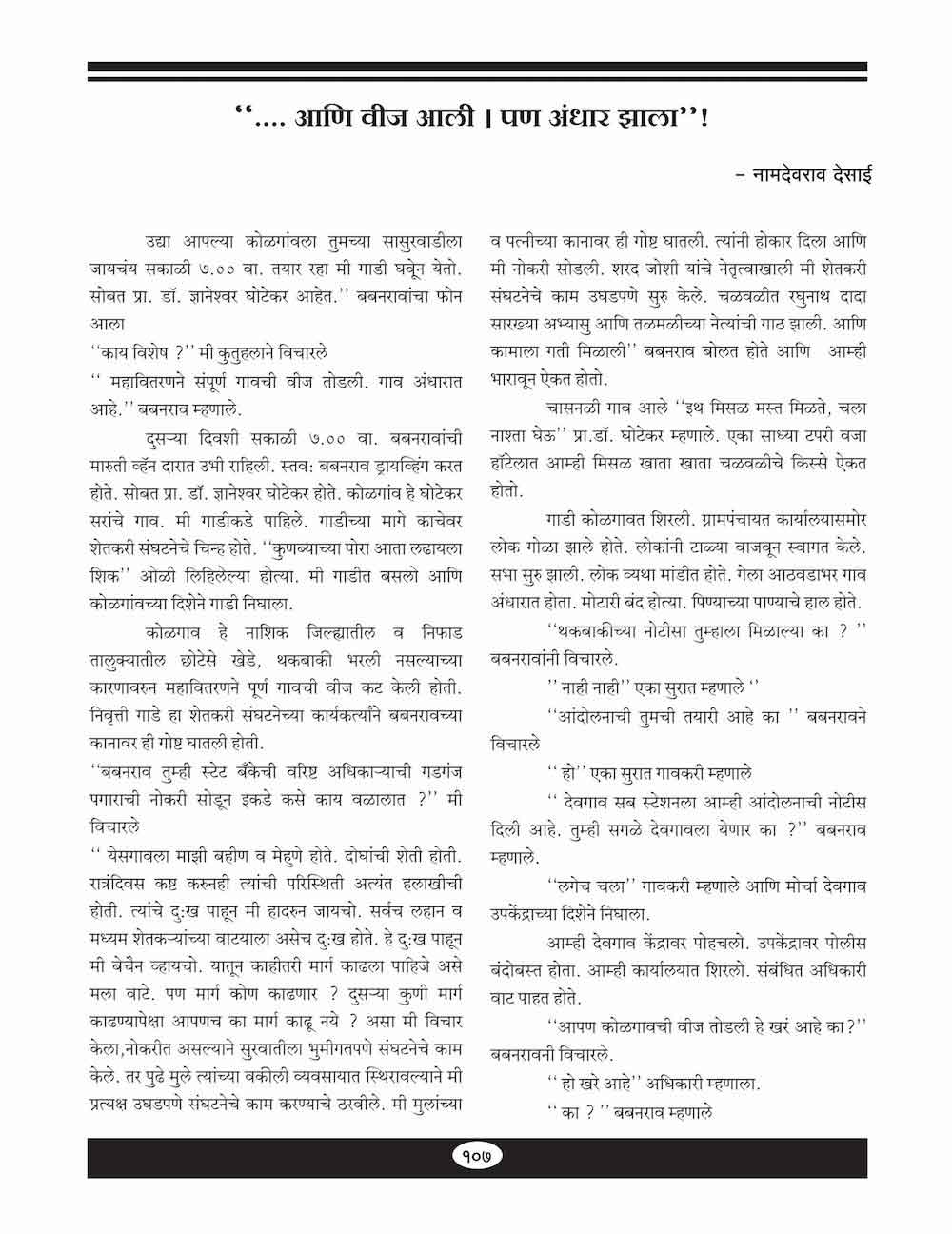 …आणि "वीज आली पण अंधार झाला "-१०७