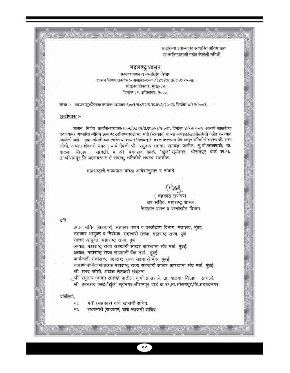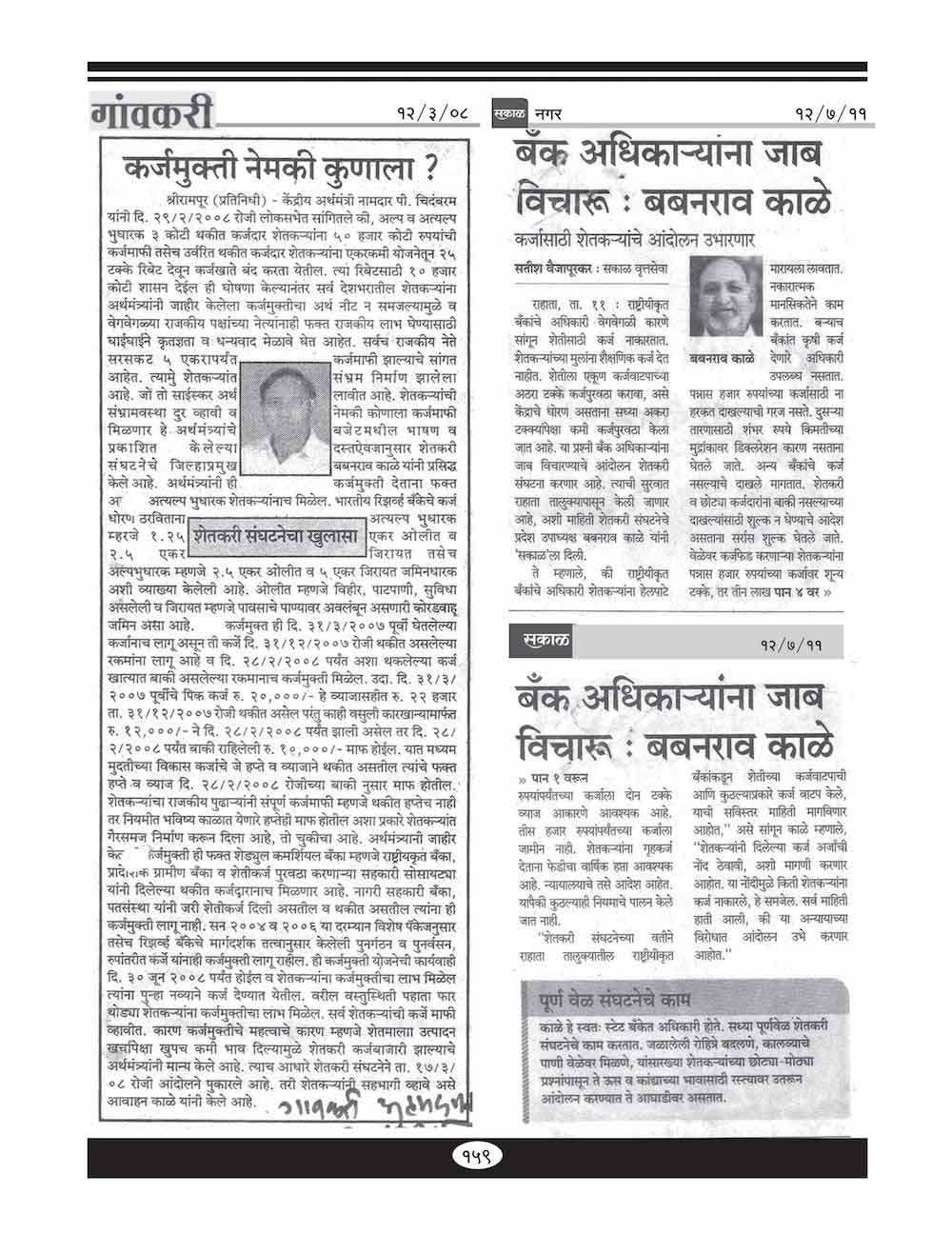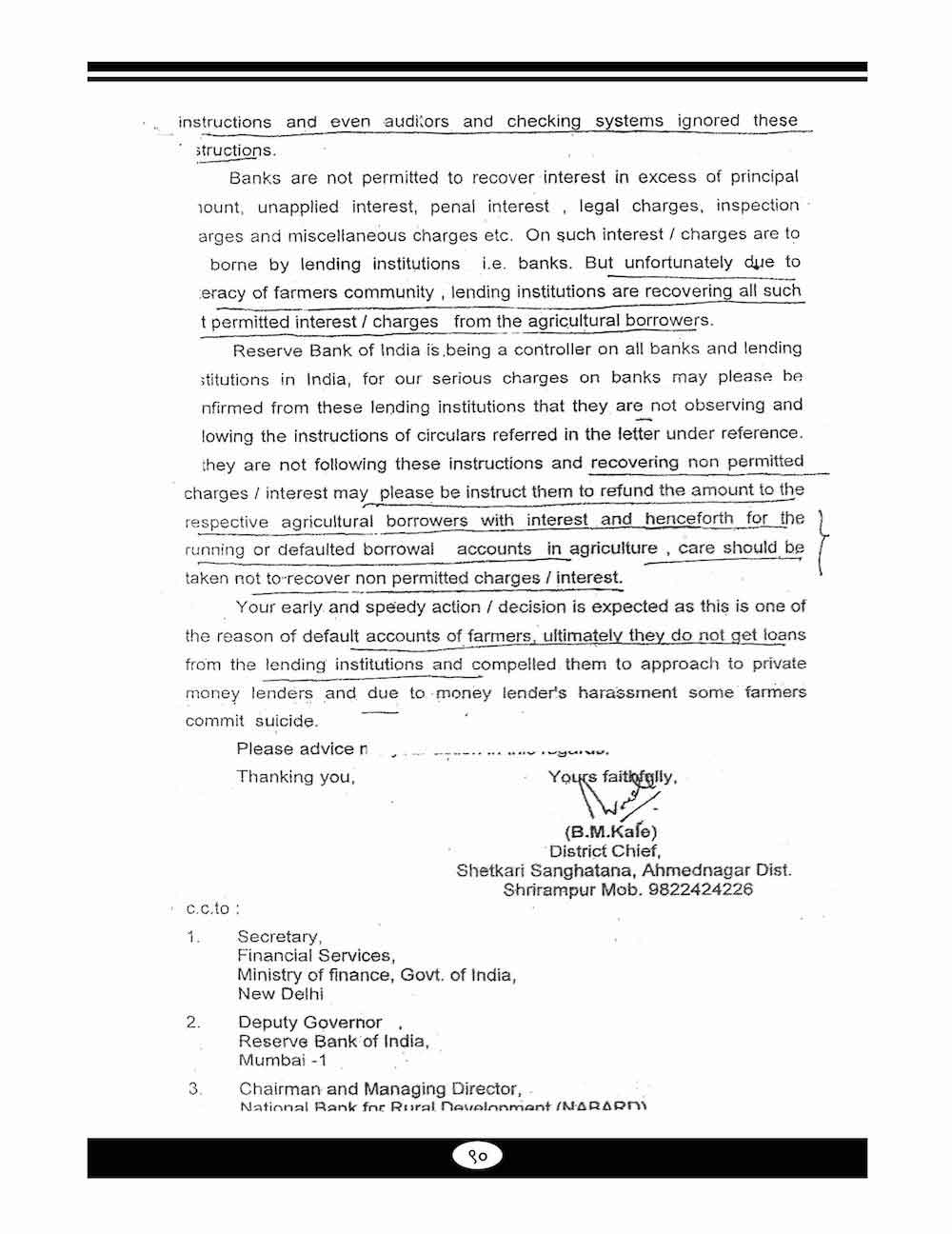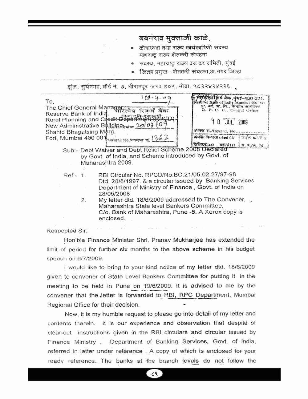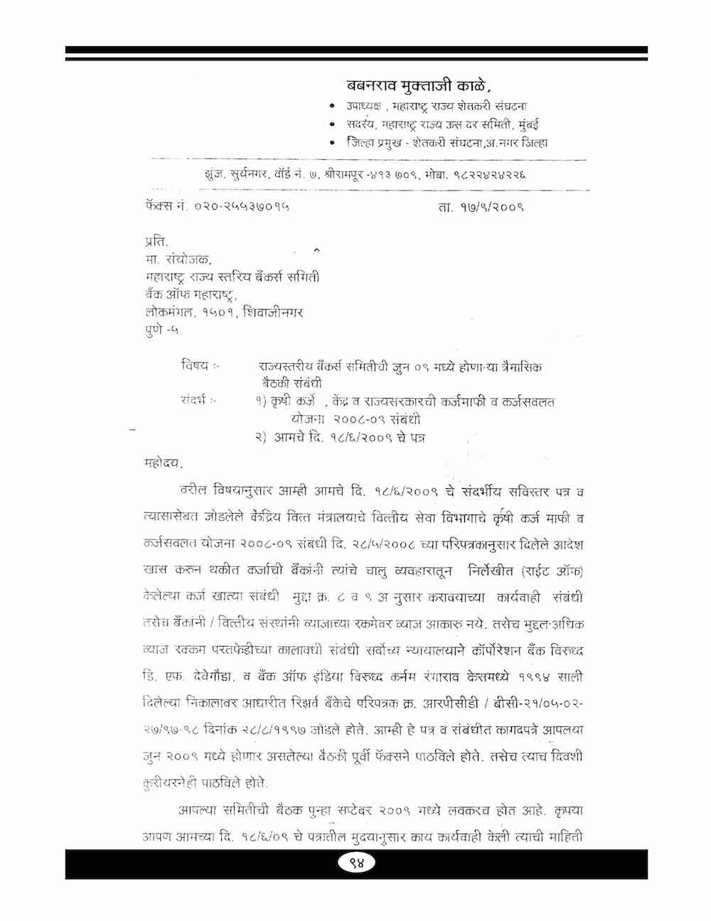 स्व. बबनरावजी काळे यांनी कर्ज माफी संदर्भात केलेले महत्वाचे पत्रव्यवहार-८९