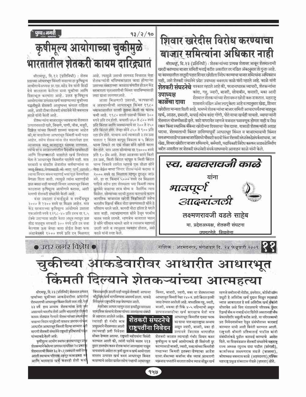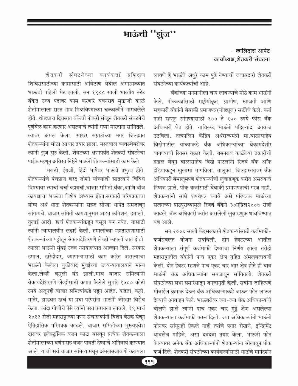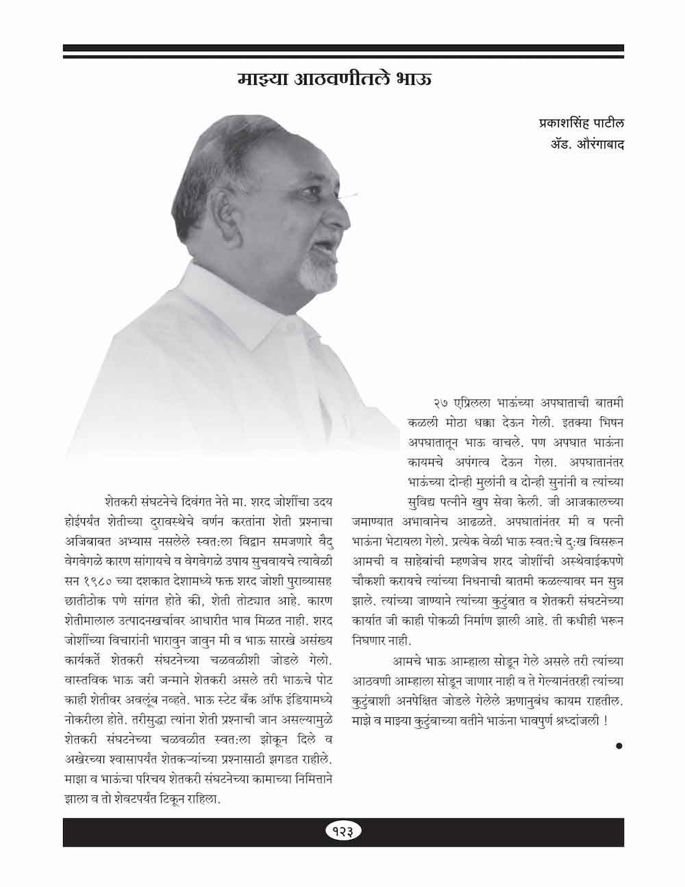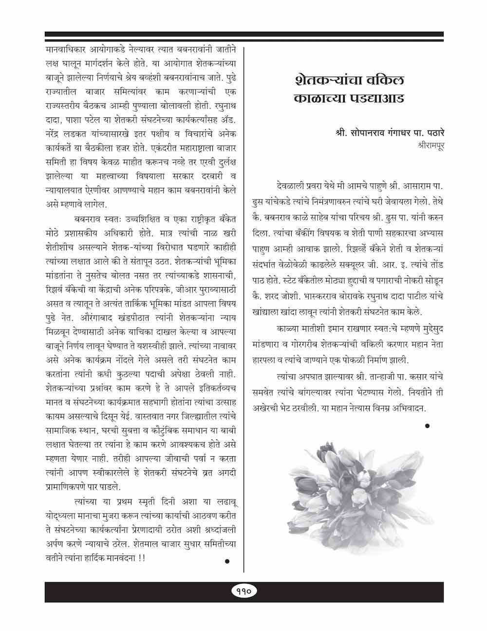 शेतकऱ्यांचा वकील काळाच्या पडद्याआड - ११०