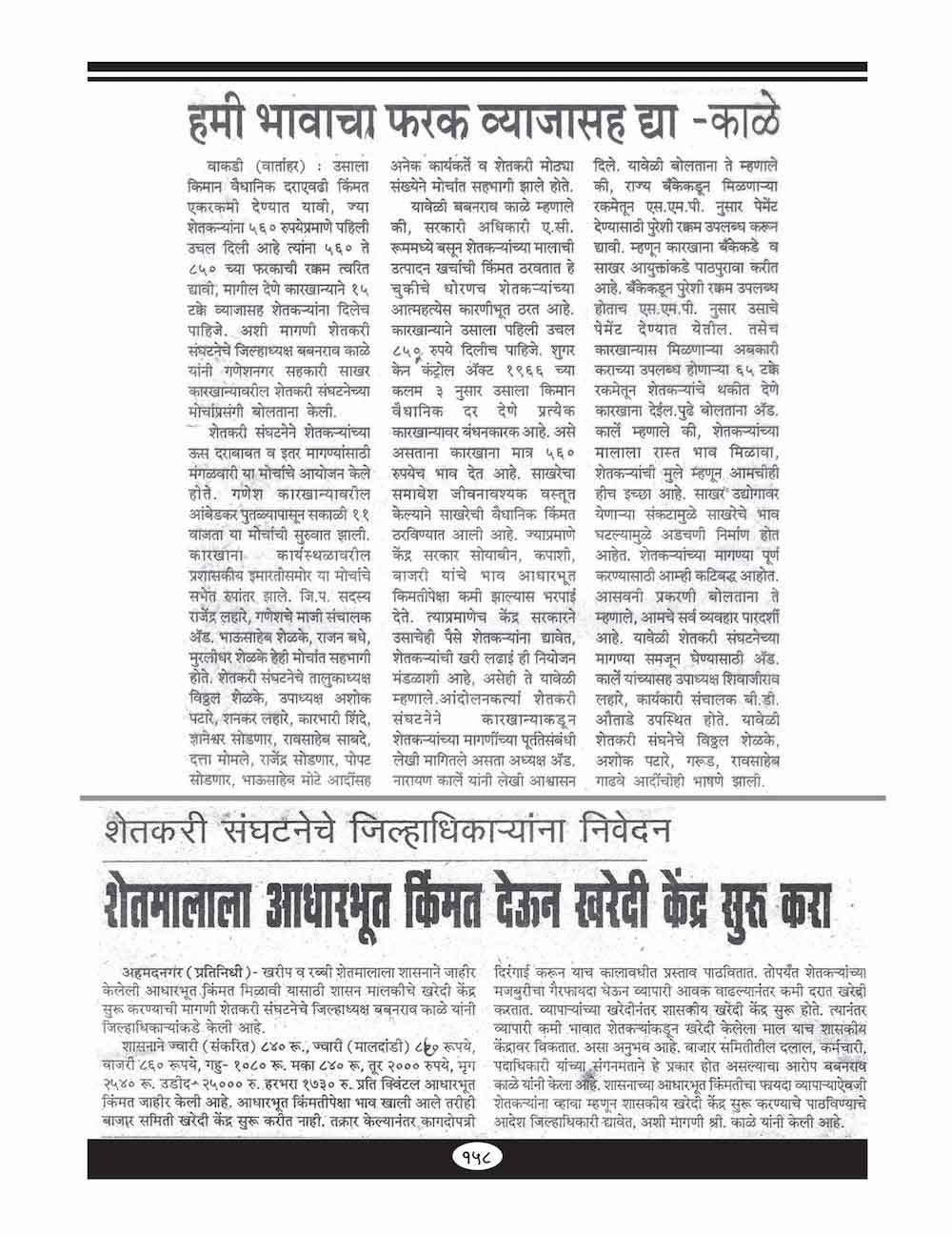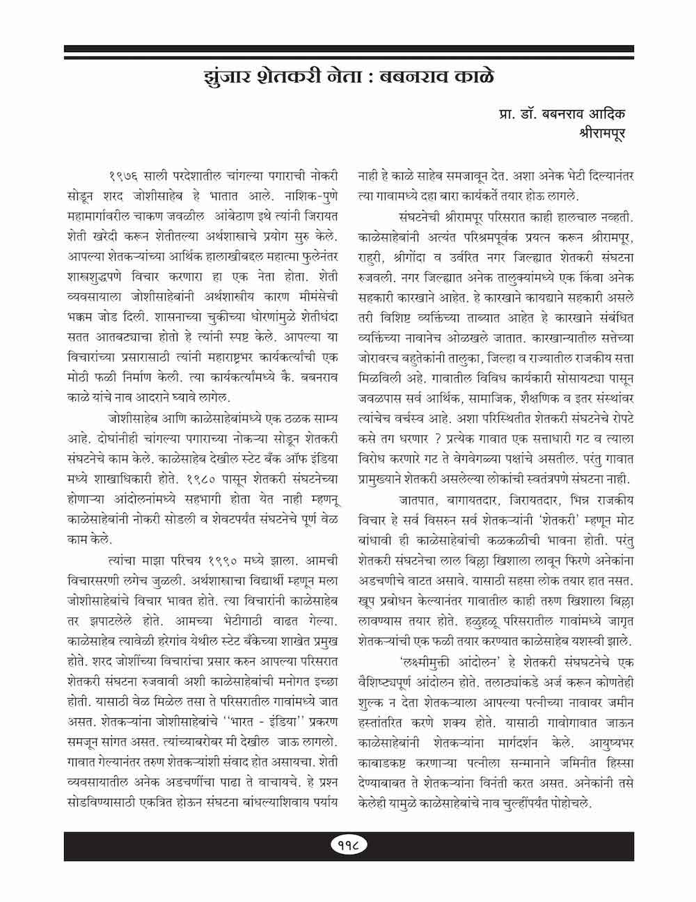 झुंजार शेतकरी नेता : बबनराव काळे - ११८