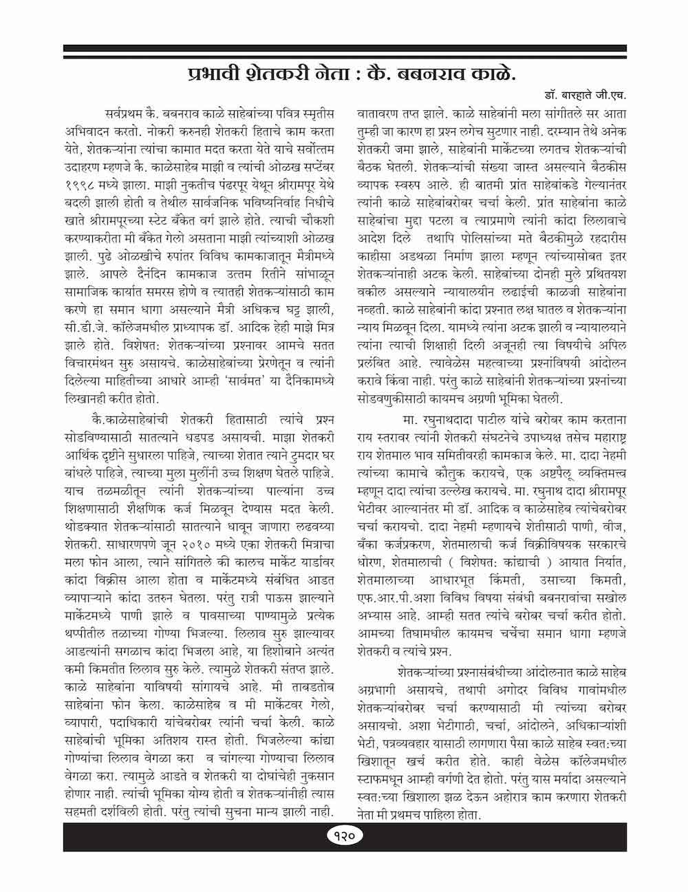 प्रभावी शेतकरी नेता : कै. बबनराव काळे - १२०