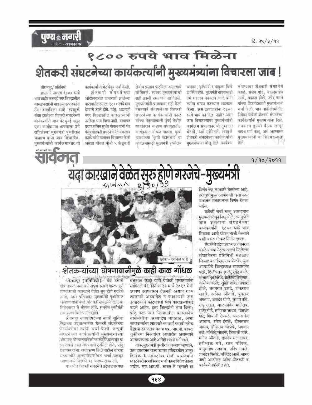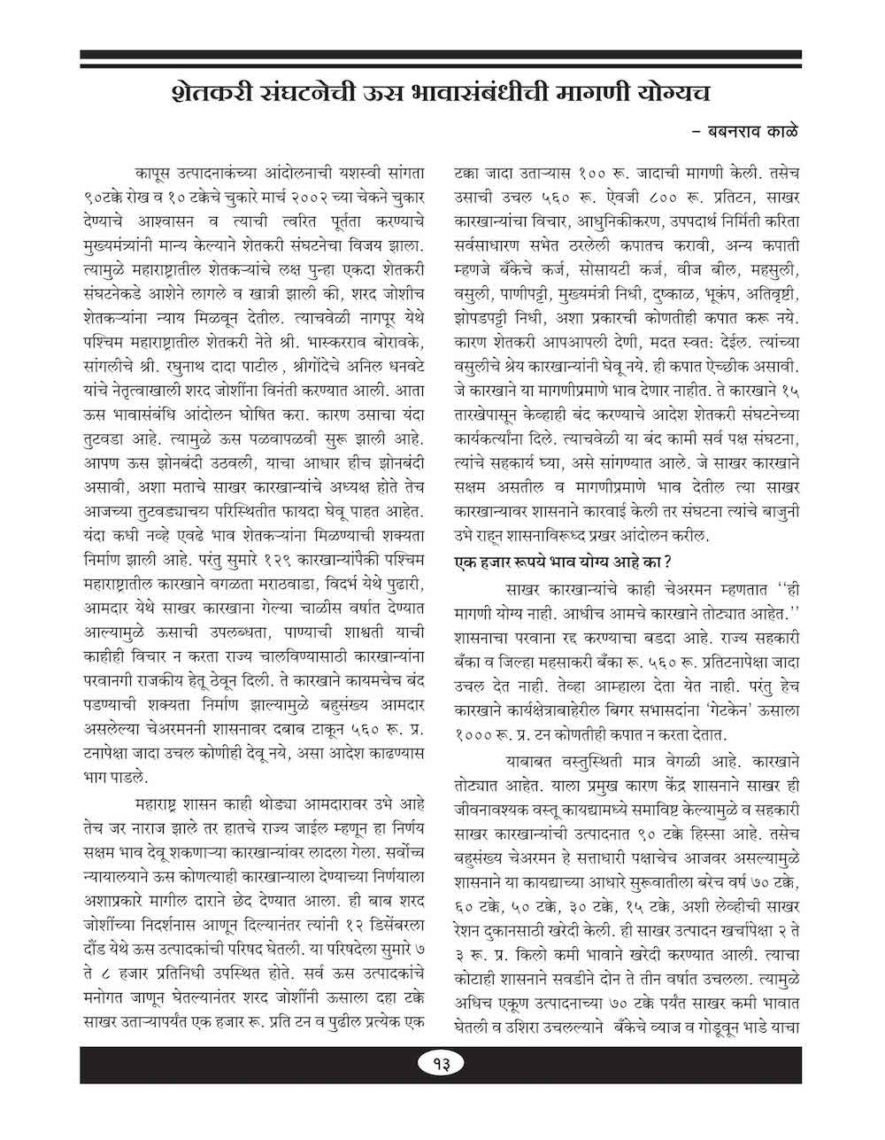 शेतकरी संघटनेची उस भावासंबंधीची मागणी योग्यच - १३