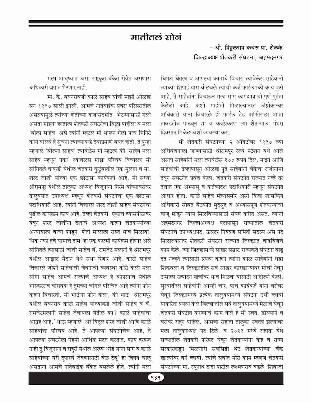 शेतकऱ्यांचे कैवारी -१३०