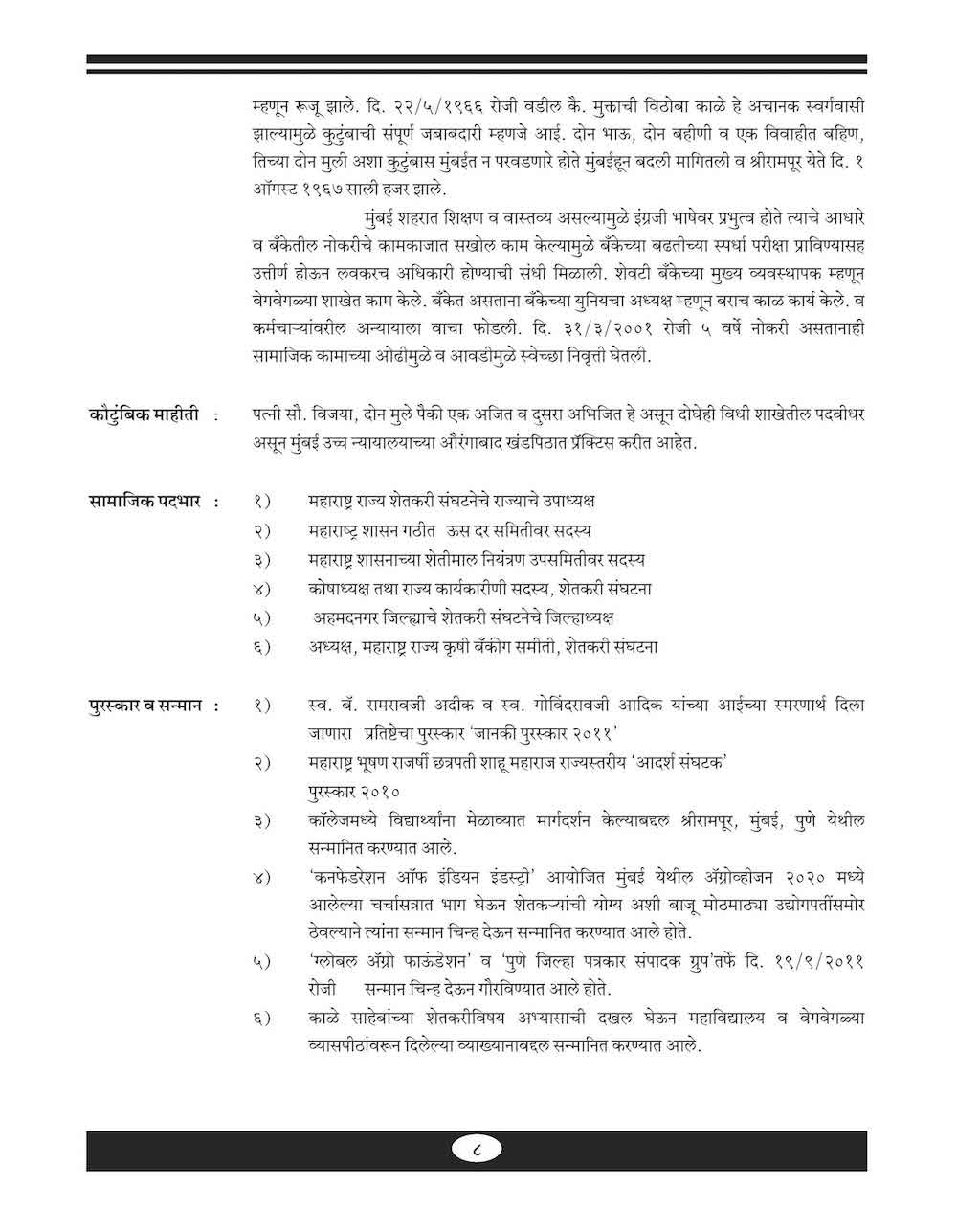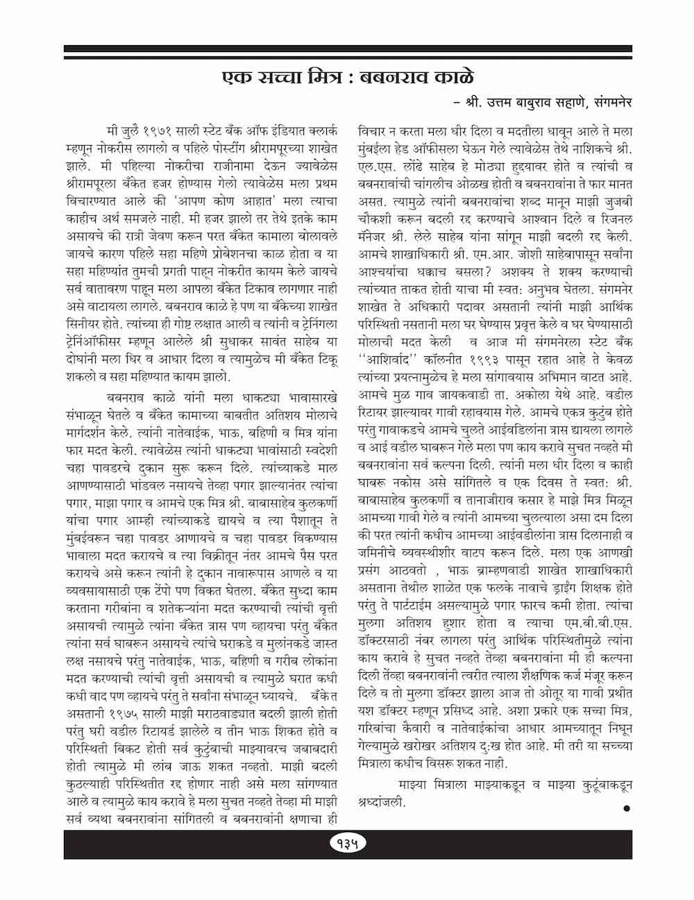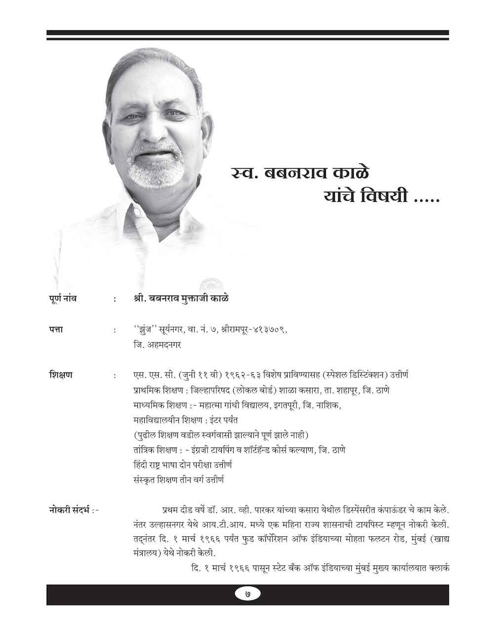 स्व बाबांरावजी काळे यांच्या विषयी…. - ७