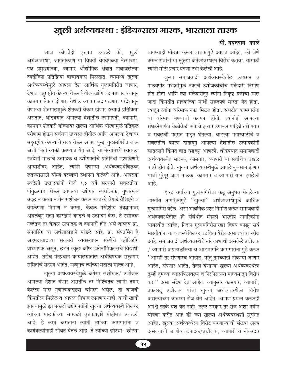 खुली अर्थव्यवस्था:इंडियन्स ला मारक,भारताला तारक - १५