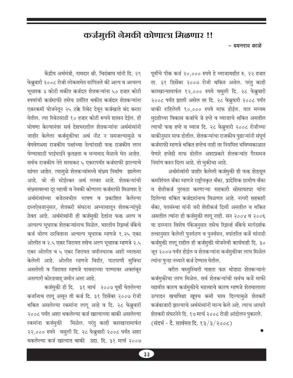 कर्जमुक्ती नेमकी कोणाला मिळणार! - ३३