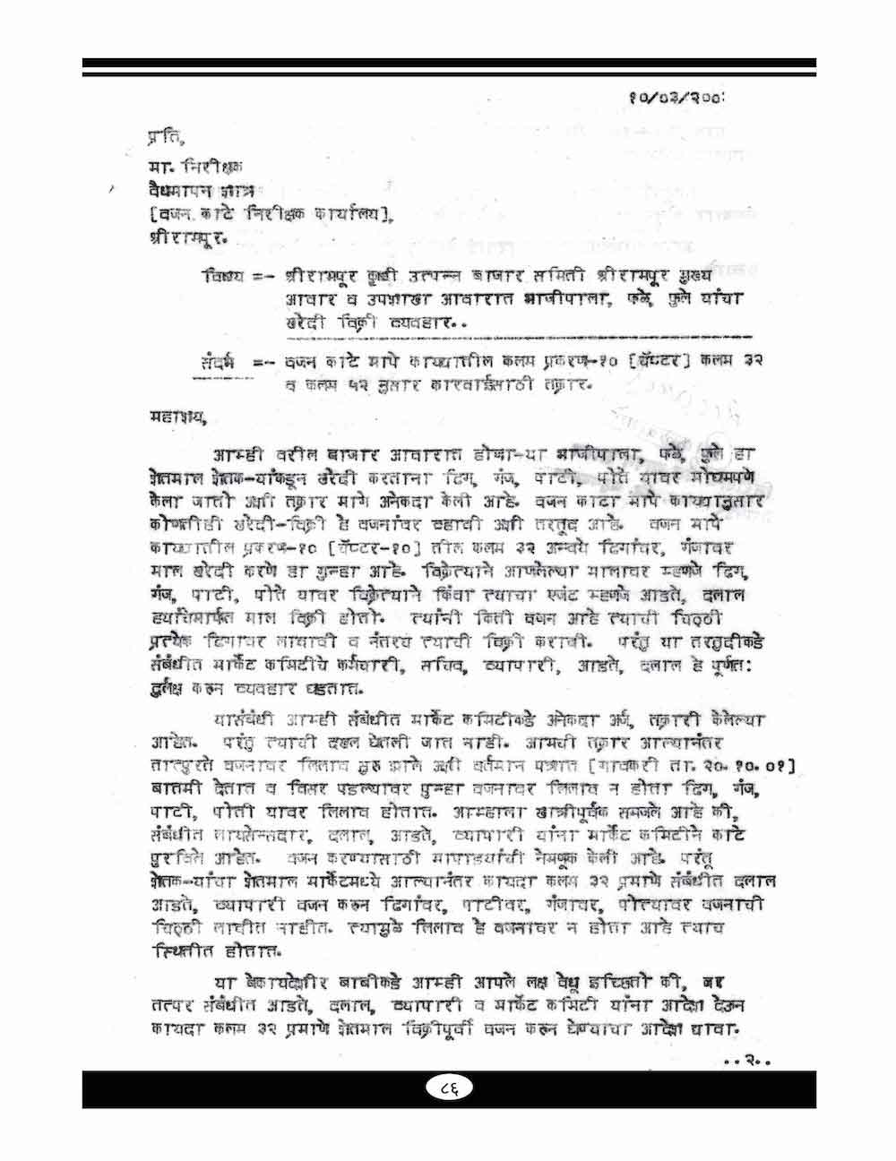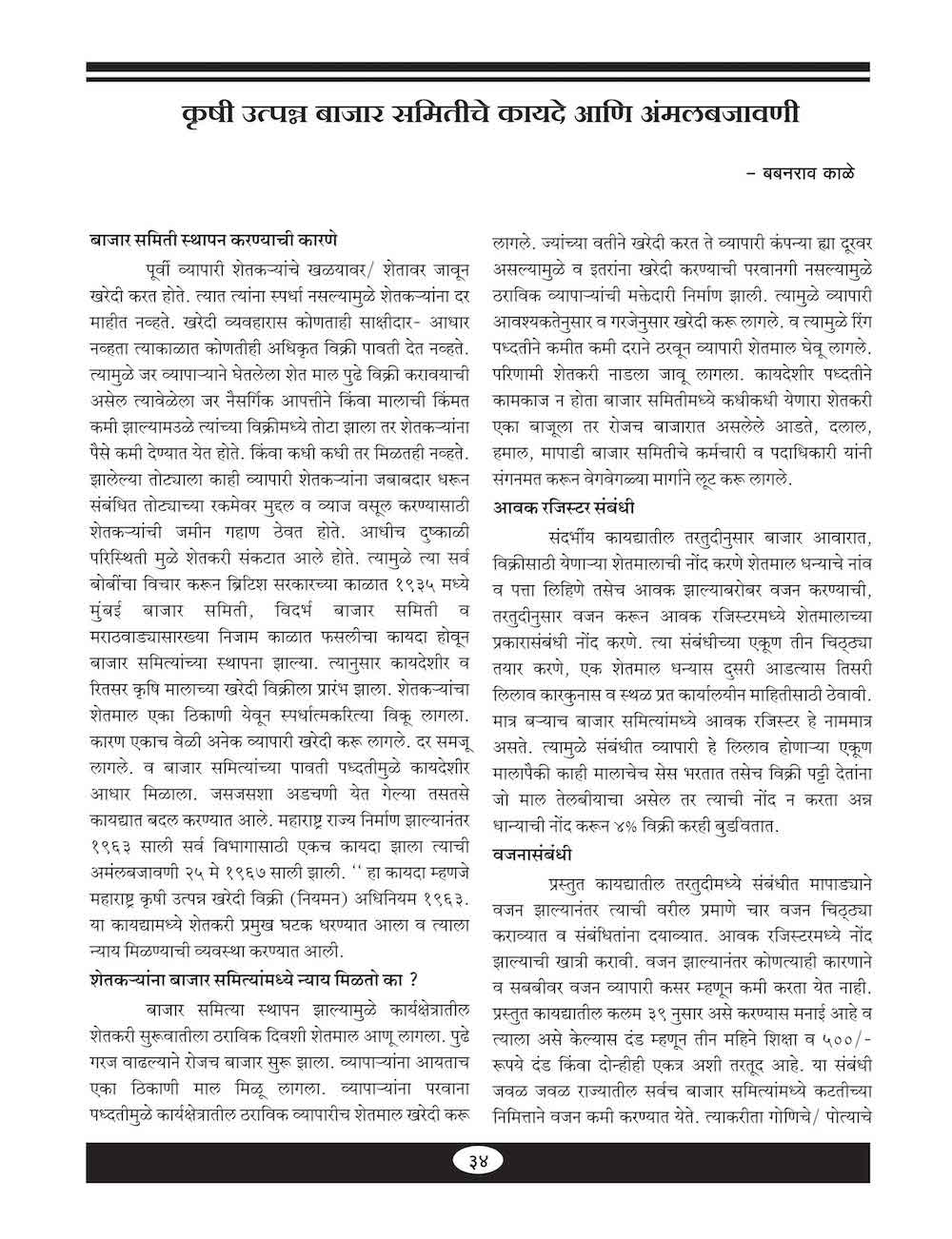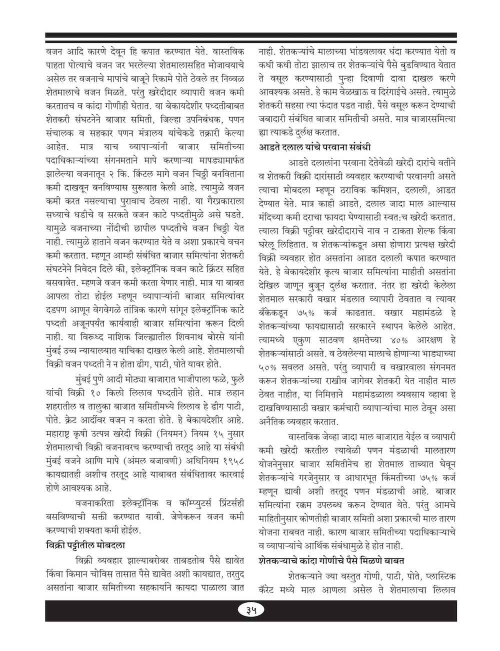 कृषी उत्पन्न बाजार समितीचे कायदे आणि अंमल बजावणी - ३४