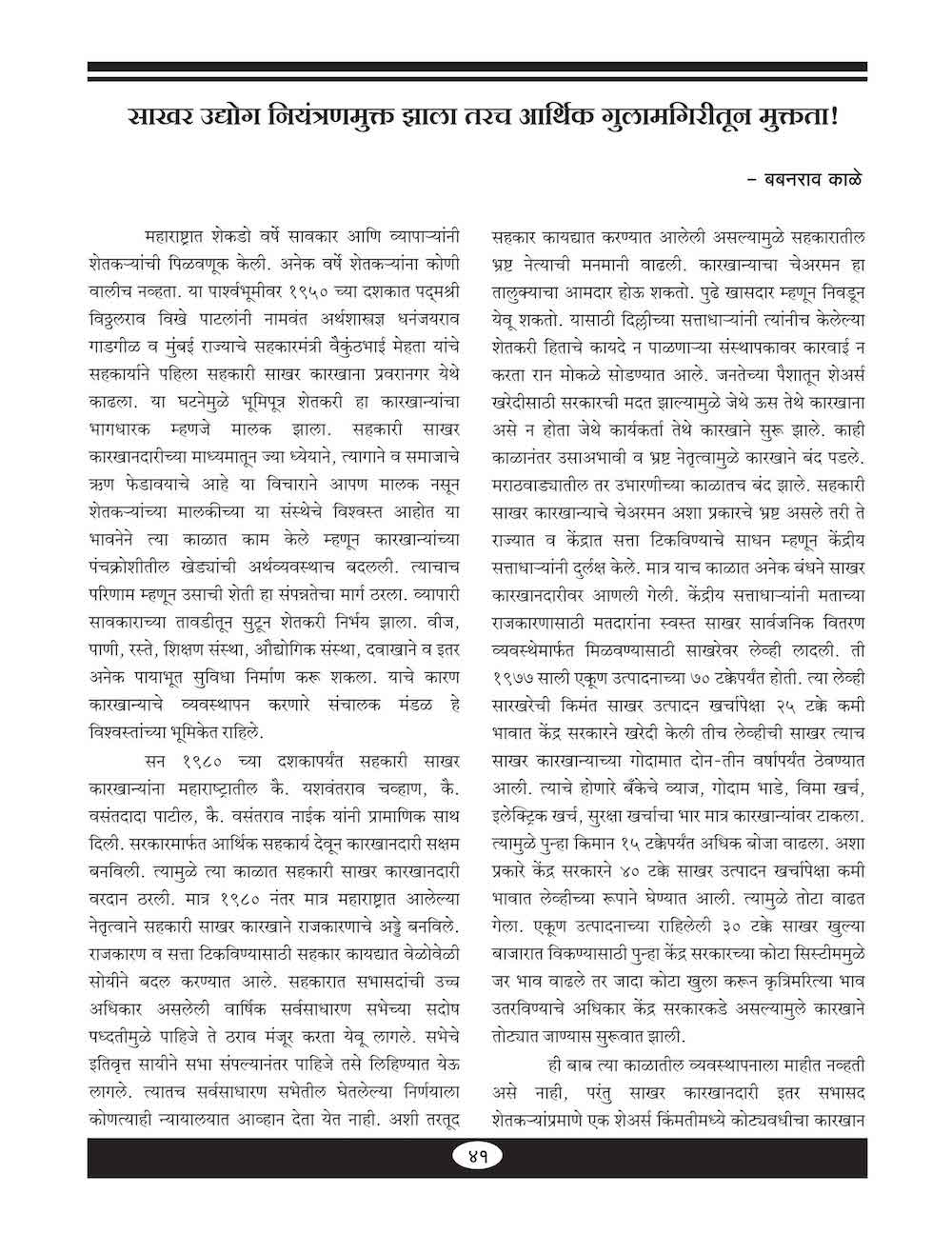 साखर उद्योग नियंत्रणमुक्त झाला तरच आर्थिक गुलामगिरीतून मुक्तता - ४१