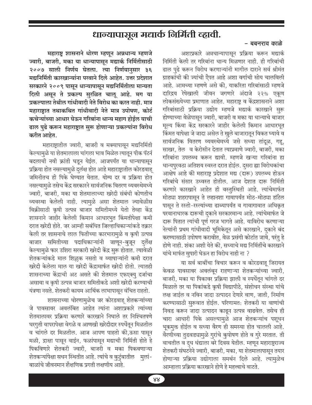 धान्यापासून मद्यार्क निर्मिती व्हावी - ४४