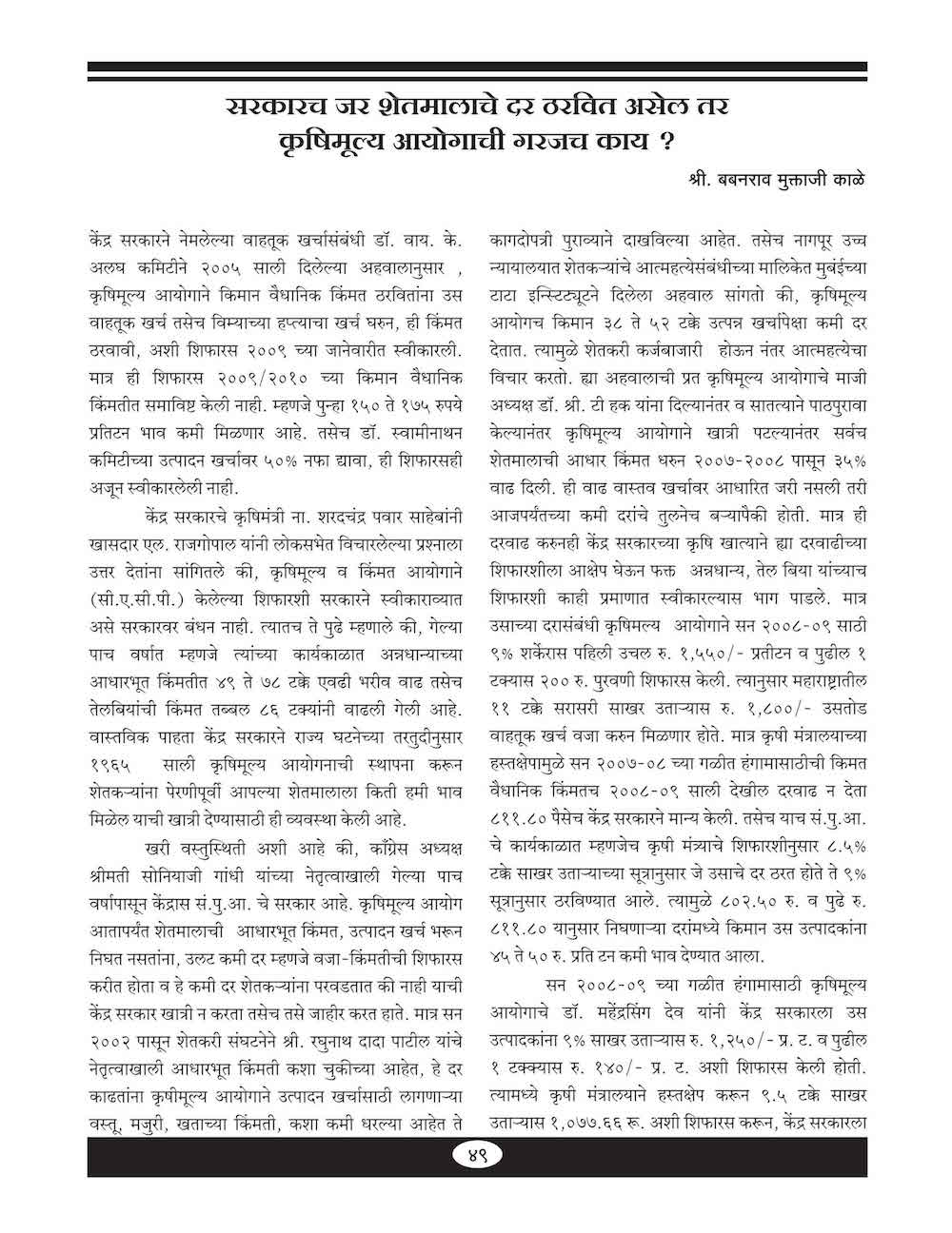 सरकारच जर शेतमालाचे दर ठरवीत असेल तर कृषिमूल्य आयोगाची गरजच काय? - ४९