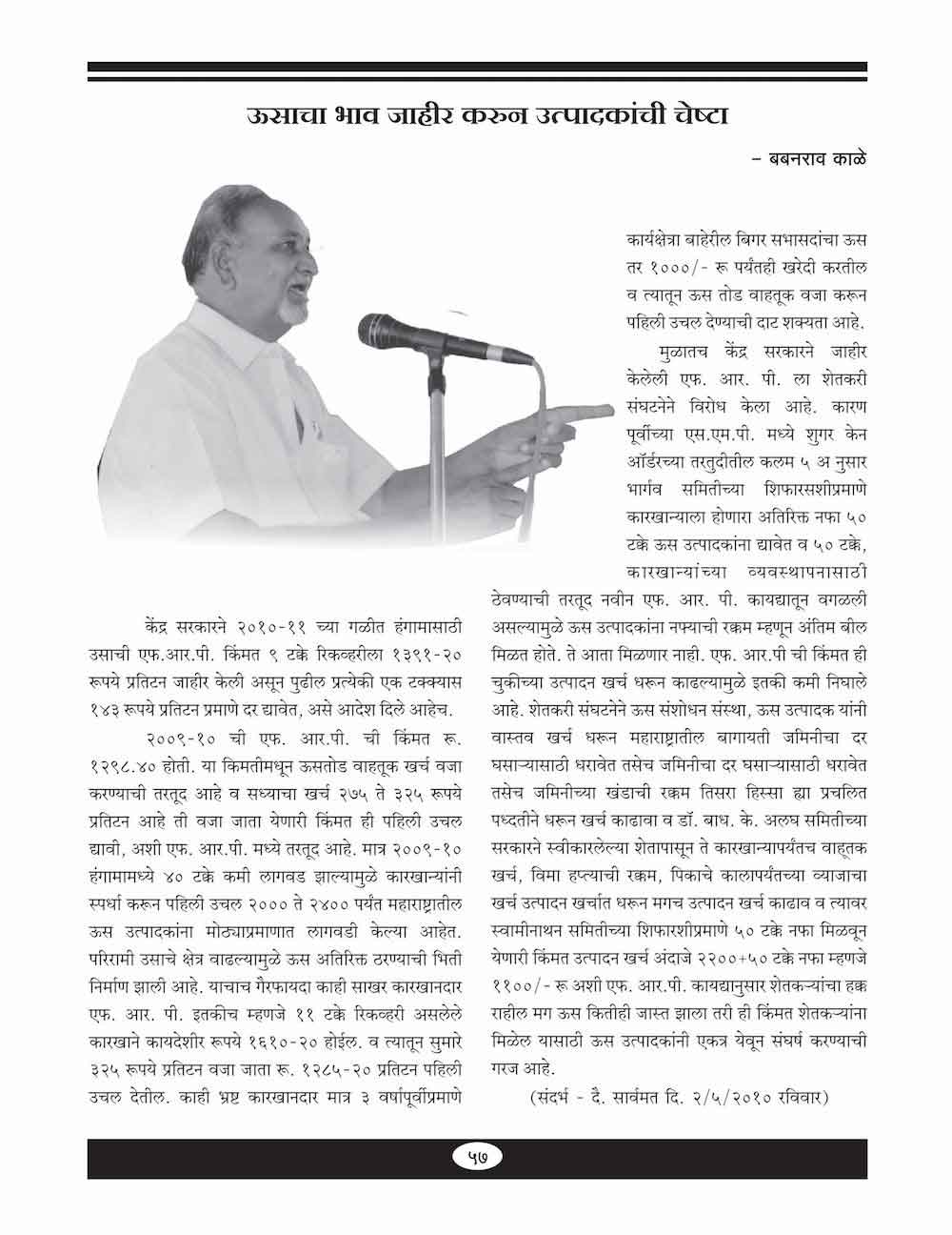 उसाचा भाव जाहीर करून उत्पादकाची चेष्टा - ५७