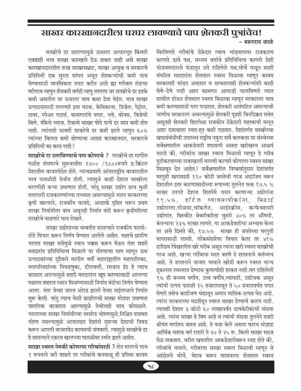 साखर कारखानदारीला घरघर लावण्याचे पाप शेतकरी पुत्रांचेच - ५८