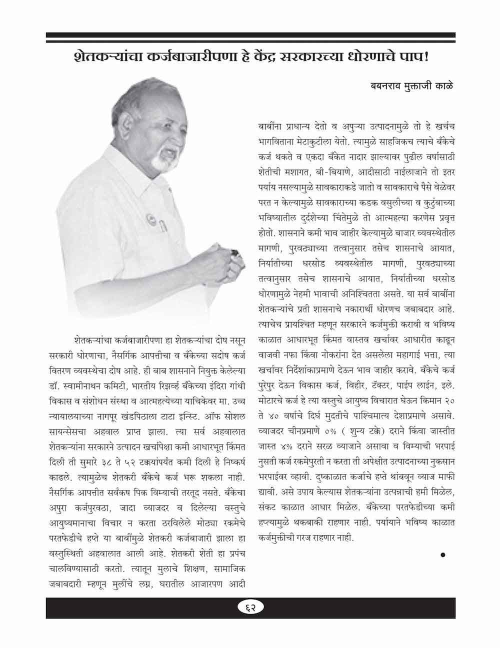 शेतकऱ्यांचा कर्जबाजारीपणा हे केंद्र सरकारच्या धोरणाचे पाप! - ६२