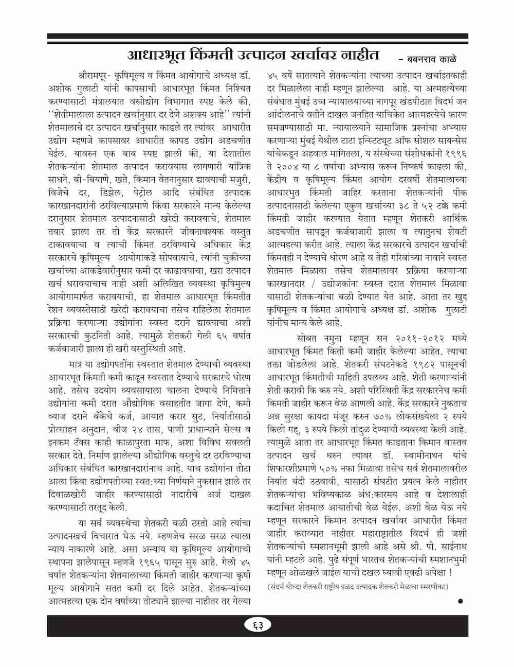 आधारभूत किंमती उत्पादन खर्चावर नाहीत - ६३