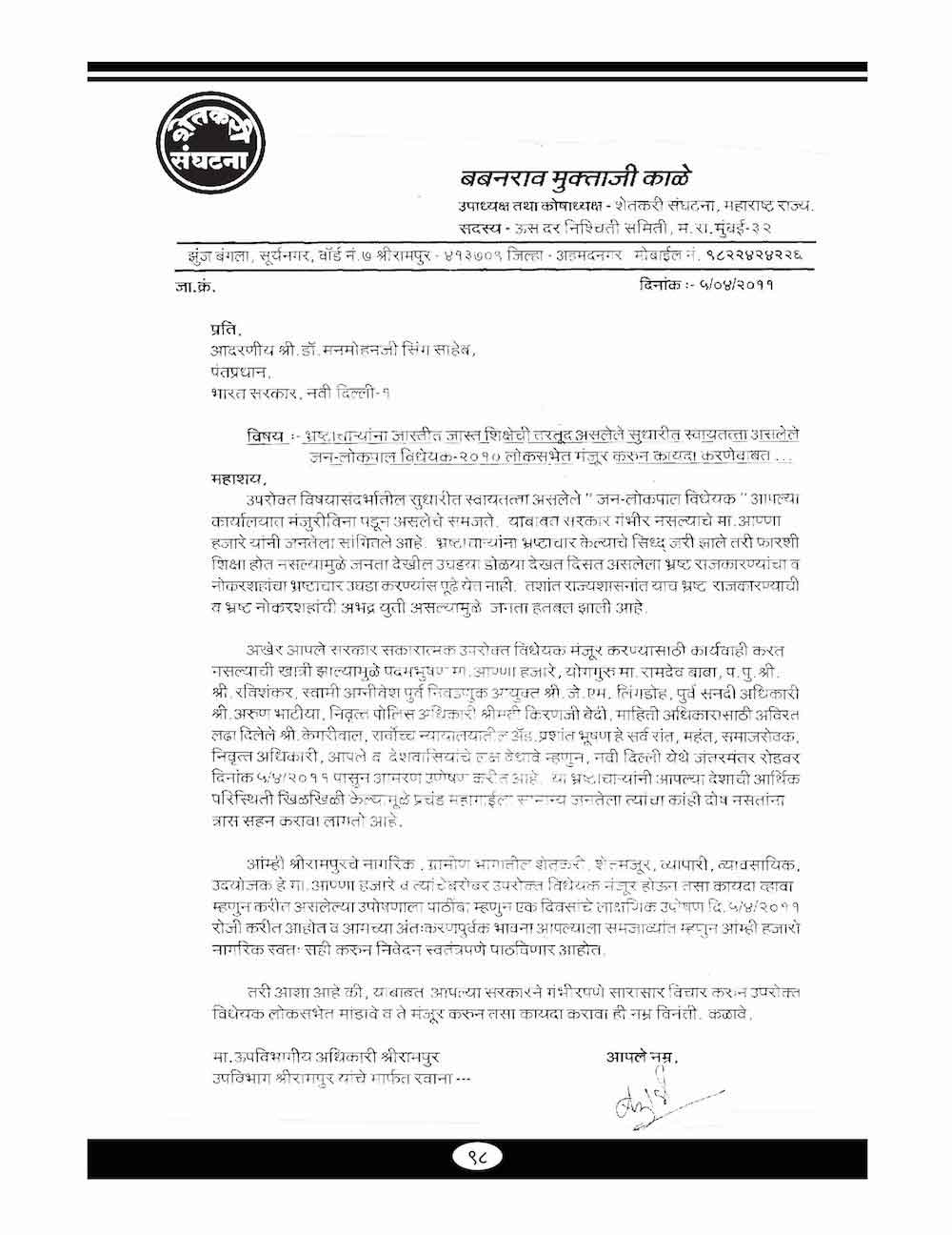 स्व. बबनरावजी काळे यांनी सामाजिक कार्य संदर्भात केलेले महत्वाचे पत्रव्यवहार-९८