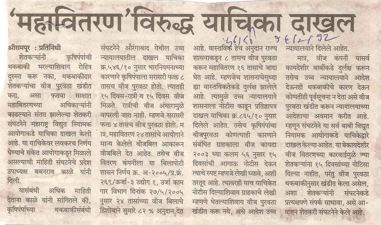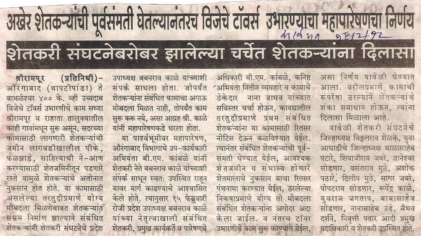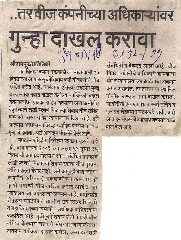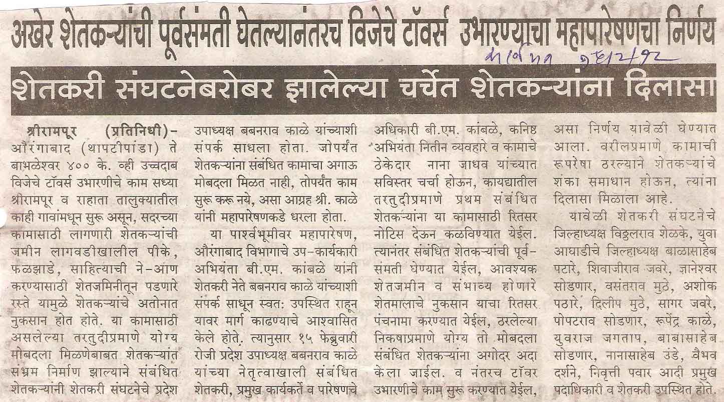 " झुंज " सूर्यनगर , वार्ड नं . ७, श्रीरामपूर ,