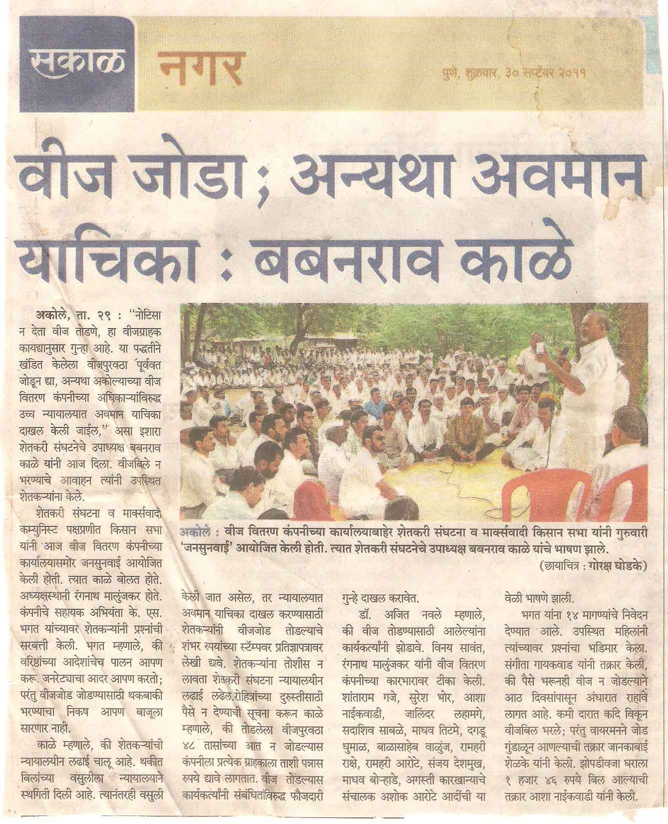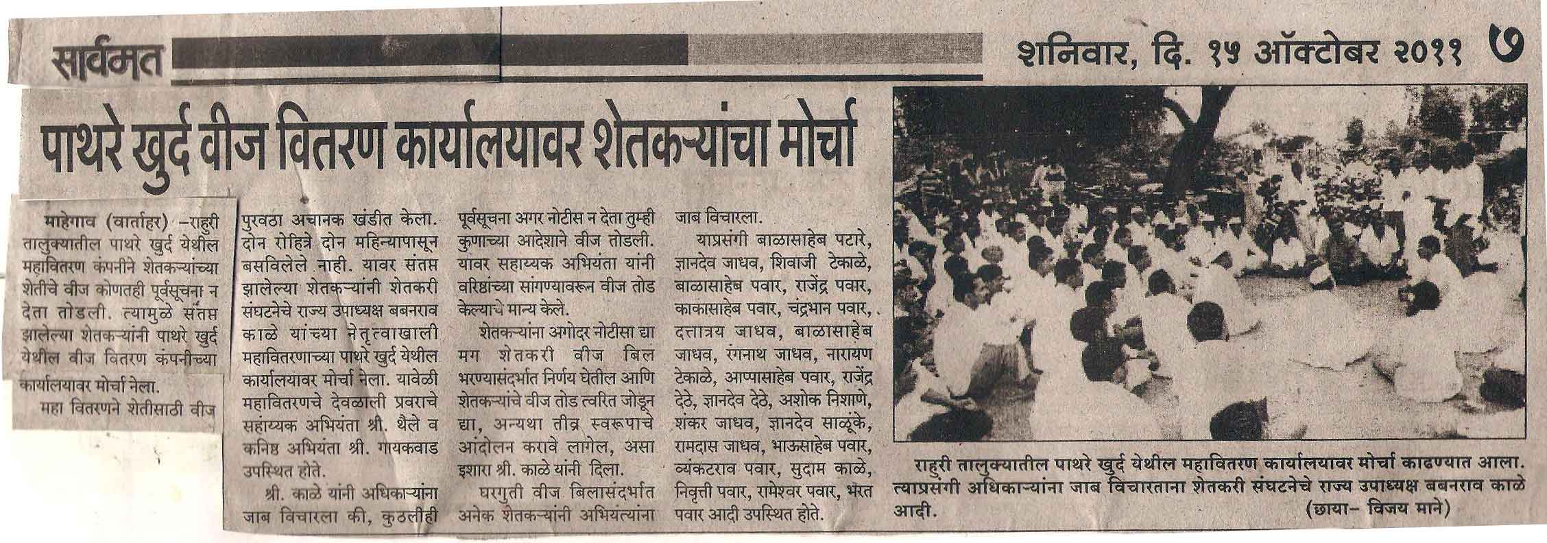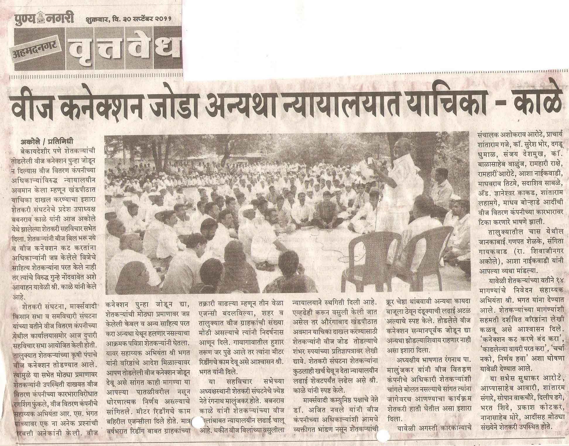 कांदा ऊस आधारभूत किमतीपेक्षा कमी किमतीची बाजार समितीत होणारी लूट , वजनातील कसर म्हणून कपात करण्यात येणारी २ किलो कापती विरुध्द अनेक पत्र व्यवहार व प्रत्यक्ष आंदोलन केले. ऊस कांदा आंदोलनातील स्तानिक कोर्टात त्यांचे विरीधात अनेक केसी दाखल झाल्या होत्या , कांदा आंदोलनाचे रस्ता रोकोबद्दल श्रीरामपूर न्यायालयात फौजदारी गुन्हा दाखल झाला होता . त्यात श्री काळे साहेबांसामावेत इतर ९ सहकार्यांना १ वर्ष सक्त मजुरीची शिक्षा देखील झाली होती , बाजार समितीतील हमालीवर लेव्ही शेतकऱ्यांच्या शासनाच्या परिपत्रकाला कचरु कुऱ्हे व तुकाराम कुऱ्हे यांना पुढे करून ( बँकेत नोकरीस असल्यामुळे )औरंगाबाद उच्च न्यायालयात याचिका क्र . १३४०/१९२२ नुसार स्थगिती घेण्यात आली . व पुढे दि. १ जुलै २००५ ला अंतिम निकाल लागून शेतकऱ्यांच्या या जुलमी वसुलीपासून मुक्तता करण्यात यशस्वी झाले . पाटपाणी संघर्षाबाबत ( भंडारदरा ) क्षेत्रातील गोदावरी ऊजव्या कालव्याच्या ७ नंबर वरील फ़ोर्मवर पाण्यासाठी आंदोलन केले , त्यातही राहता येथील ९/४/२०१० रोजी केलेल्या साडेचार तास रस्ता रोको केल्याबद्दल केसेस दाखल झाल्या होत्या . तसेच मा. काळे साहेबांच्या कार्याची व शेतीविषयक अभ्यासाची दाखल घेत केंद्रशासनाने अखत्यारीत असलेल्या कृषिमूल्य आयोगामध्ये सदस्य म्हणून घेनेकारिता महाराष्ट्र राज्याचे तत्कालीन कृषिमंत्री मा. बाळासाहेब थोरात यांची शासनाची वतीने शिफारस केली परंतु पुढे त्यांची नियुक्ती होणे पूर्वीच त्यांचा अपघात झाल्याने त्यांची नियुक्ती मागे पडली , तसेच स्व. काळे साहेबांची महाराष्ट्र शासन शेतीमाल नियंत्रण उपसमितीवर सदस्यपदी निवड झाली होती . त्याप्रमाणे या समितीच्या वेळोवेळी कृषीविद्यापीठामध्ये झालेल्या सर्व बैठकात उपस्थित राहून शेती मालाचा भाव काढण्याच्या प्रक्रियेत दोष दाखविल्याचा व त्यावर उपाय योजना सुचविल्या होत्या . अशा प्रकारे सातत्याने शेतकऱ्यासंबंधी परतेक प्रश्नावर वेळोवेळी आंदोलने, सभा , घेराव आदि कामे केली आहेत . शेतकरी संघटनेचं प्रश्नावर जागृती व्हावी यासाठी सर्व स्थानिक व राज्यस्तरीय वृत्तपत्र करिता लेख लिहिले . बातम्या प्रसिद्ध करून लक्ष वेधत असत . त्यांचा शेतकरी चळवळीचा हा लढा सातत्याने दिवस रात्र सुरु होता व त्यांनी श्वास असे पर्यत चालू ठेवला .
