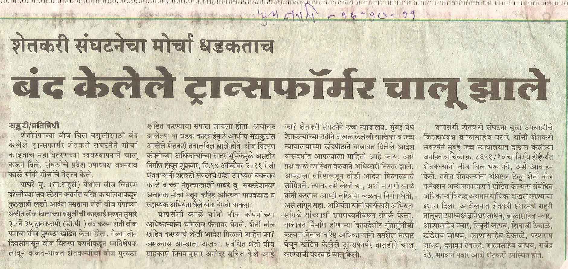 सामाजिक कार्याचा अनुभव : सन १९८० साली मा. शरद जोशी साहेब यांच्या नेतृत्वाखाली शेतकरी संघटनेच्या झंजावात आला त्यावेळी शरद जोशींनी प्रथम उत्पादन खर्चावर आधारित भाव मिळाला पाहिजे, या एक कलमी परंतु अत्यंत प्रभावी व कोणीही आजपर्यंत न मांडलेला सिद्धान्त शेतकऱ्यांची आर्थिक स्थिती बदलू शकतो या खात्रीने शेतकरी संघटनेत भूमिगत कार्यकर्त्यांच्या भूमिकेत काम करू लागले. कारण नोकरीत असल्यामुळे प्रत्यक्ष काम करता येत नवते , सन १९८० ते २००१ पर्यंत अनेक अधिवेशने , मेळावे कार्यकारणी बैठकात उपस्थित राहिले, सन १९८९ साली पहिल्या कर्जमुक्तीसाठी मा. भास्करराव बोरवके माजी राज्य अध्यक्ष यांचे सोबत शेतकऱ्यांचे नादारीचे अर्ज भारावून अहमदनगर कोर्टात दाखल केले , त्यावेळी शेतकऱ्यांना १०००० रु. कर्जमाफी झाली होती . ३१/०३/२००१ रोजी स्वेच्छा निवृत्ती घेऊन दि. १ एप्रिल २००१ पासून शेतकरी संघटनेच पूर्ण वेळ कार्यकर्ता म्हणून सक्रिय झाले होते. दि. ३१ मे २००१रोजी येवला येथे सभेत आ. वामनराव चपट अध्यक्ष, शेतकरी संघटना व मा. रघुनाथ दादा पाटील, अध्यक्ष स्वतंत्र भारत पक्ष यांच्या उपस्थितीत अहमदनगर जिल्हा अध्यक्षपदी निवृत्ती झाली. त्यानंतर संघटनेच्या वेगवेगळ्या पुकारलेल्या सर्व आंदोलनात महाराष्ट्र सर्वत्र सक्रिय सहभाग दिला . महाराष्ट्रातच नाहीतर संघटनेच्य पानिपत ( हरियाना ) या आंदोलनात , दिल्ली येथे , गुजरात येथे नर्मदा परिक्रमा अशा सर्व आंदोलनात सहभाग नोंदविला . त्यांचे काम पाहून जोशी साहेबांनी त्यांची निवड कोषाध्यक्ष व राज्य कार्यकारणीचे सदस्यपदी केली होती तसेच कर्जमुक्तीच्या आंदोलनात पूर्ण काम केल्याने त्यांची निवड मा. शरद जोशी साहेबांनी महाराष्ट्र राज्य कृषी बँकिंग धोरण समितीवर अध्यक्ष म्हणून निवड केली . स्व. काळे साहेबांच्या उसावरील अभ्यासाचा विचार करून स्व. काळे साहेबांची महारष्ट्र राज्याची ऊस दर निश्चिती समितीवर राज्य पालांच्या सहीने निवृत्तीन करण्यात आली . पुढे रघुनाथ दादा यांच्या समवेत काम करताना ते त्यांचे अंतिम समय पर्यंत राज्याचे त्यांनी उपाध्यक्ष म्हणून संघटनेचे काम पहिले , कर्जमुक्तीची धोरण झाल्यानंतर सन २००८ शेतकऱ्यांना मार्गदर्शन केले , त्यासाठी रिझर्व बँक, नाबार्ड , सहकार आयुक्त यांचेकडून माहिती घेऊन गावगावी प्रचार केला . विजेसंबंधी कायद्याच अभ्यास करून ट्रान्सफार्म जाळीत प्रकरण व फार्म कोटेशन भरलेल्या शेतकऱ्यांना एक महिन्यात कनेक्शन मिळण्यात पर्यंत केले.