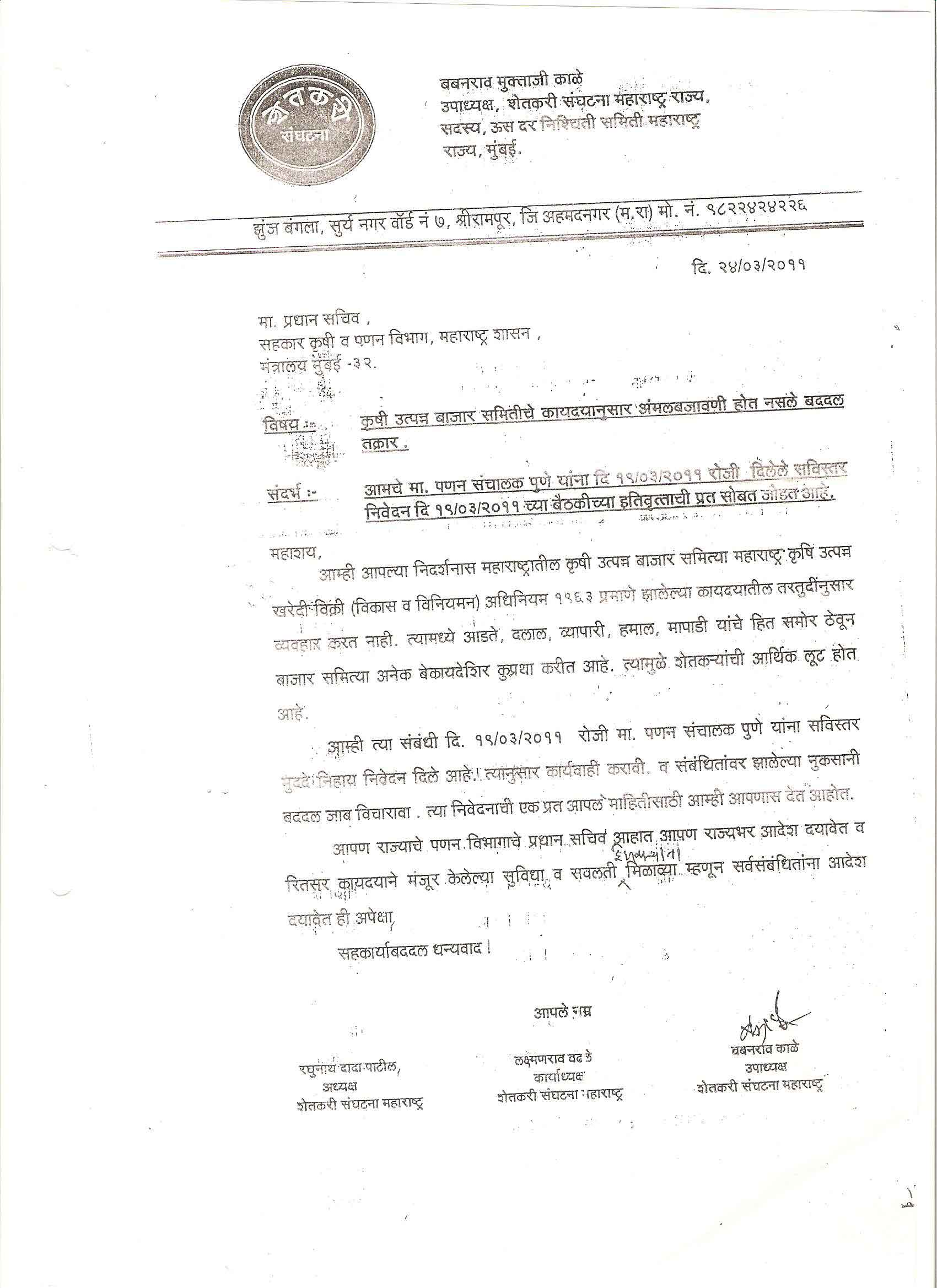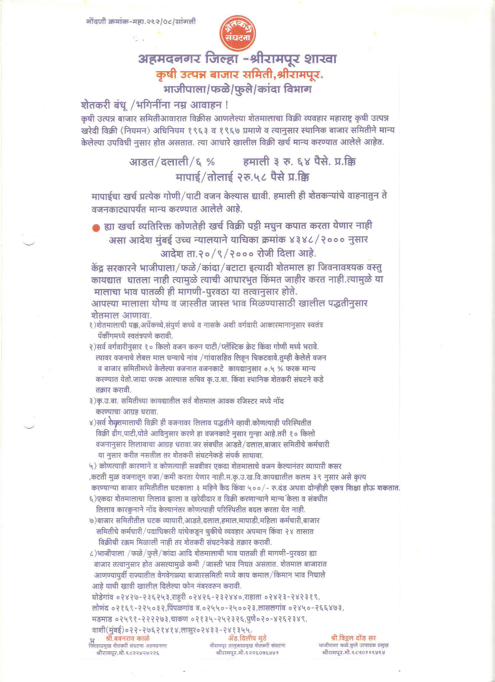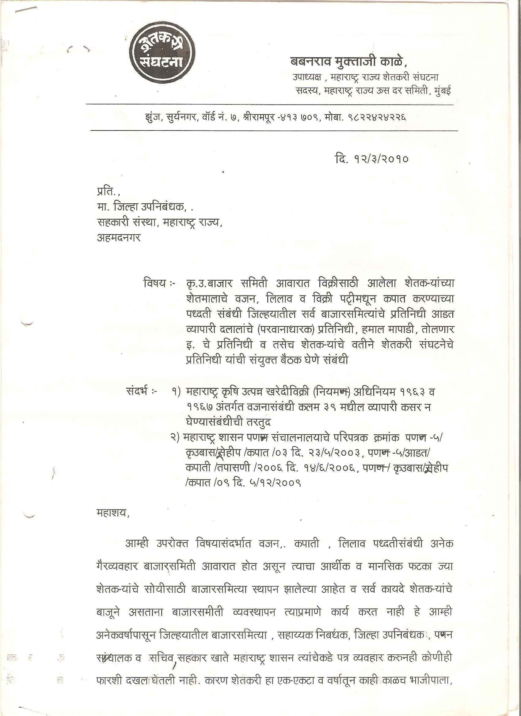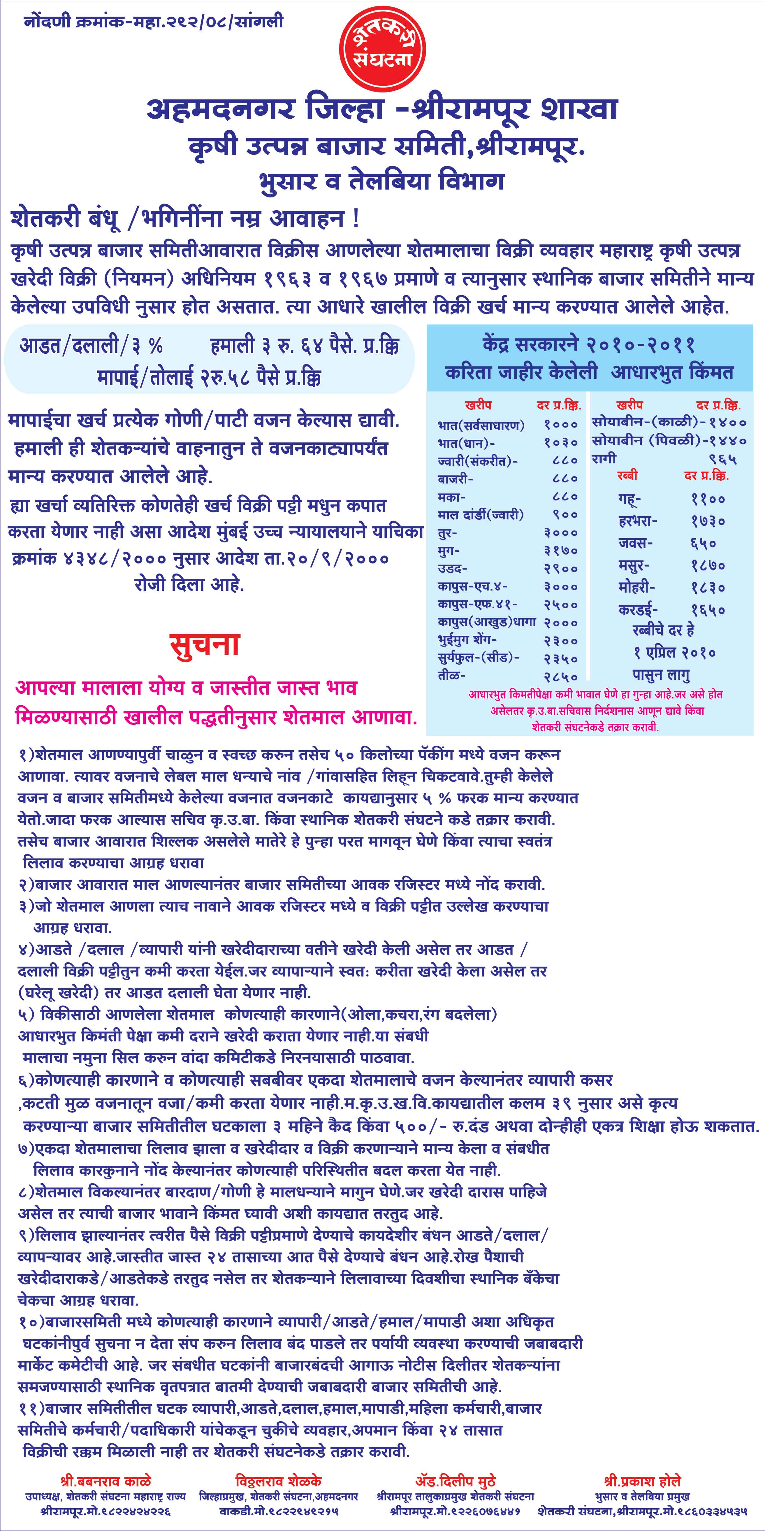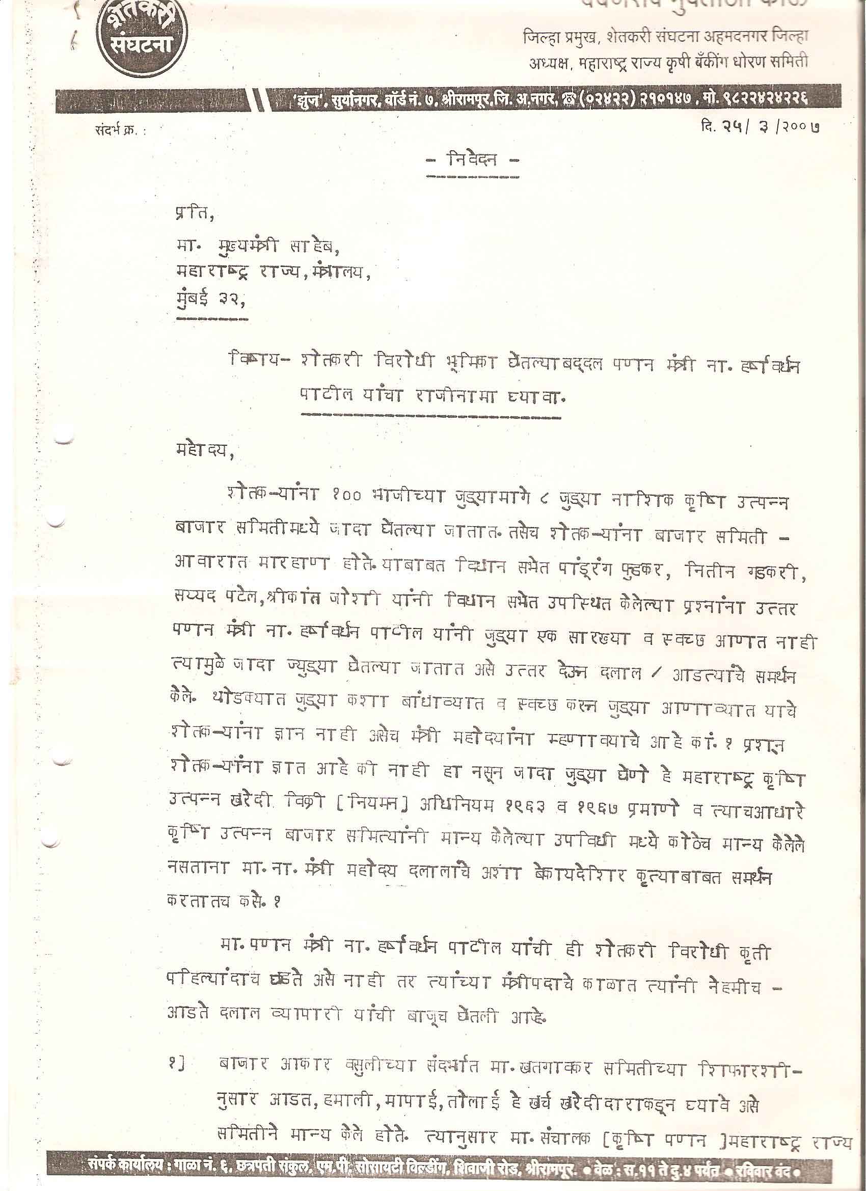 मा. कोषाध्यक्ष तथा राज्यकार्यकारणी सदस्य, शेतकरी संघटना