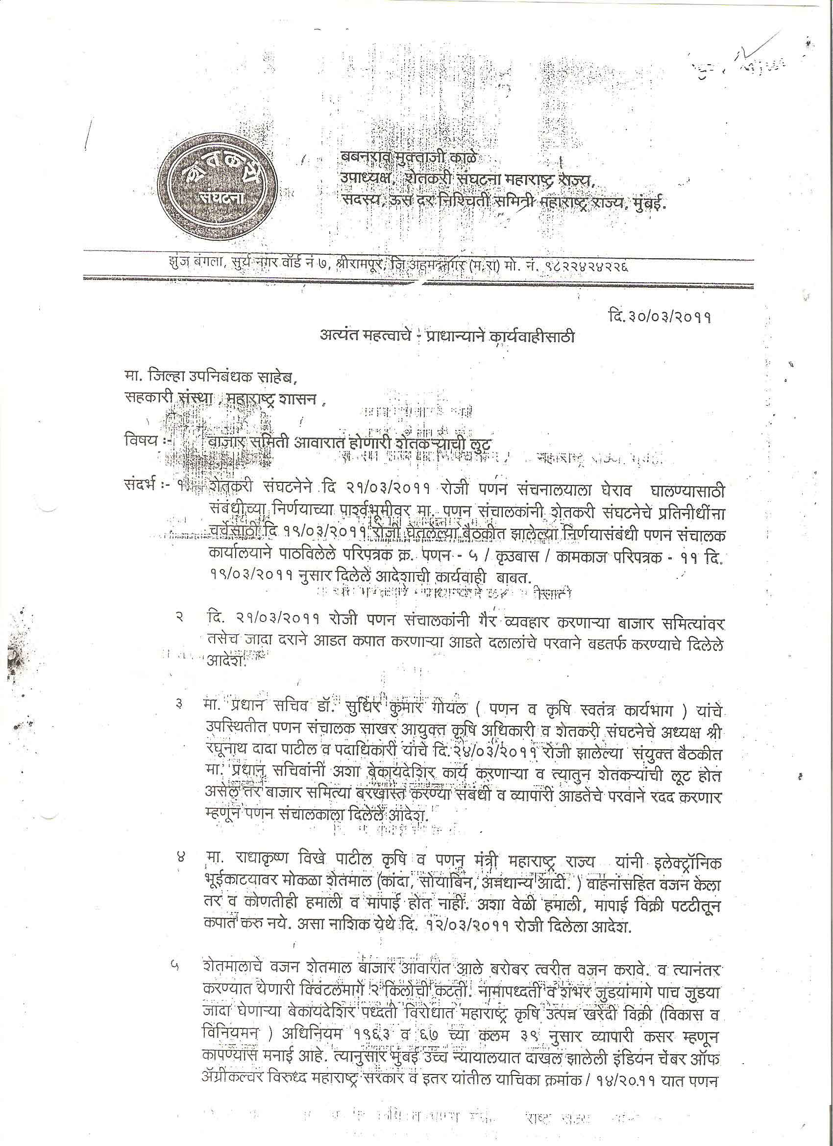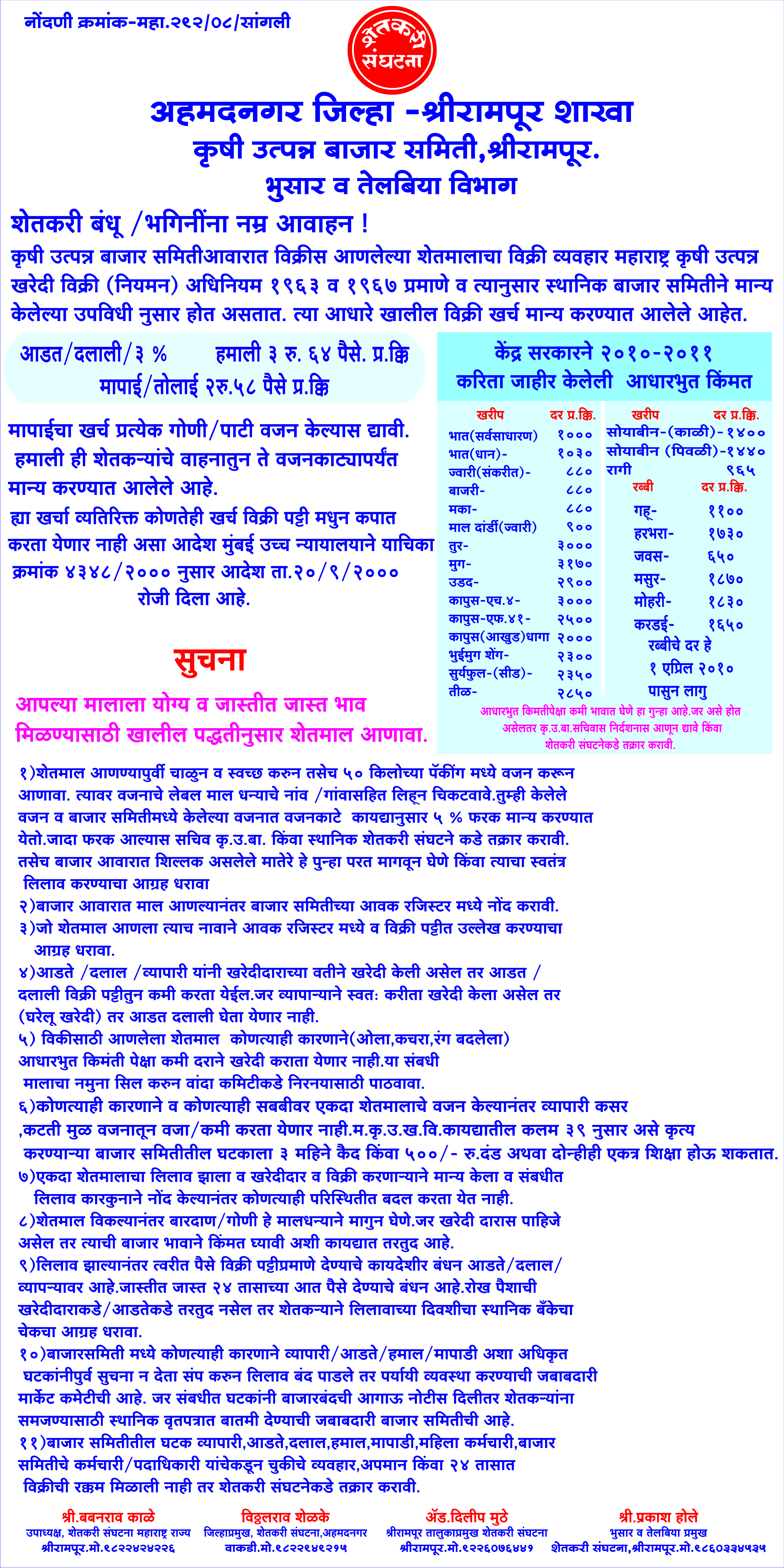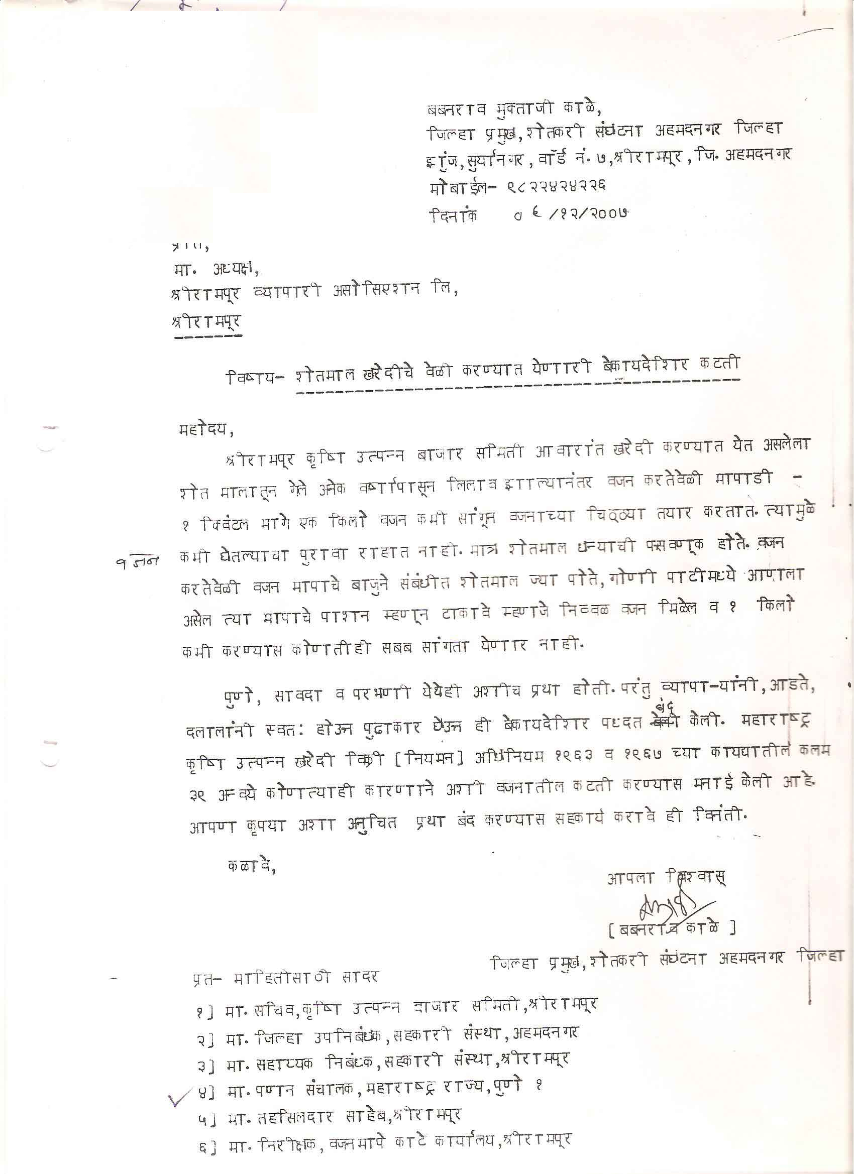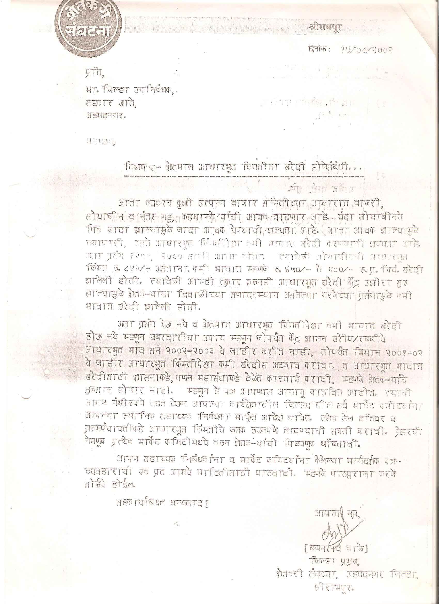 मा. कोषाध्यक्ष तथा राज्यकार्यकारणी सदस्य, शेतकरी संघटना