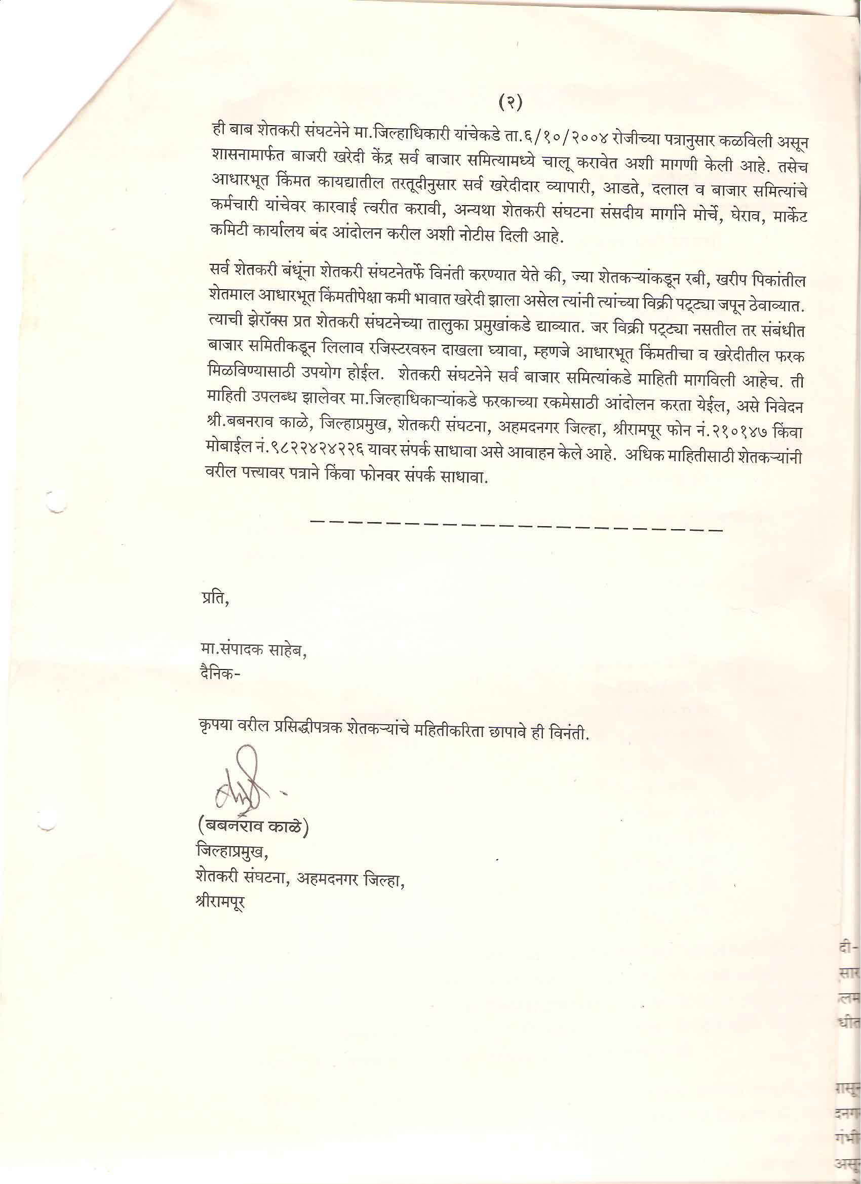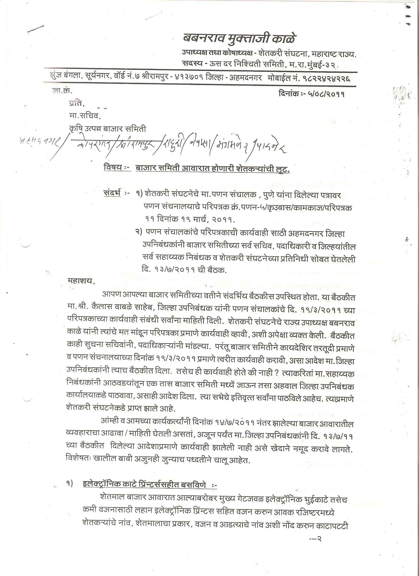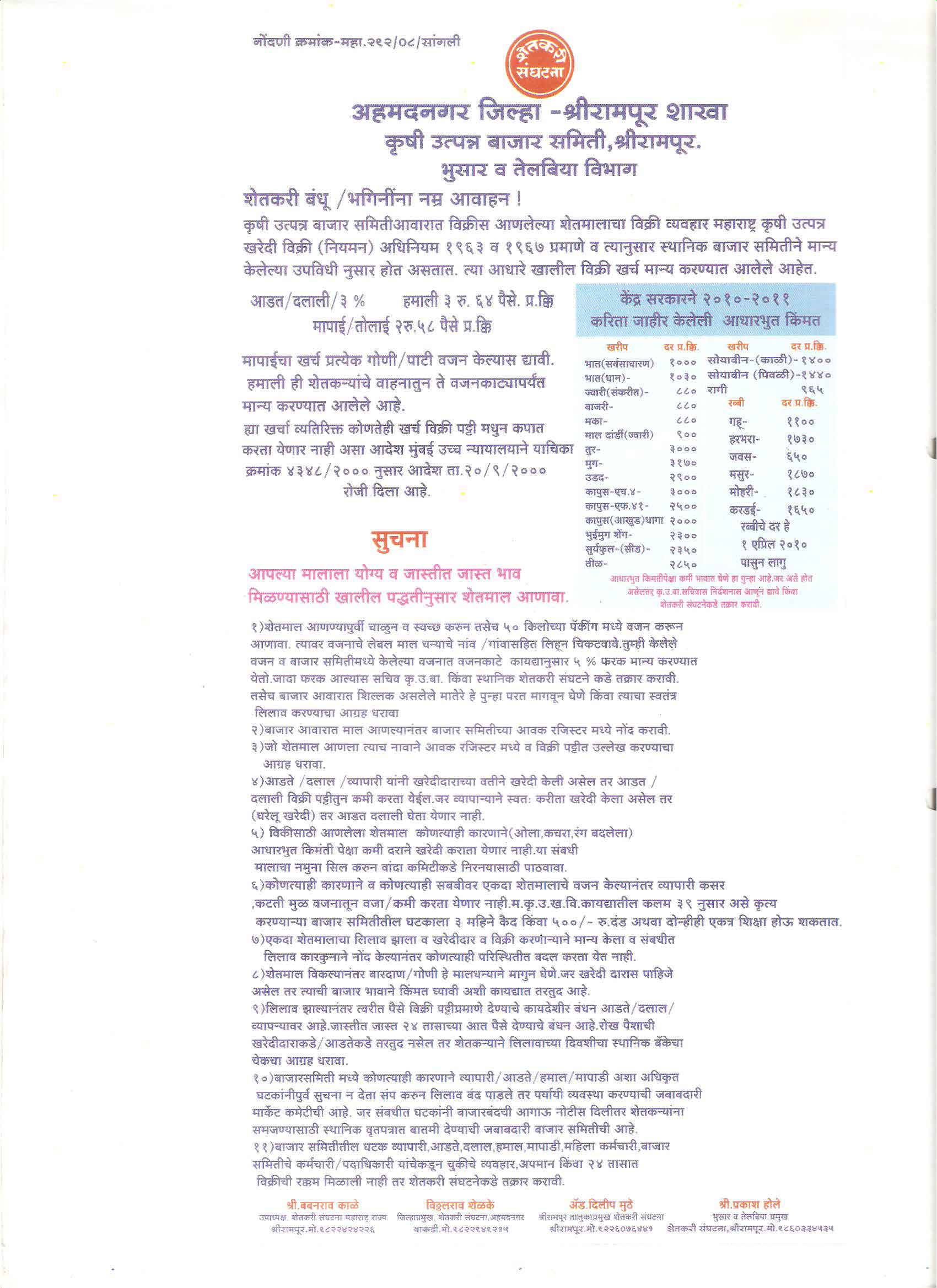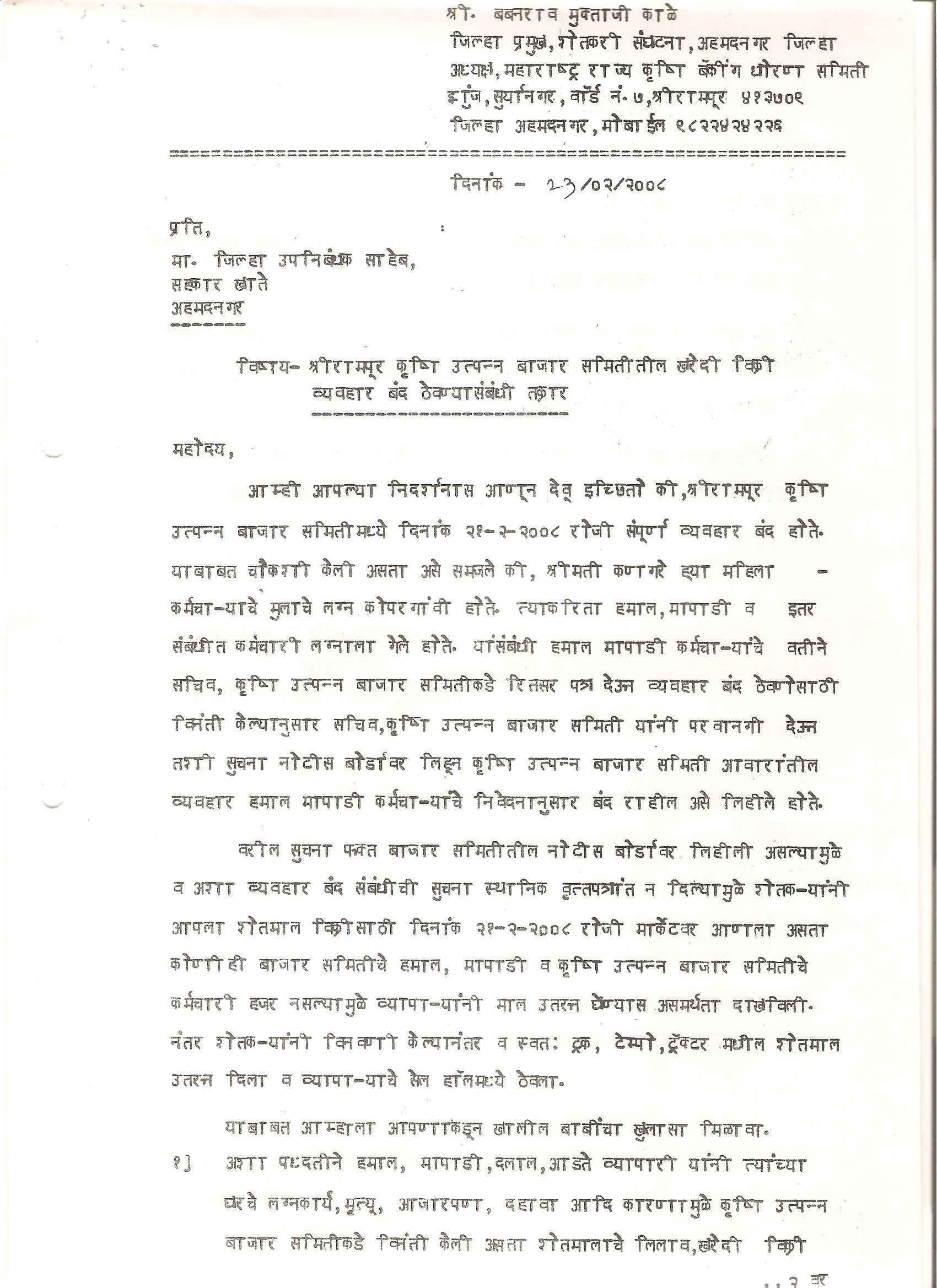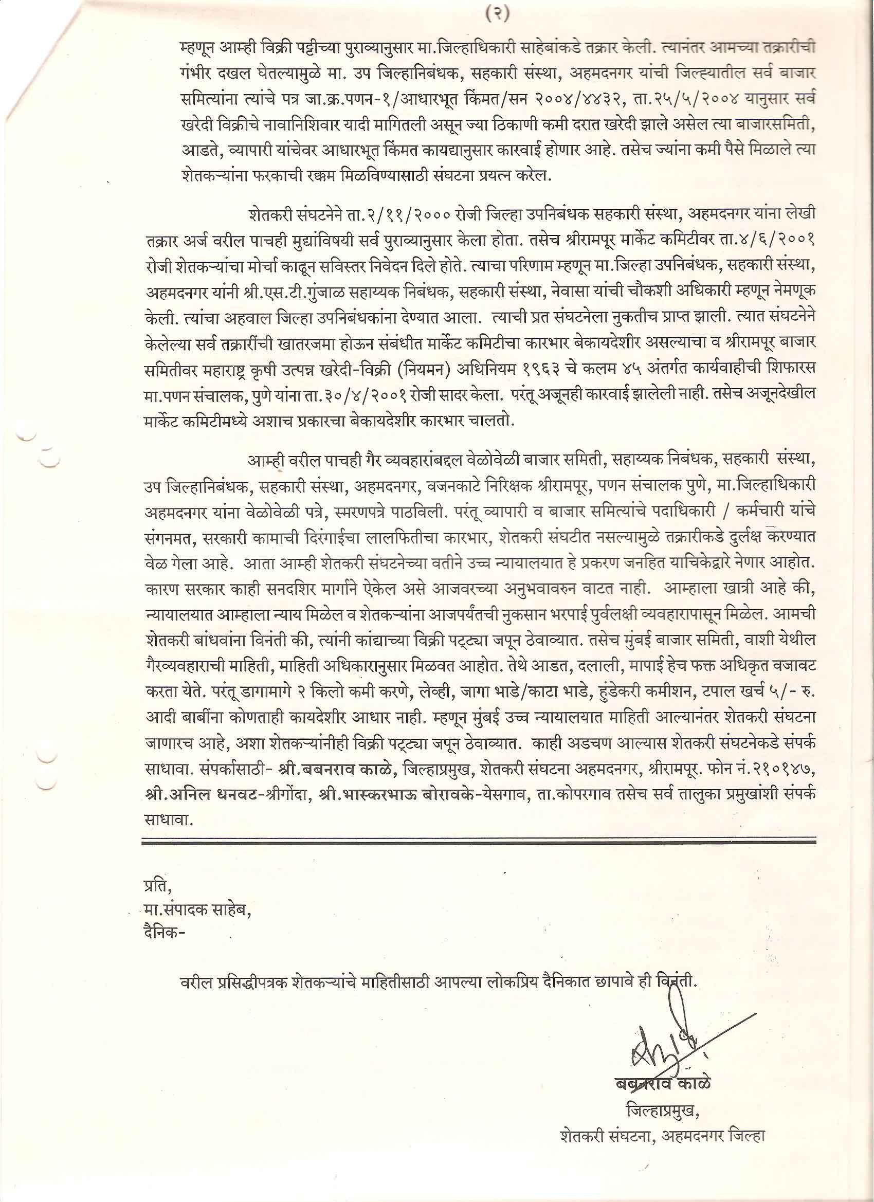 मा. कोषाध्यक्ष तथा राज्यकार्यकारणी सदस्य, शेतकरी संघटना