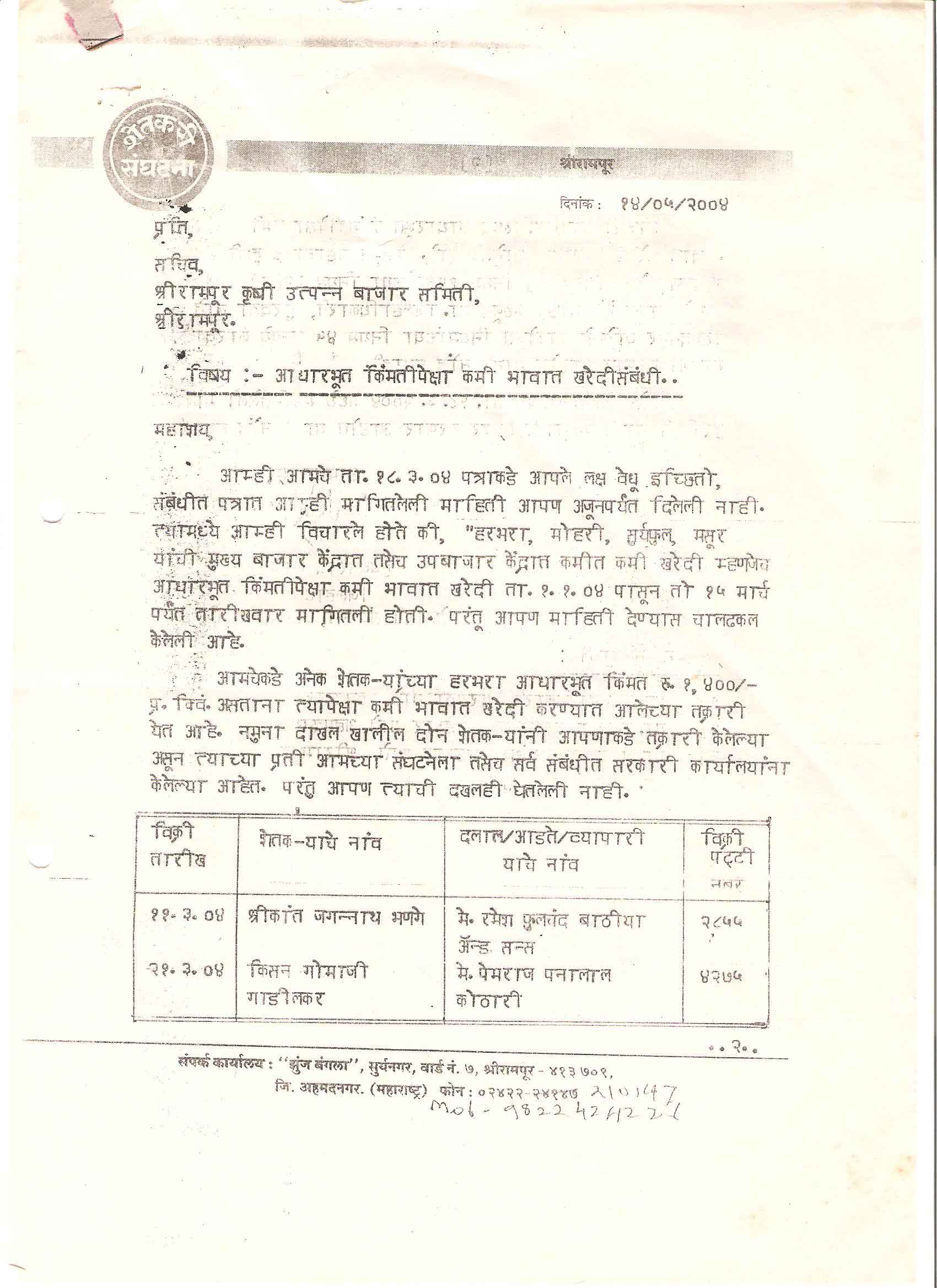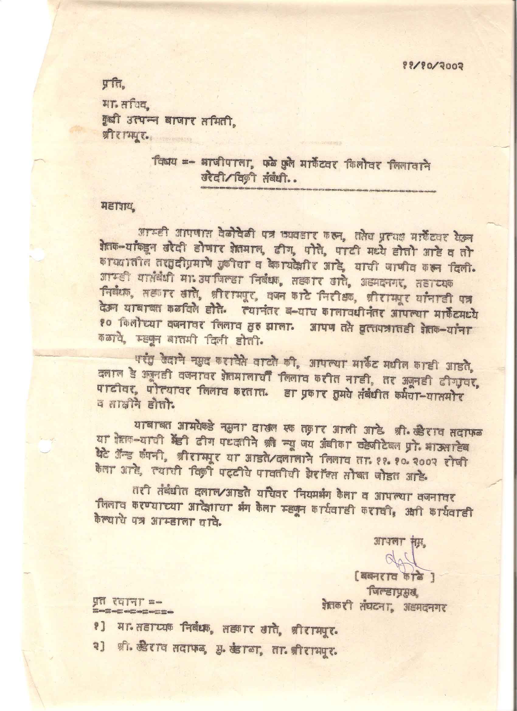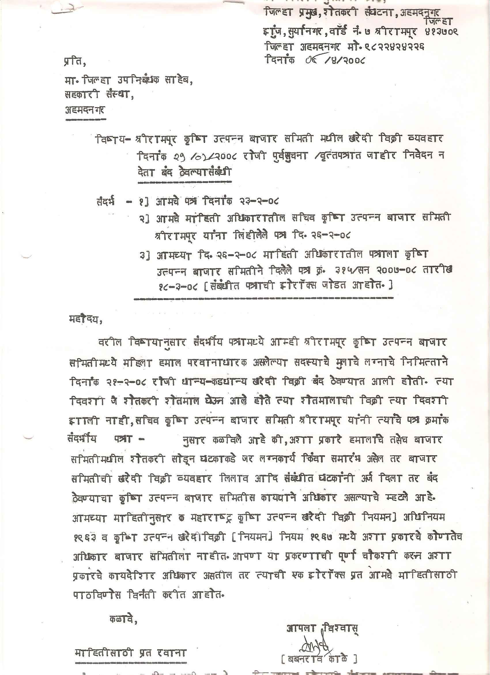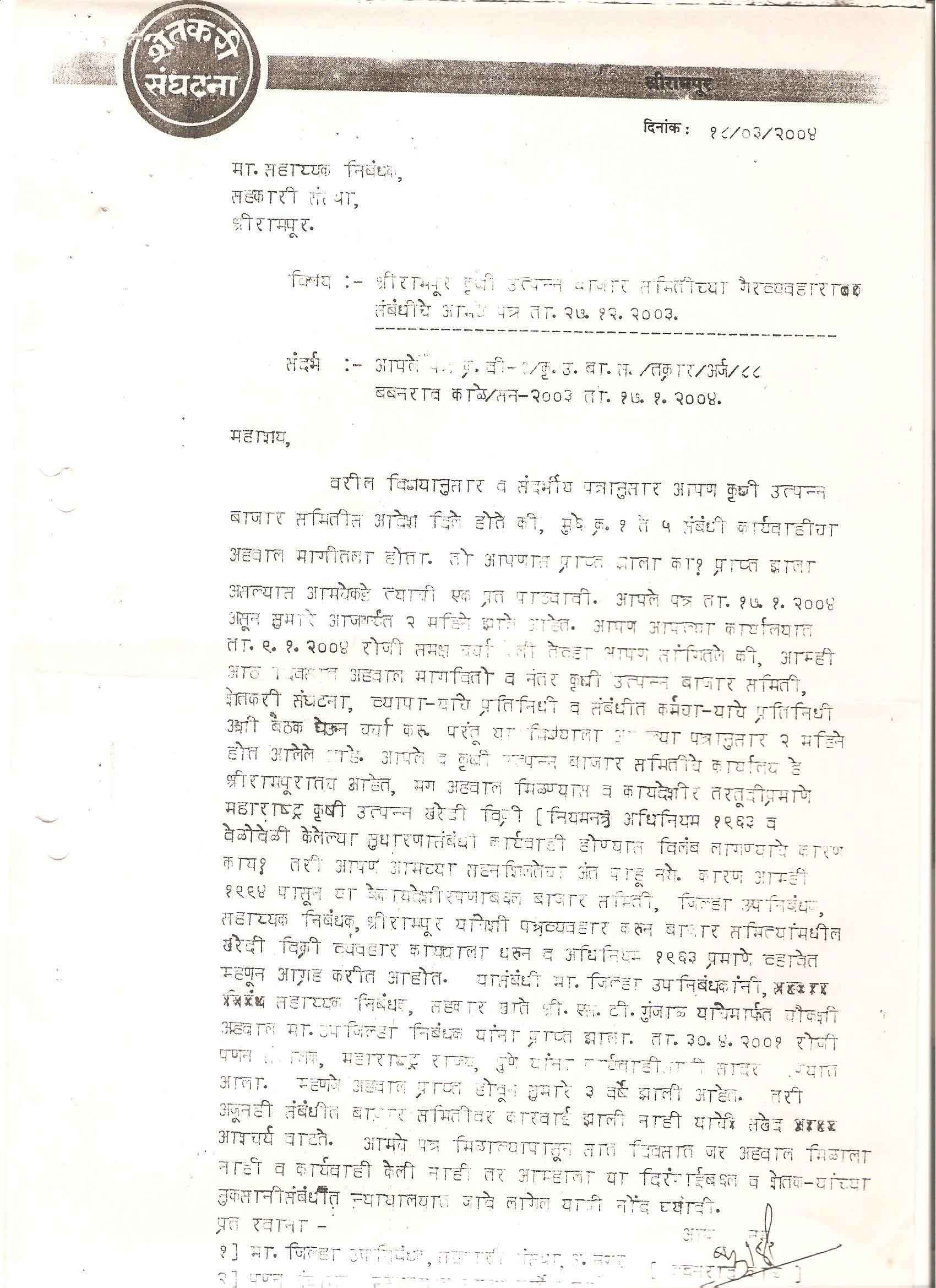 मा. कोषाध्यक्ष तथा राज्यकार्यकारणी सदस्य, शेतकरी संघटना