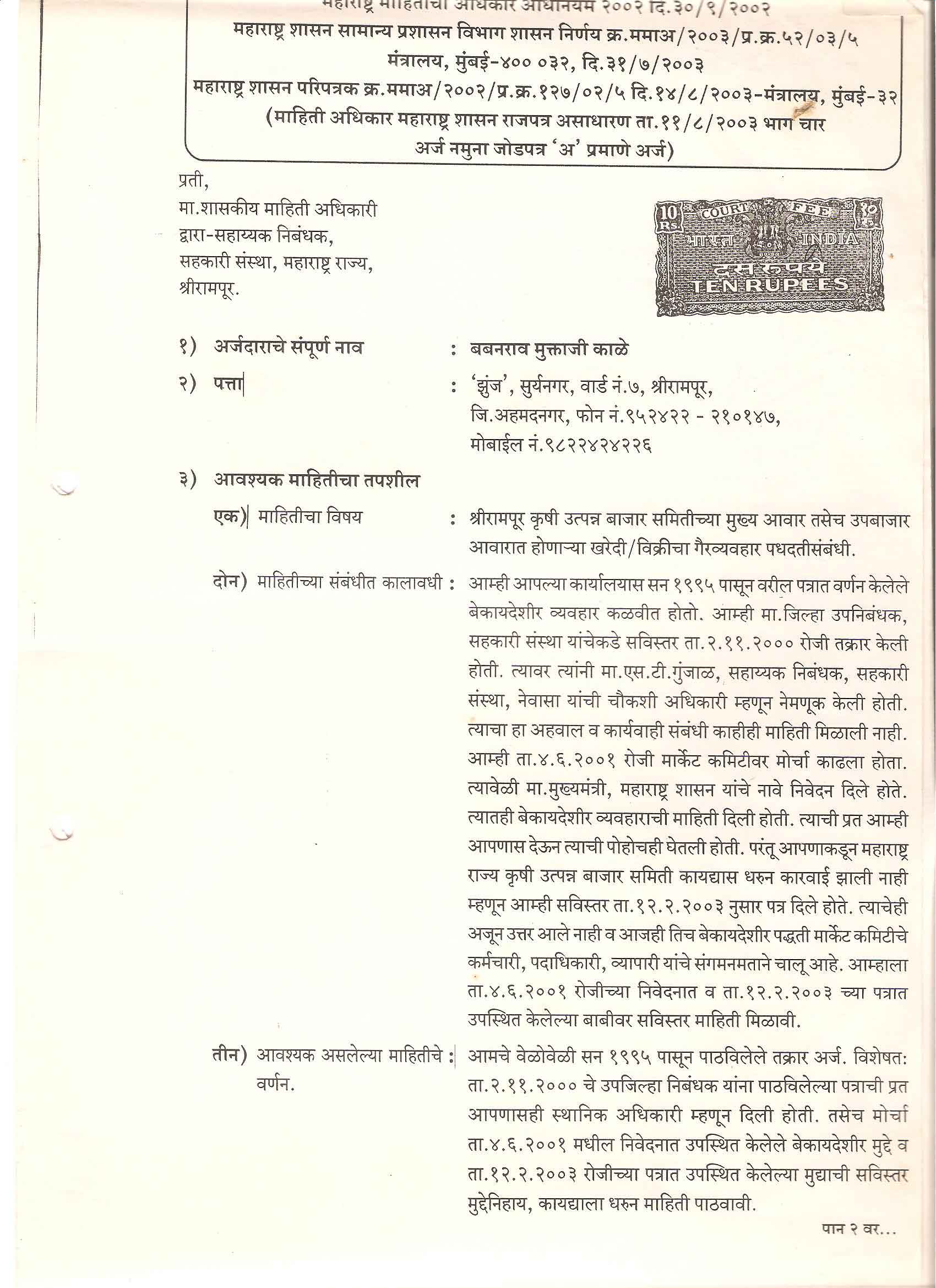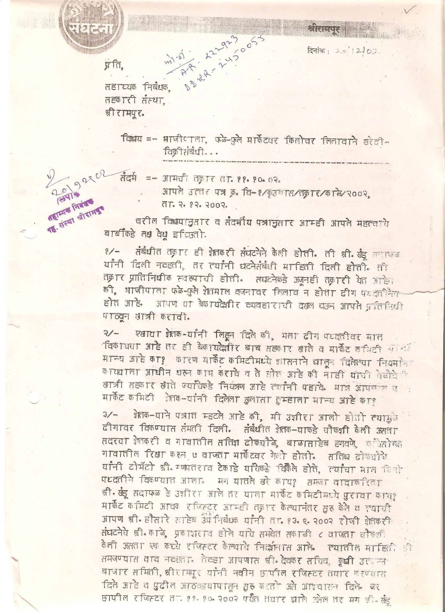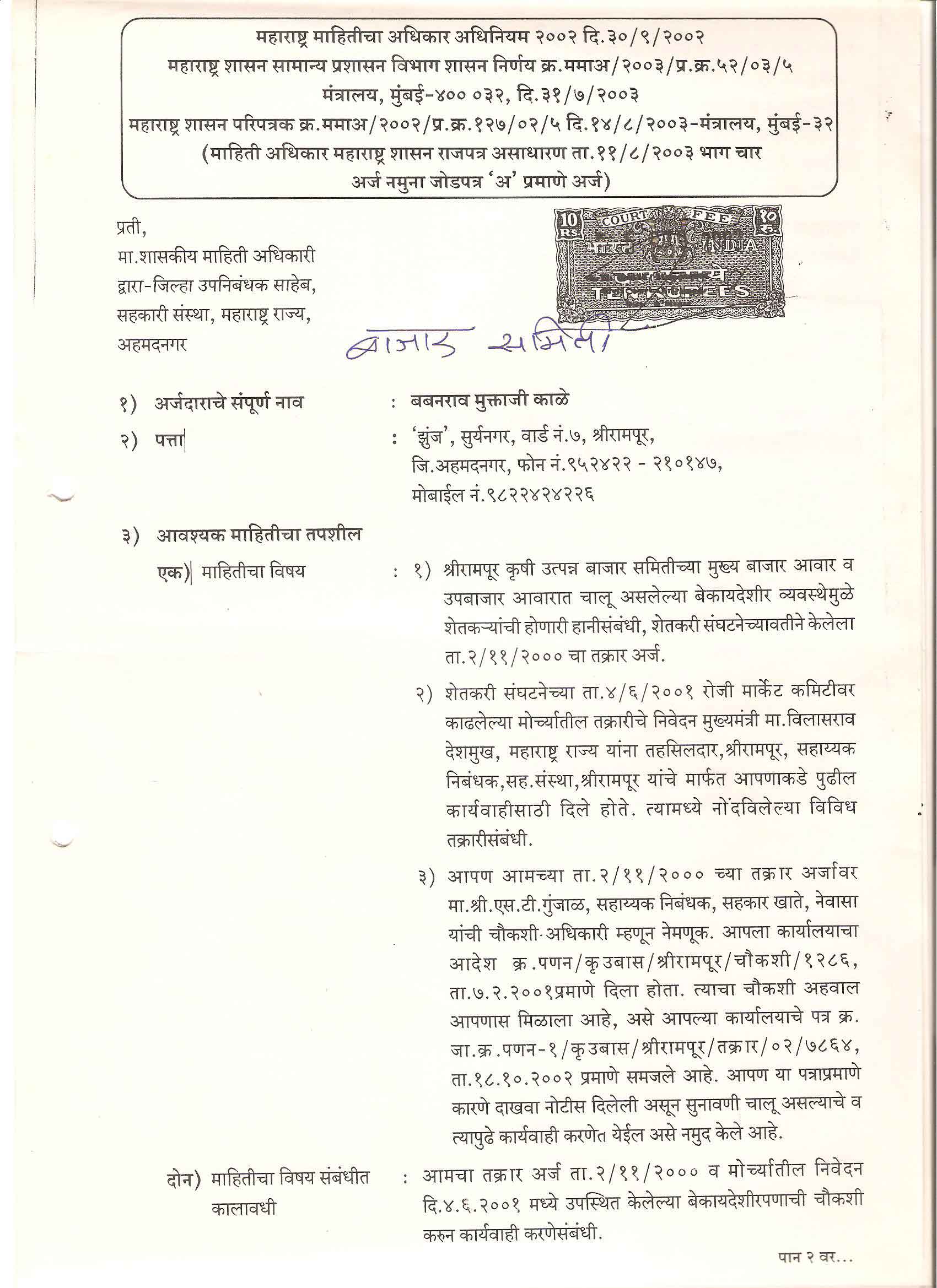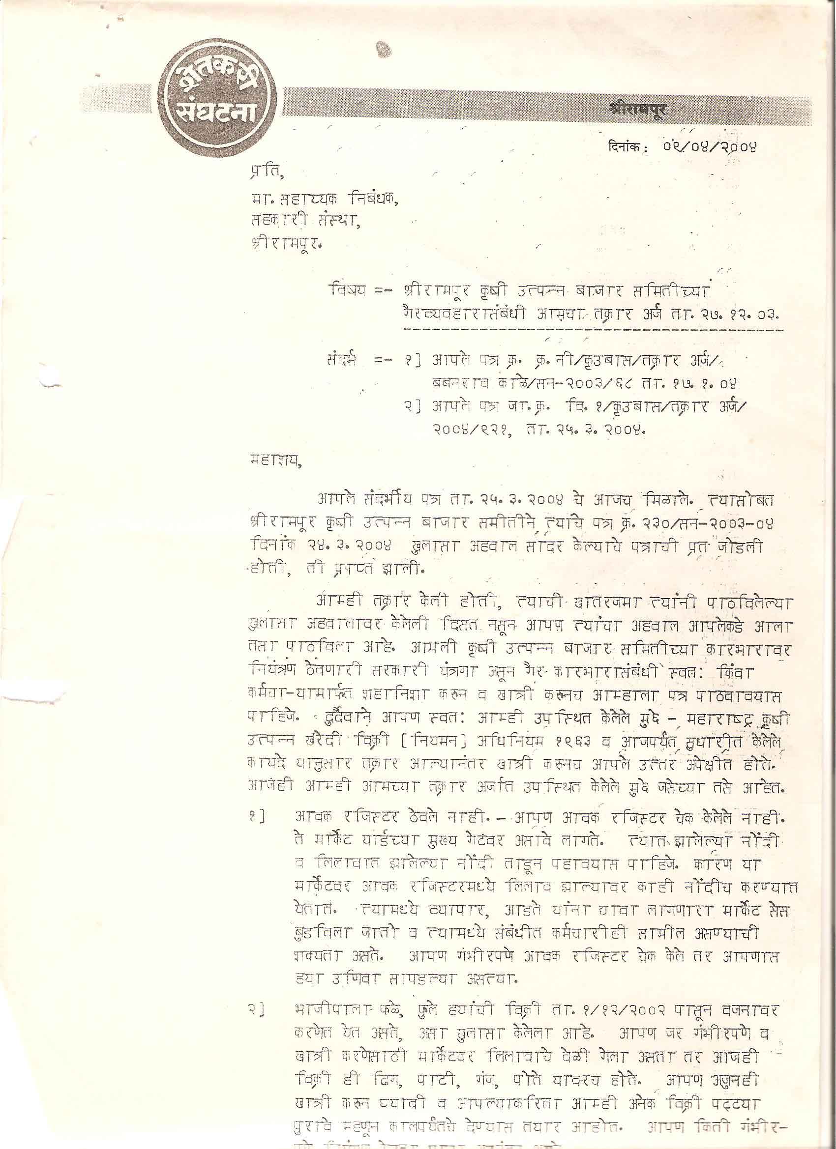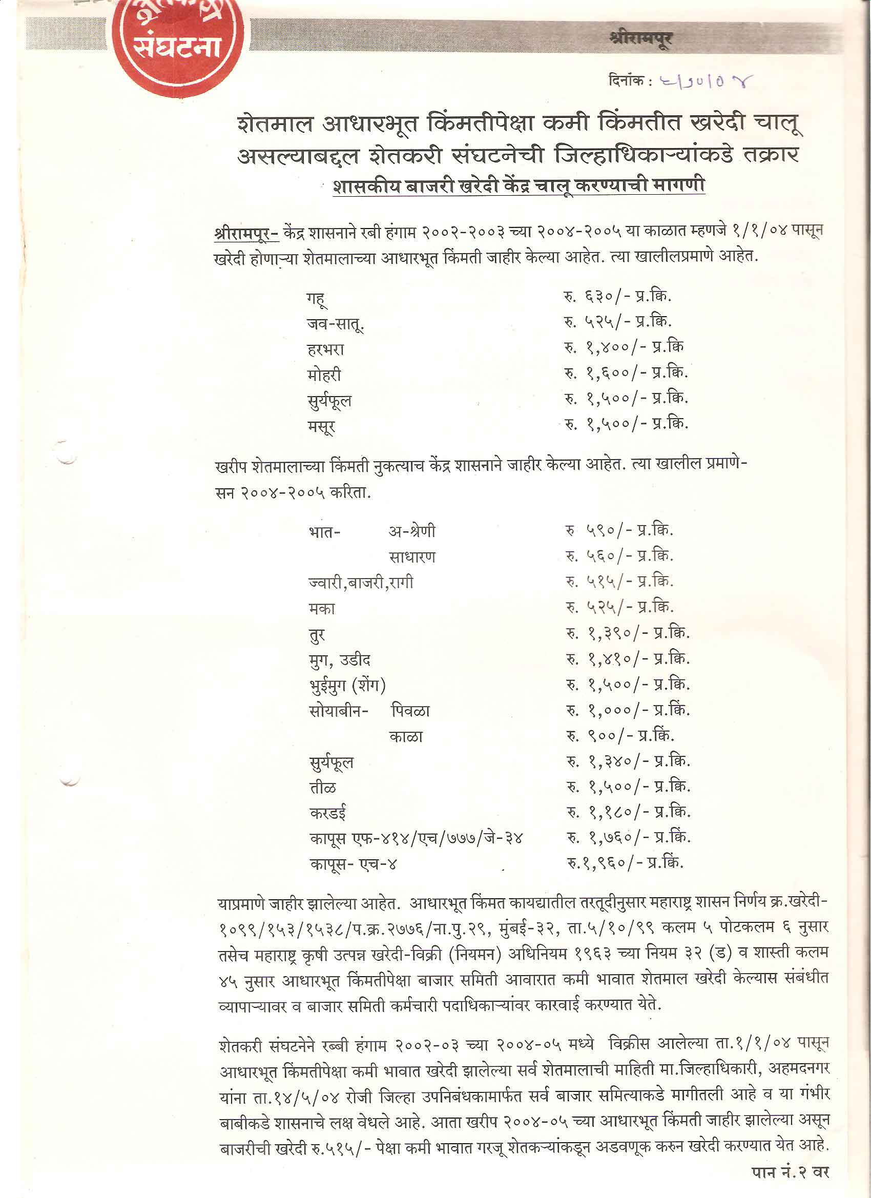 मा. कोषाध्यक्ष तथा राज्यकार्यकारणी सदस्य, शेतकरी संघटना
