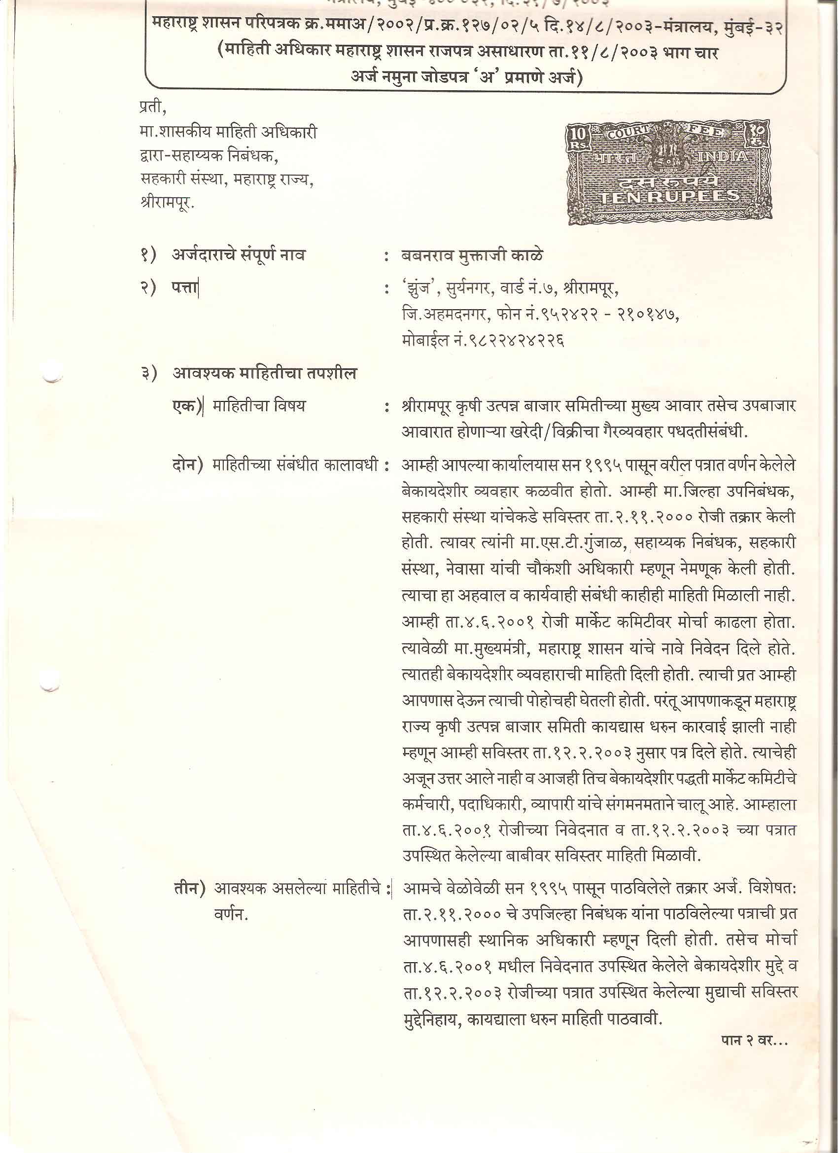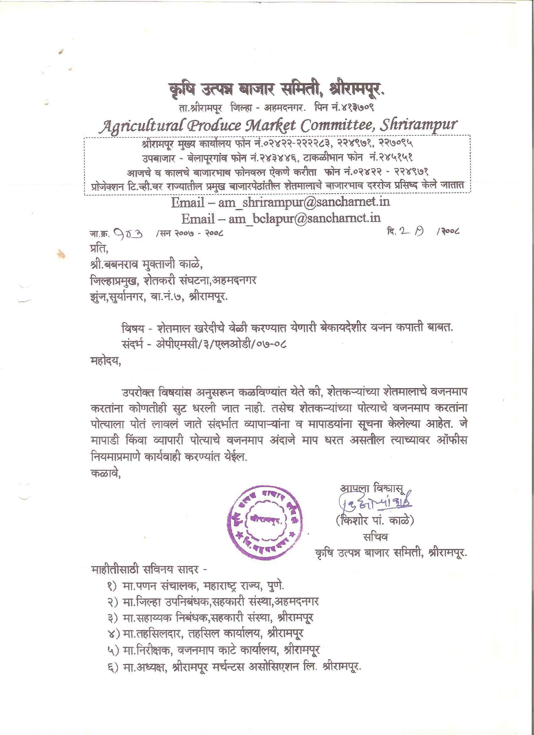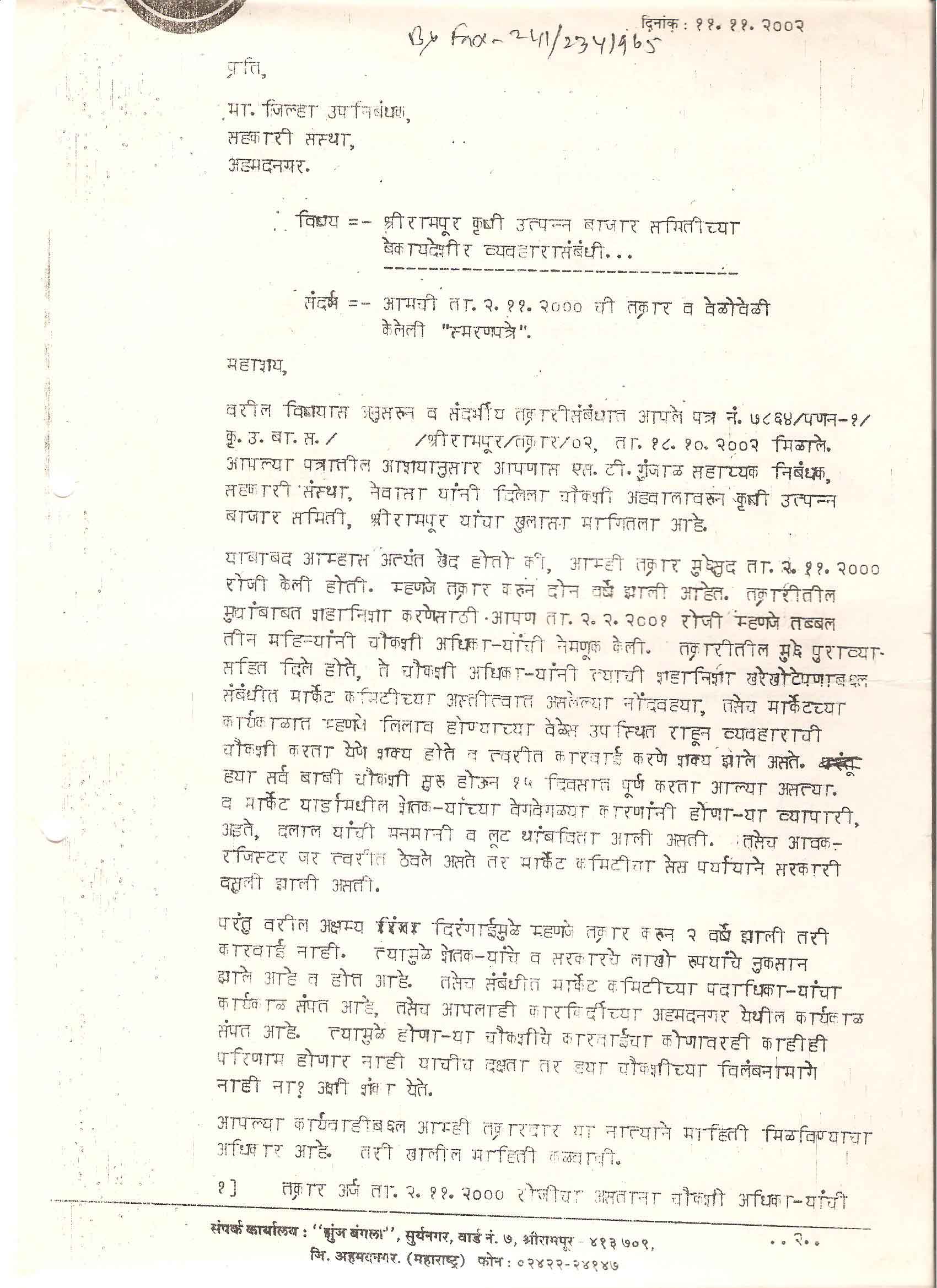 ता. श्रीरामपूर, जिल्हा - अहमदनगर