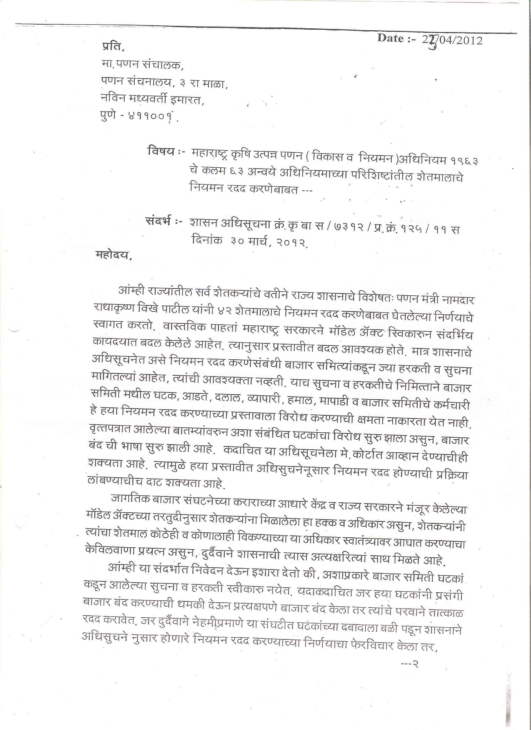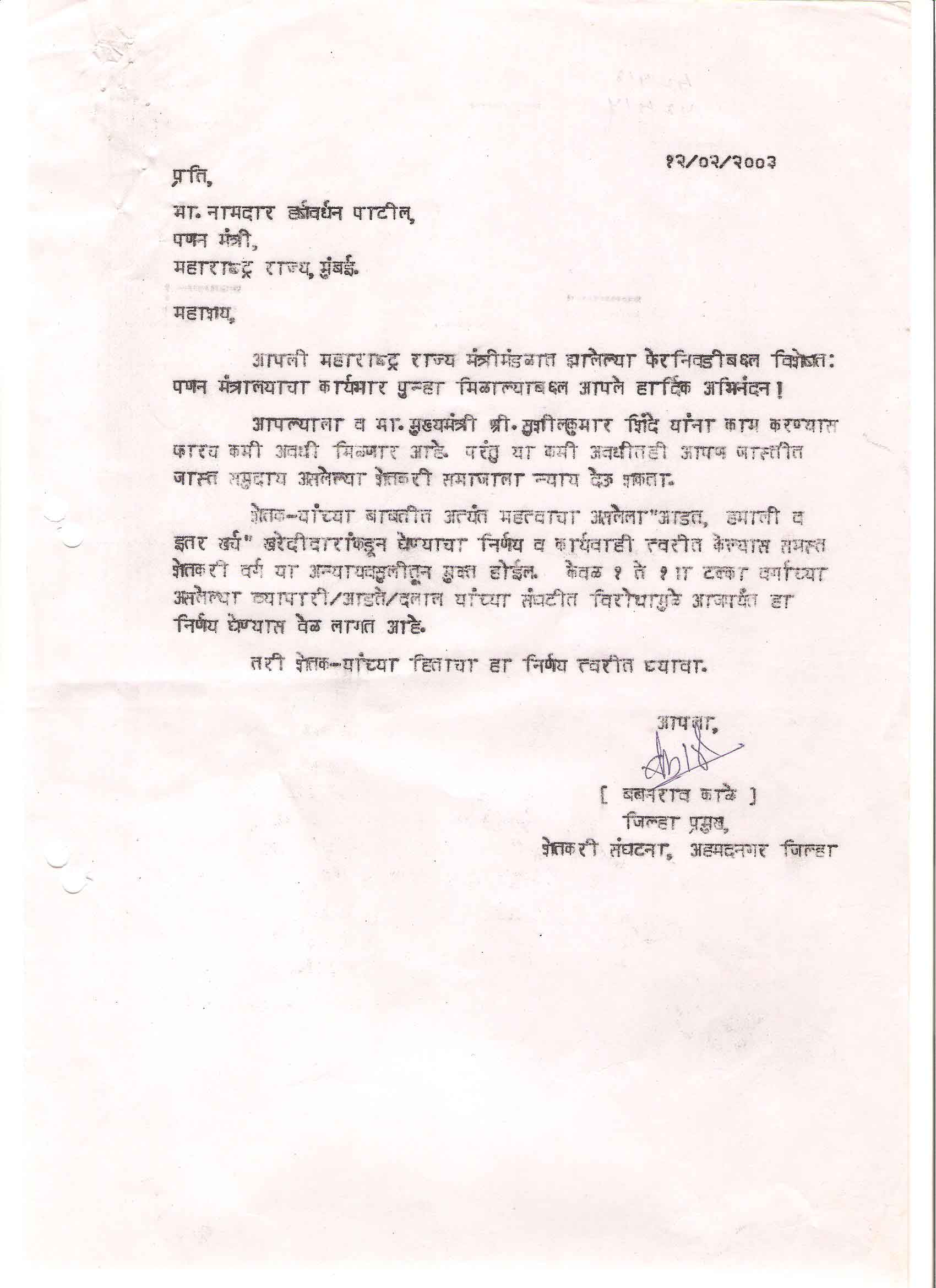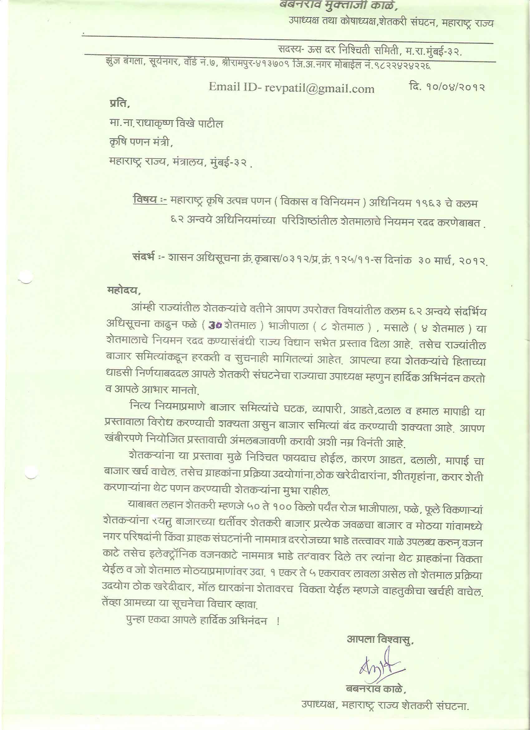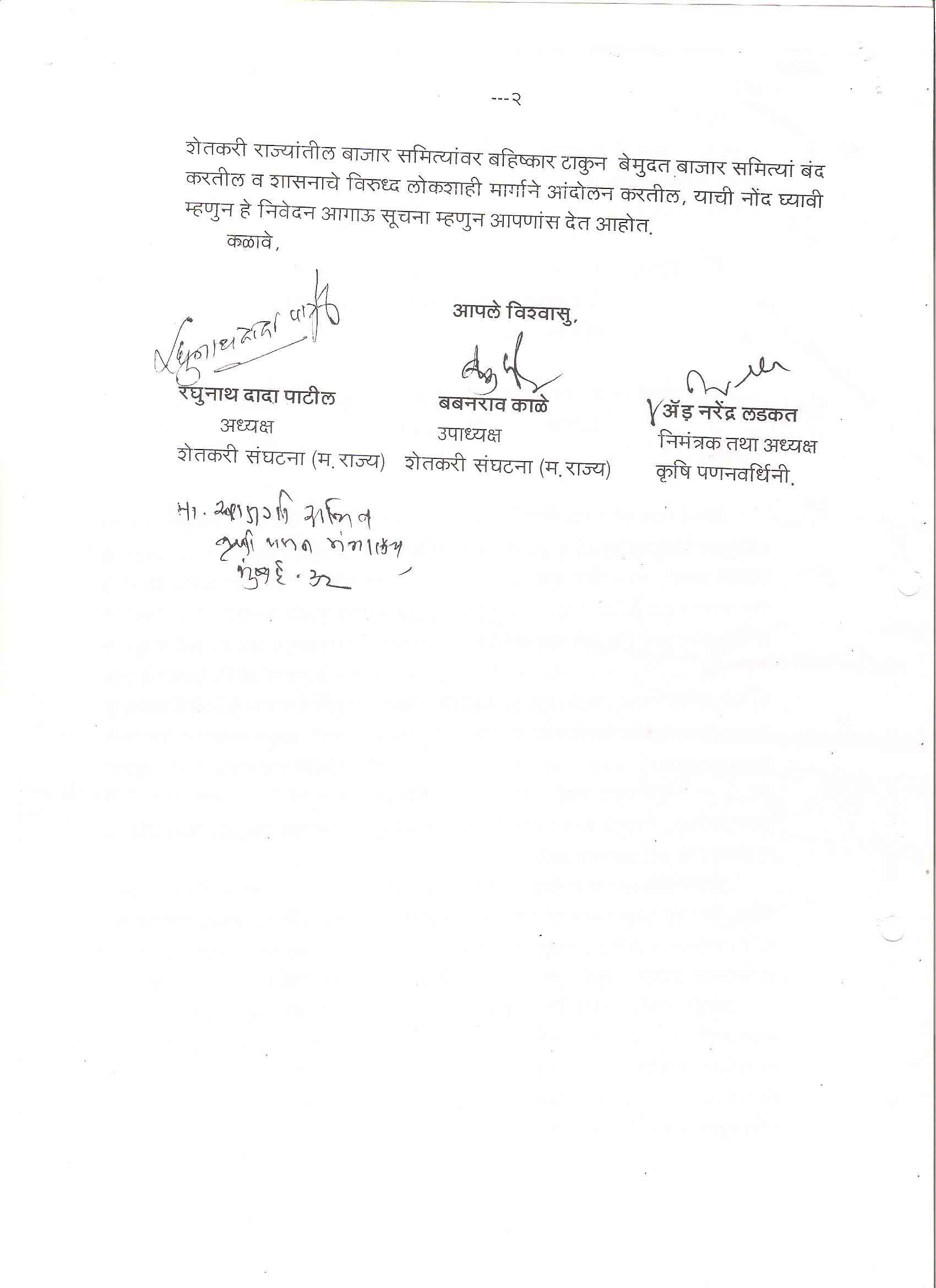 मा. उपाध्यक्ष - शेतकरी संघटना , महाराष्ट्र राज्य