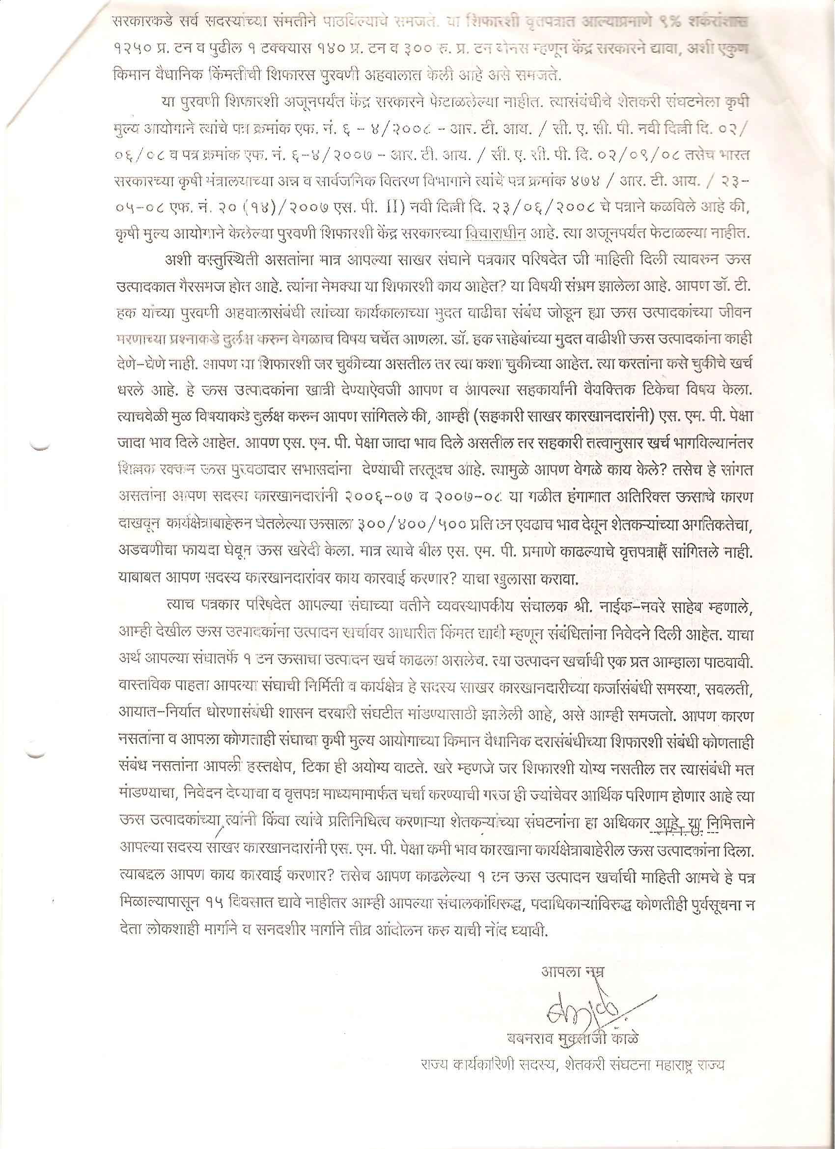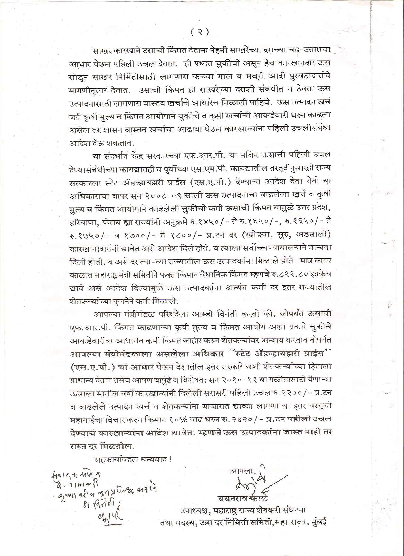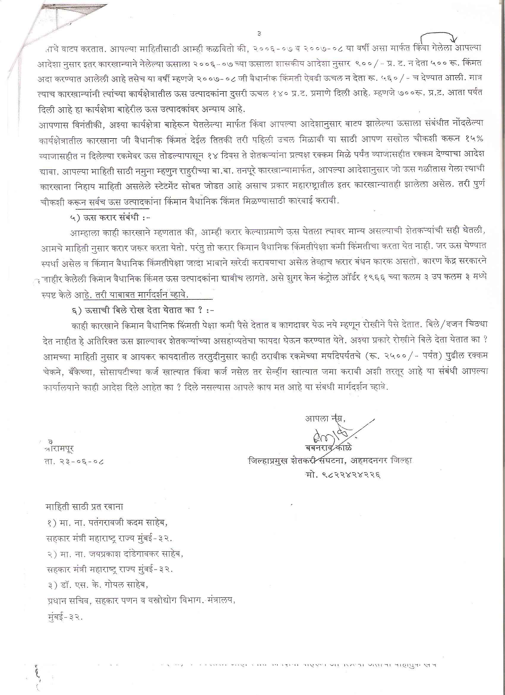 मा. सदस्य - महाराष्ट्र शासन गठीत ऊस दर समिती