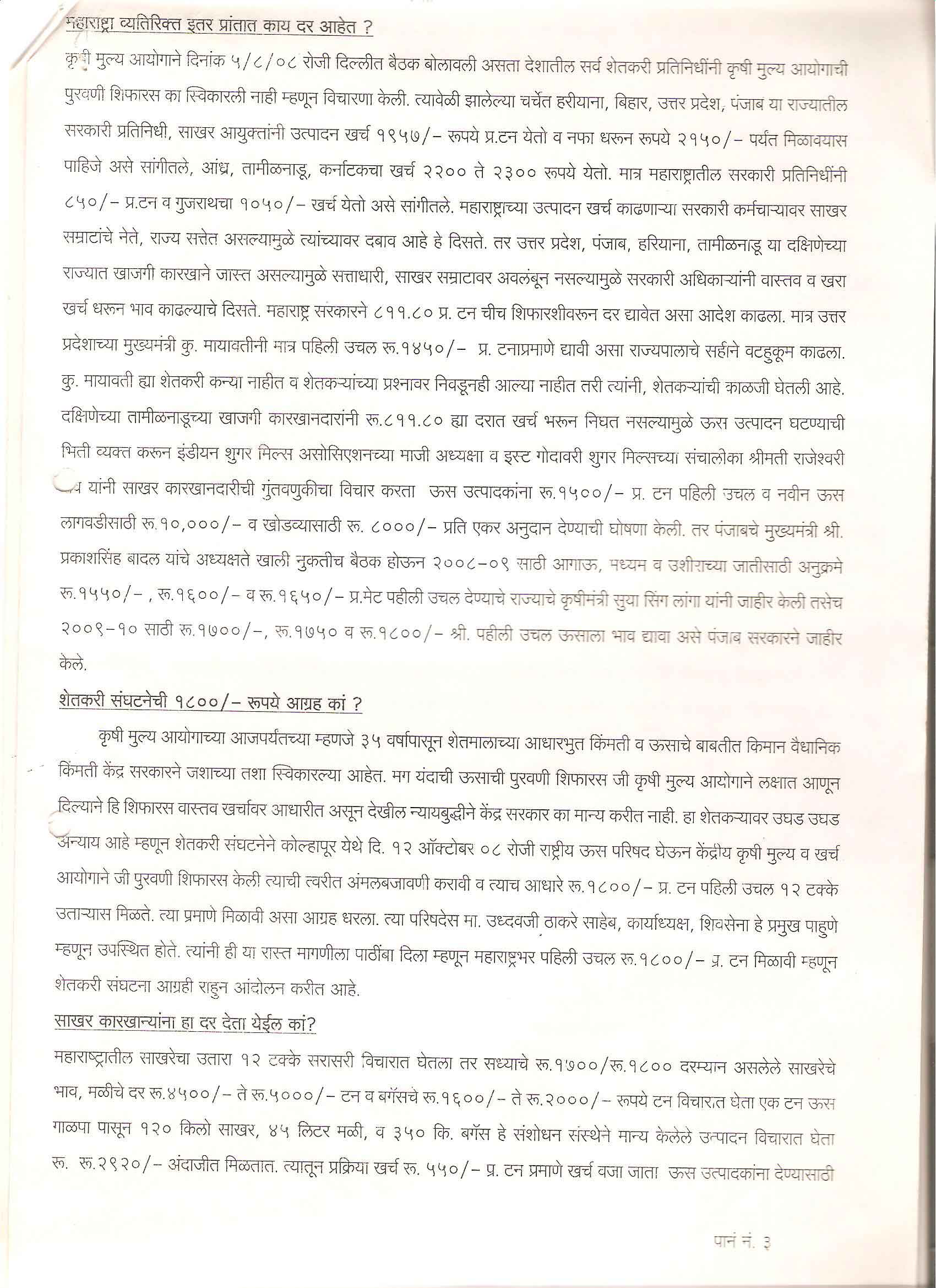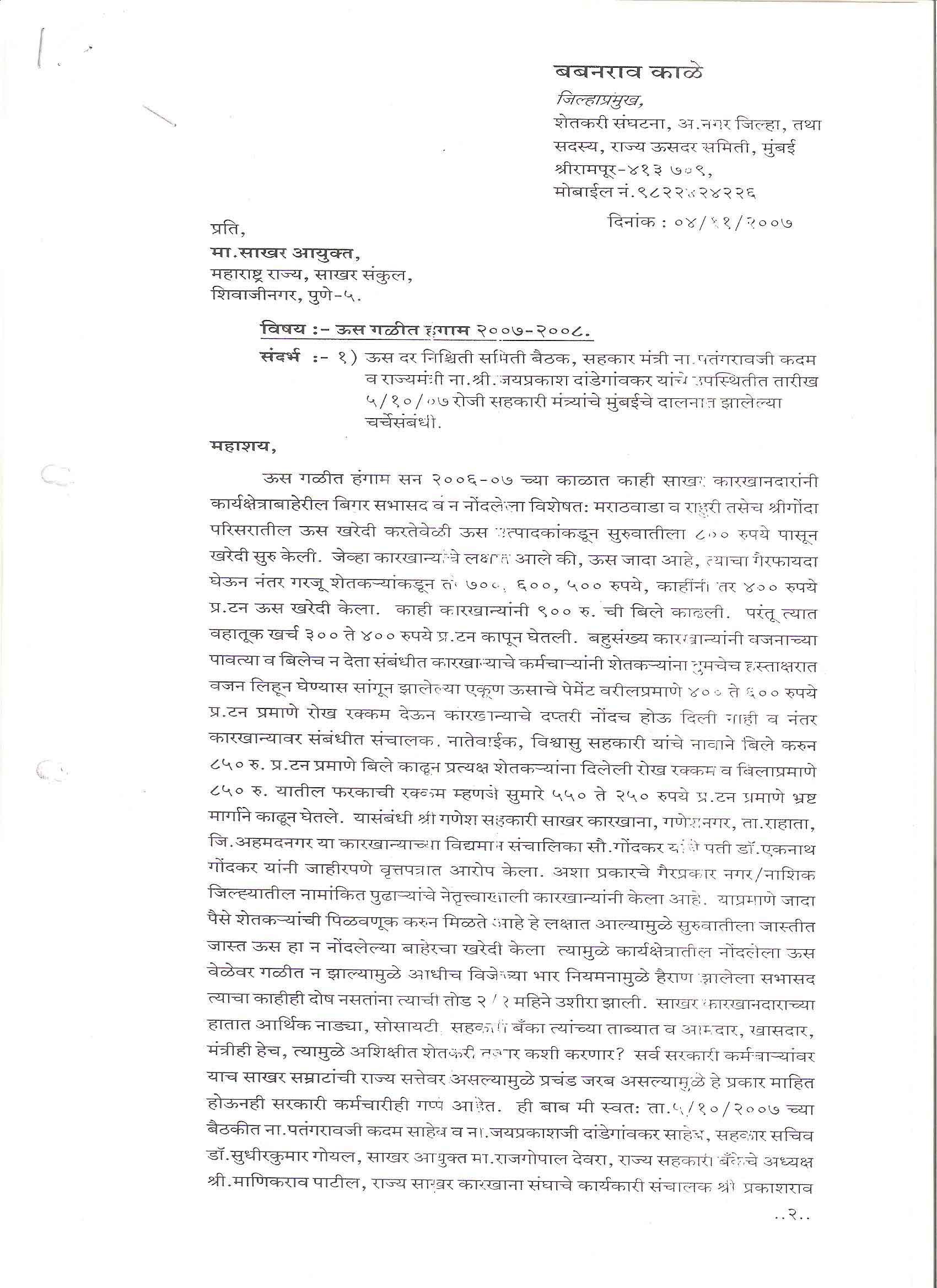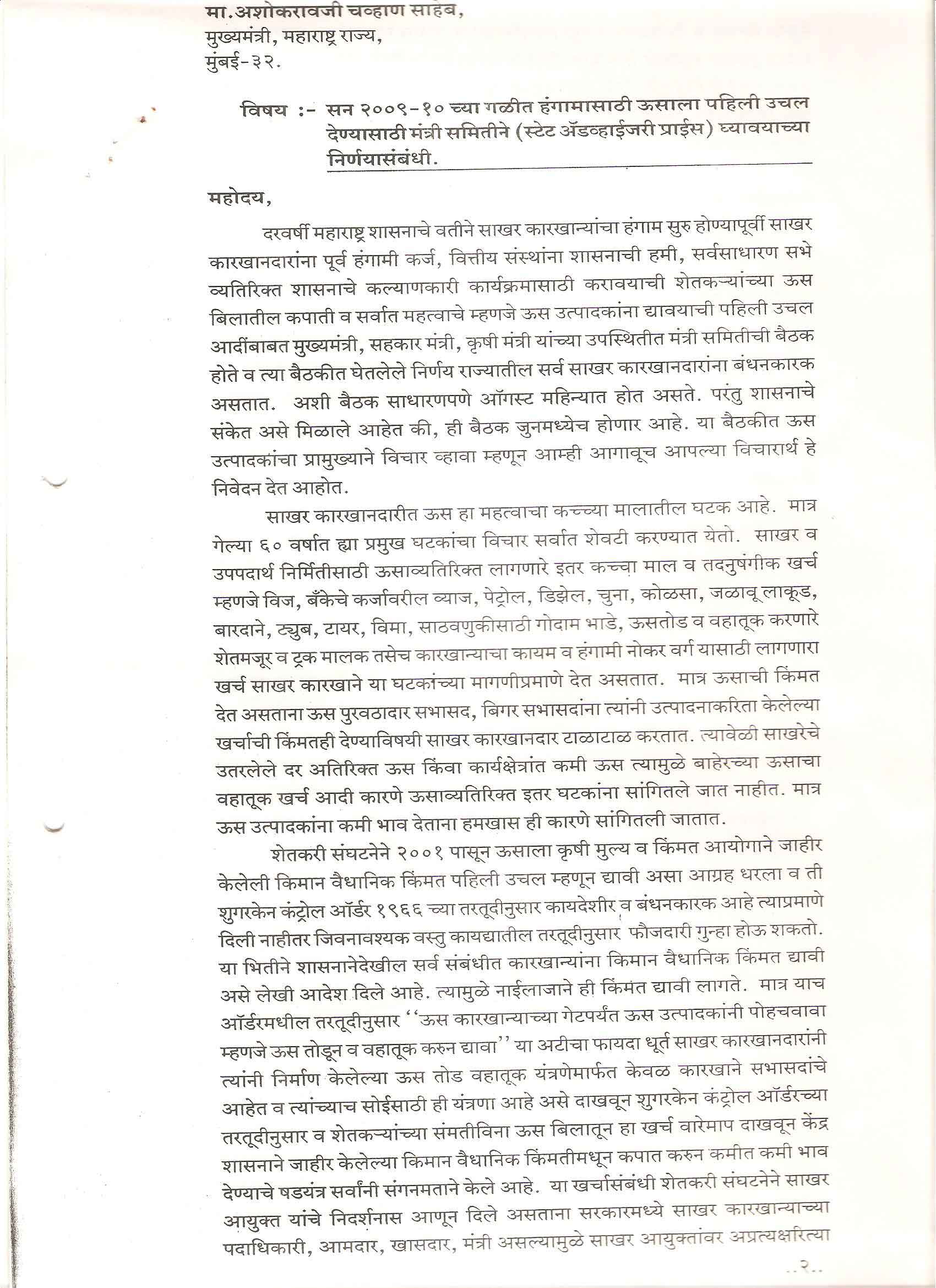 मा. सदस्य - महाराष्ट्र शासन गठीत ऊस दर समिती