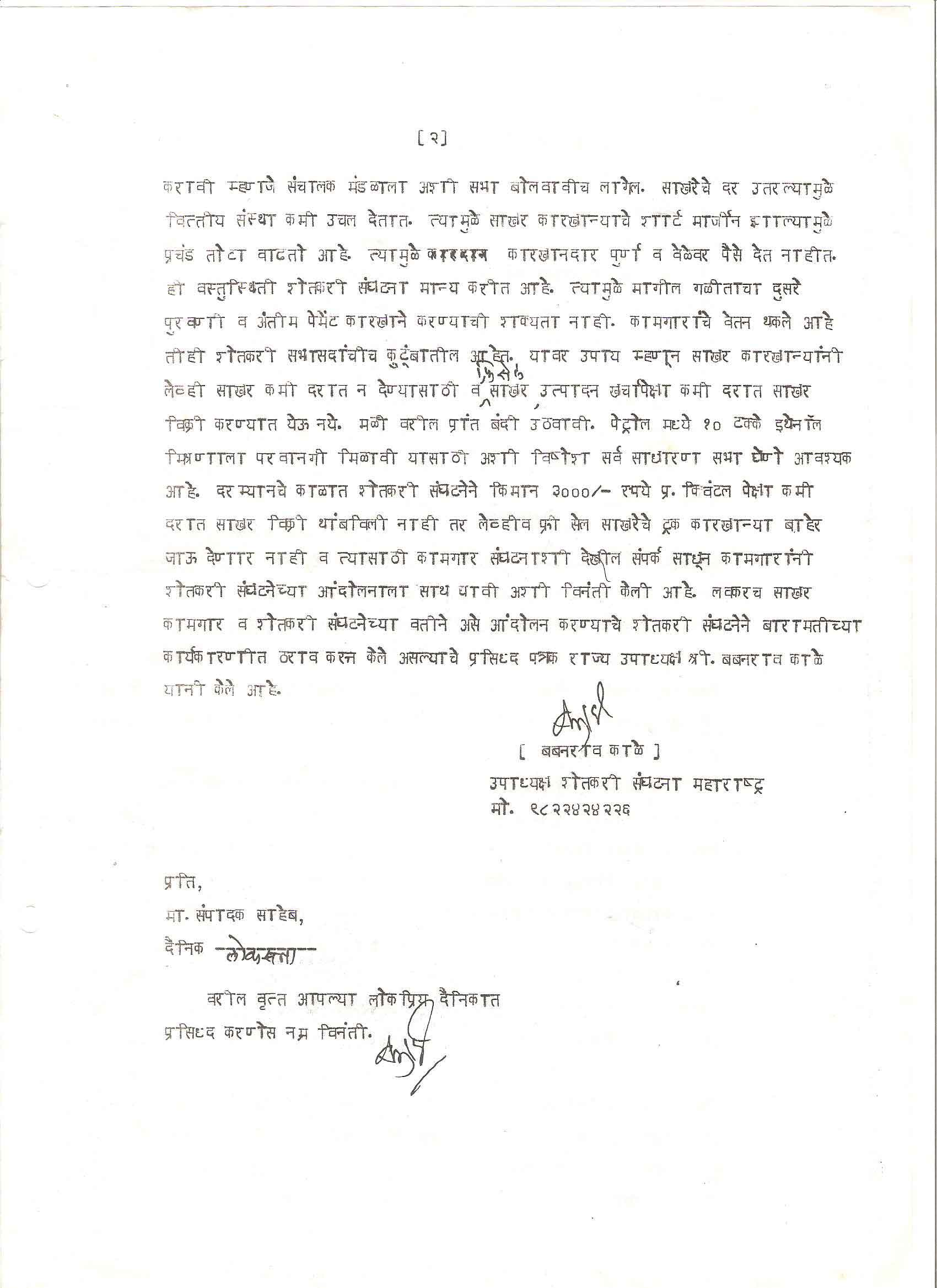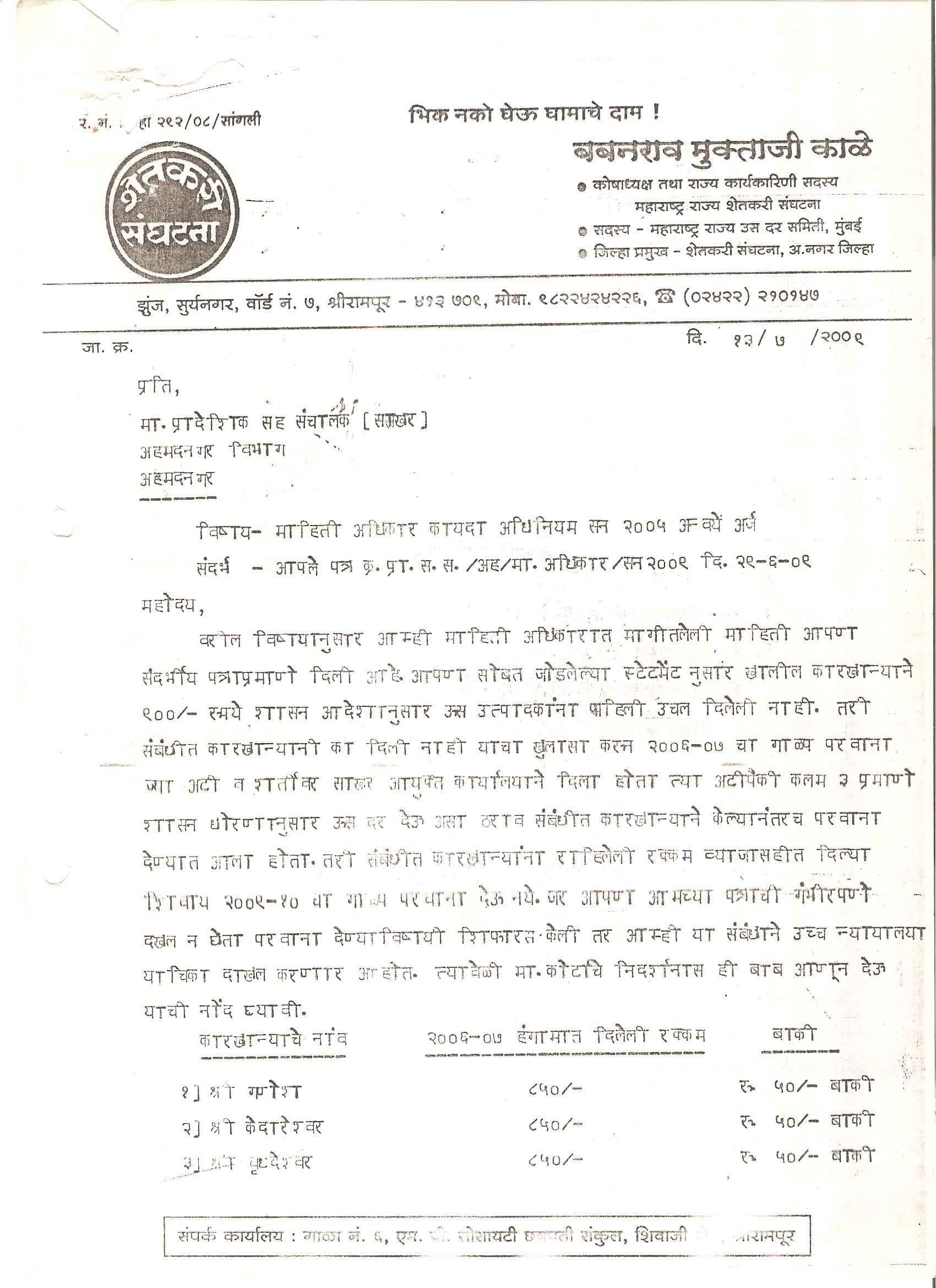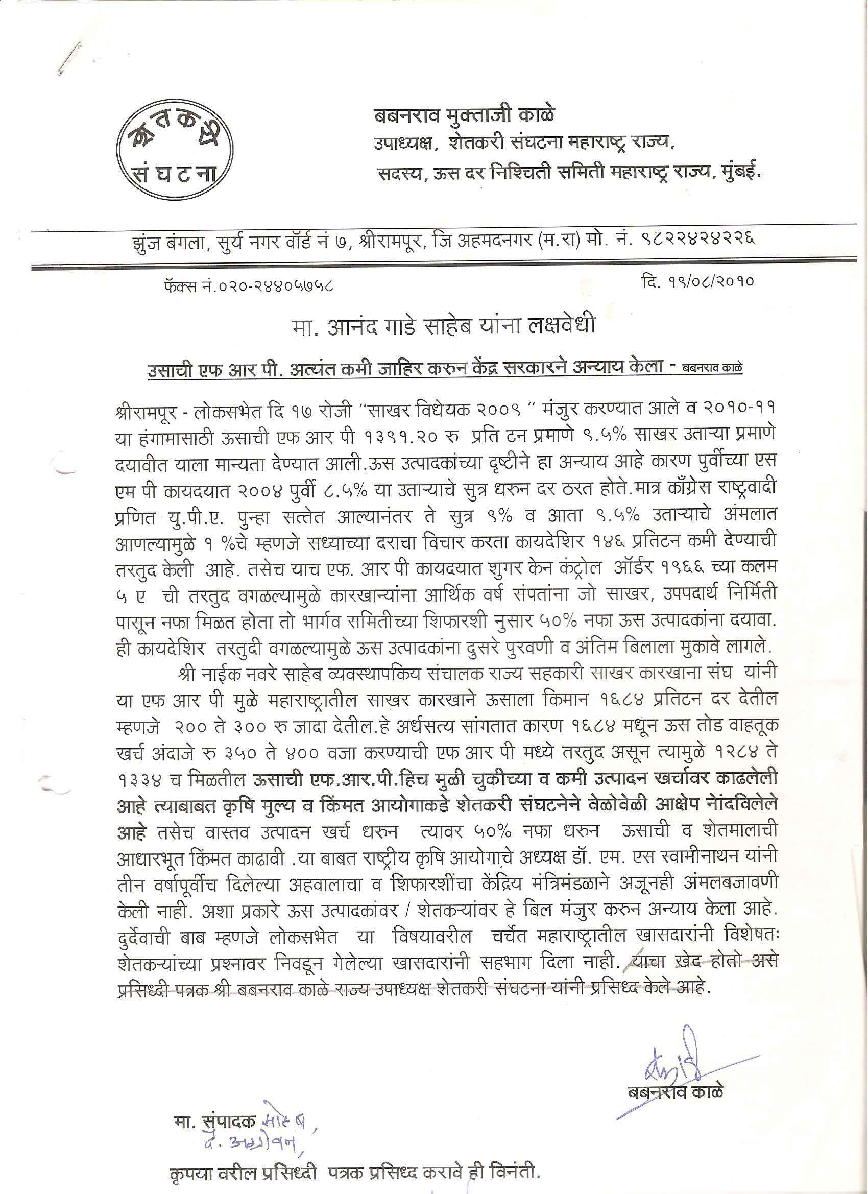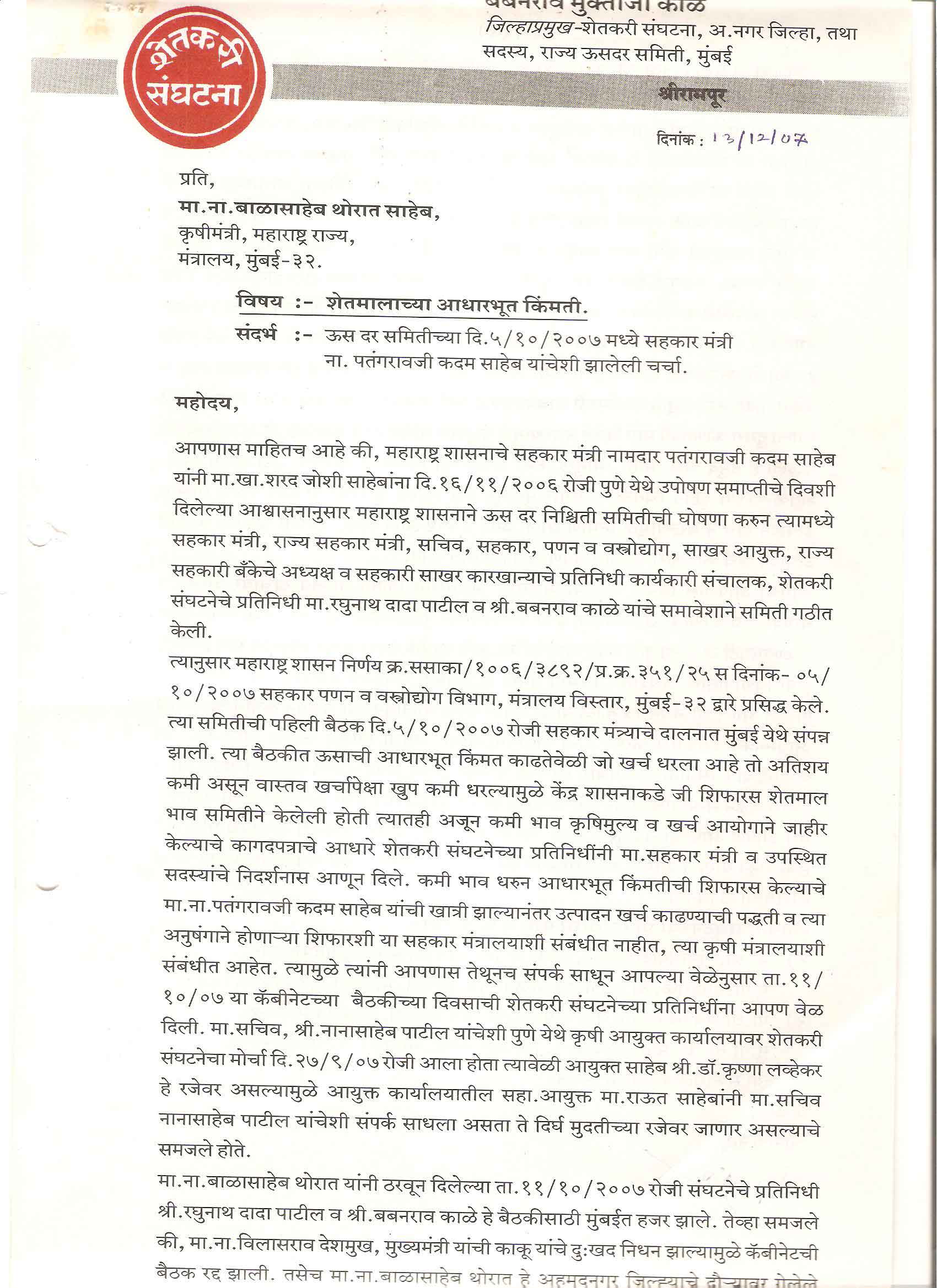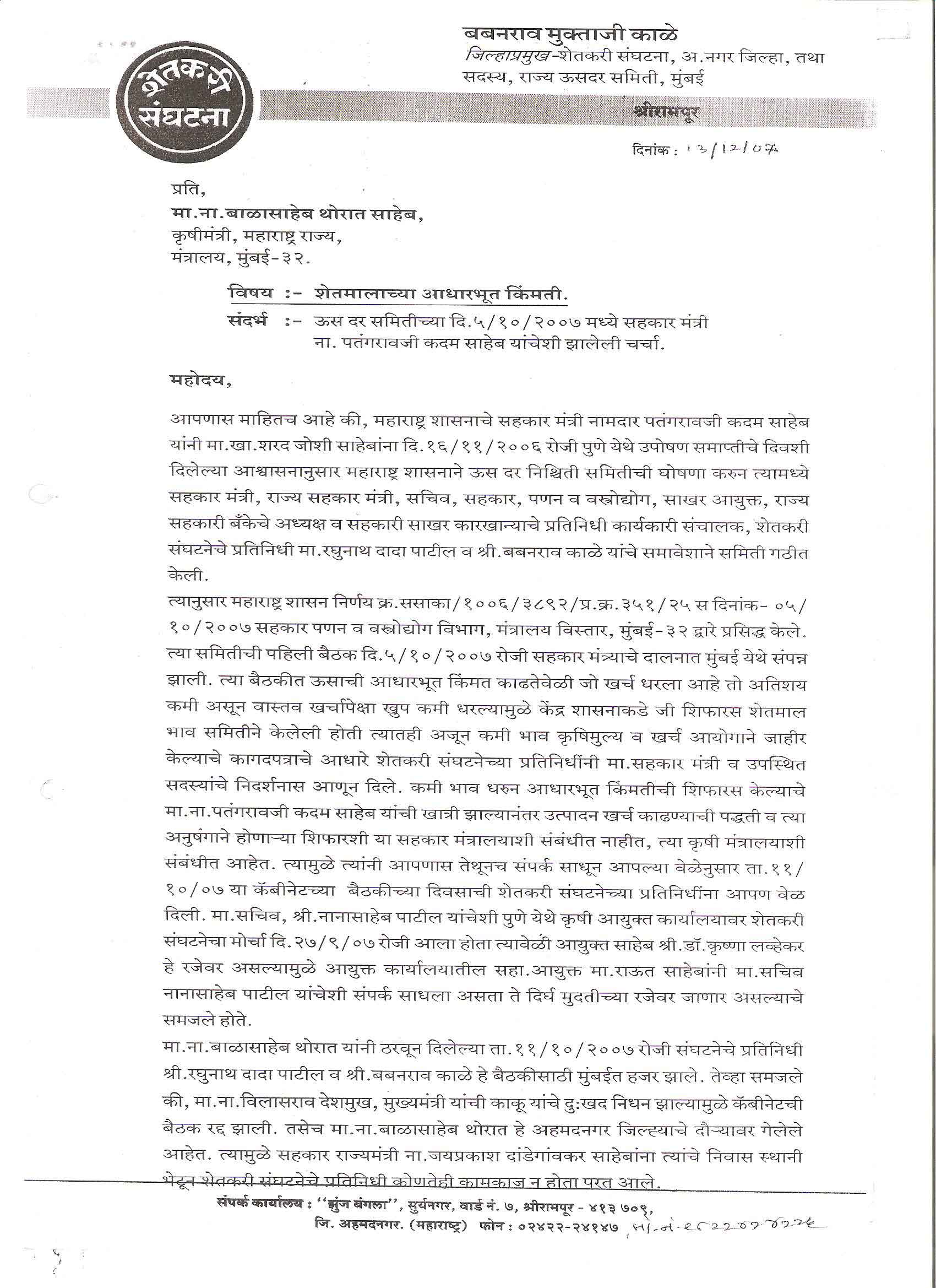 मा. कोषाध्यक्ष तथा राज्यकार्यकारणी सदस्य, शेतकरी संघटना
