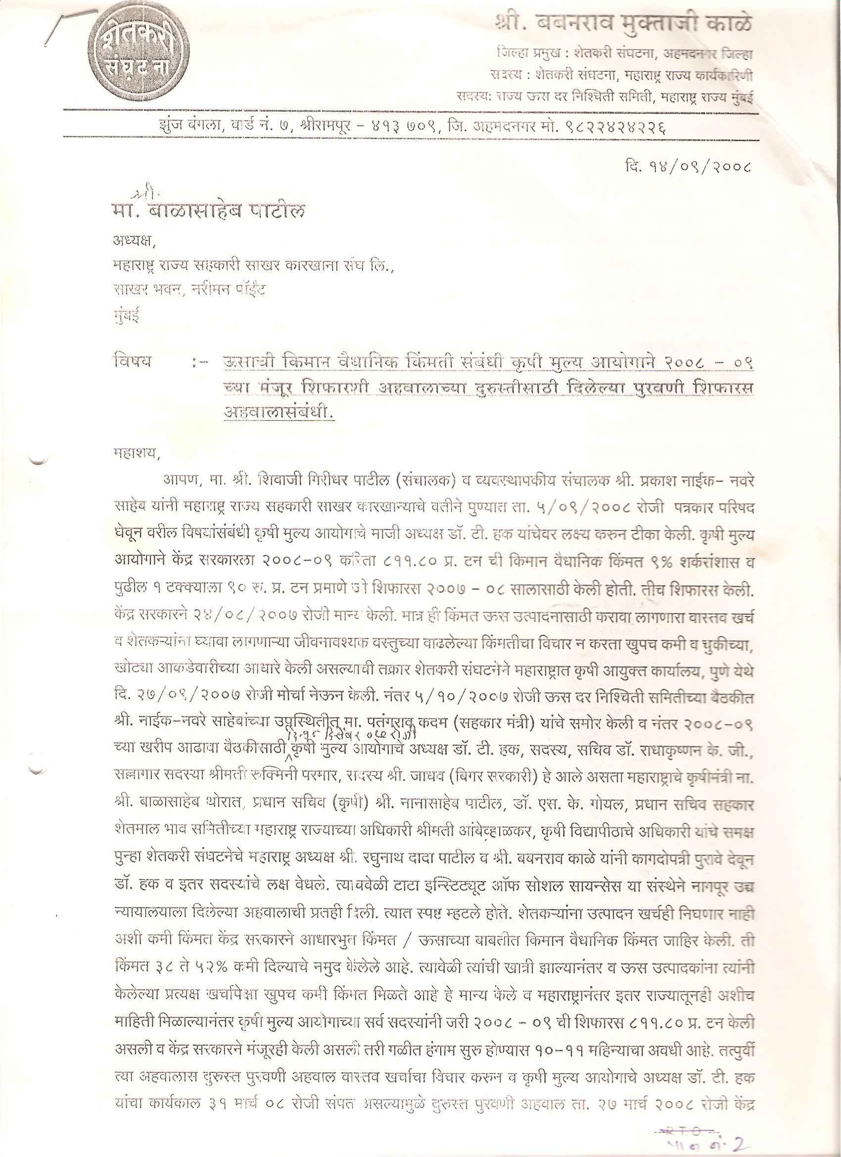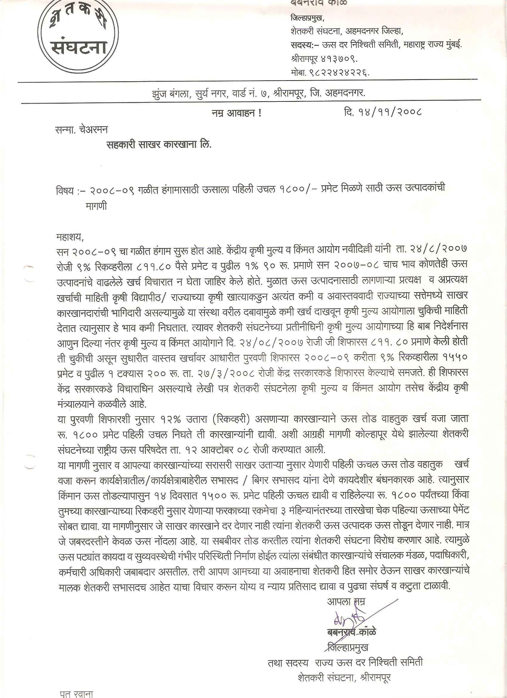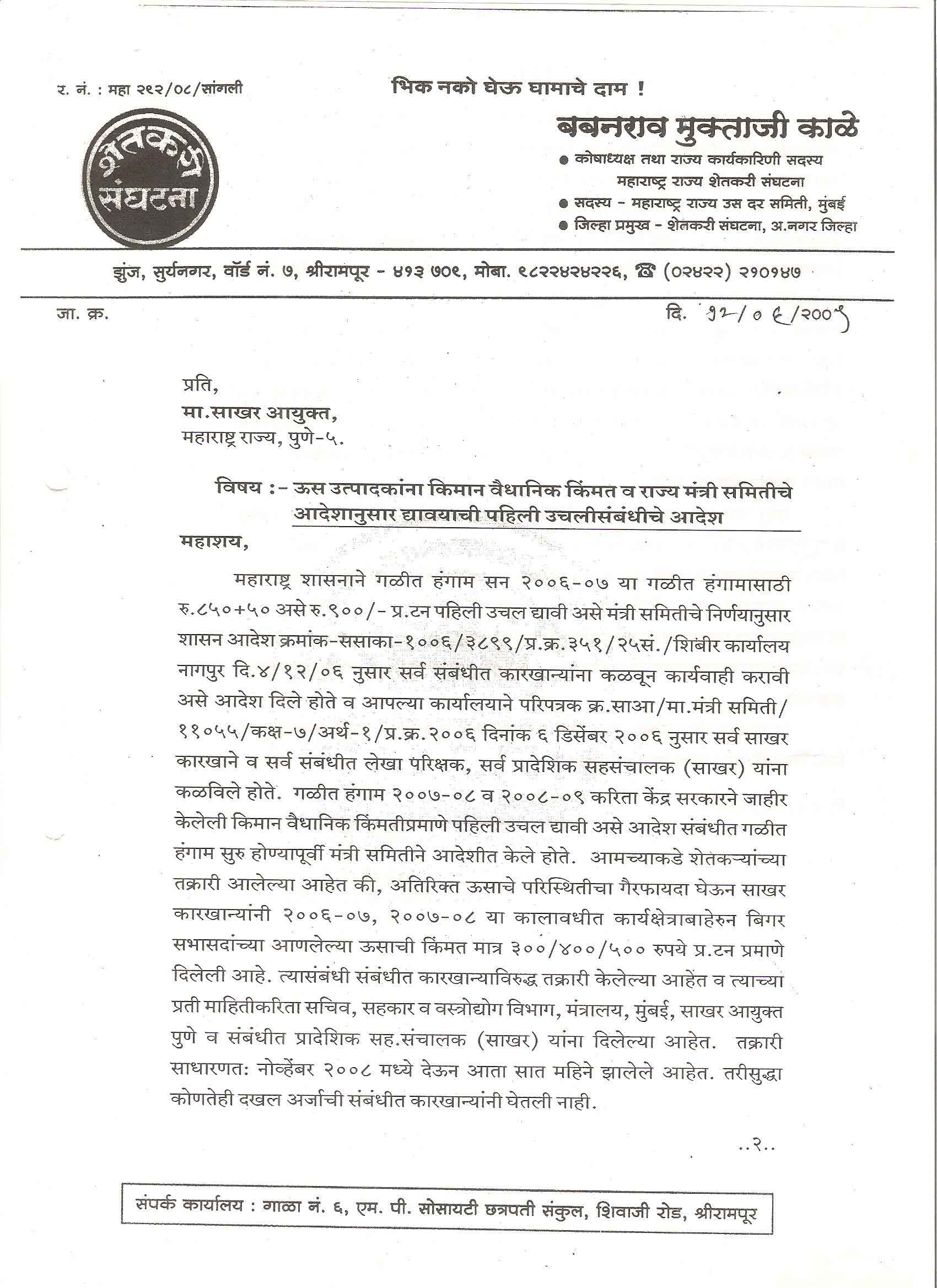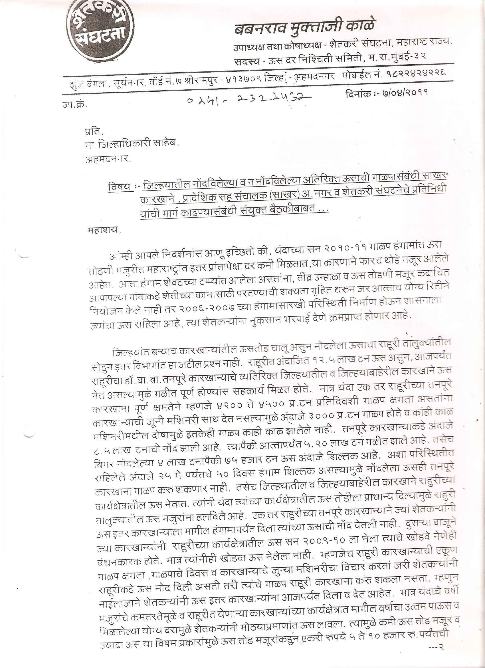 मा. कोषाध्यक्ष तथा राज्यकार्यकारणी सदस्य, शेतकरी संघटना