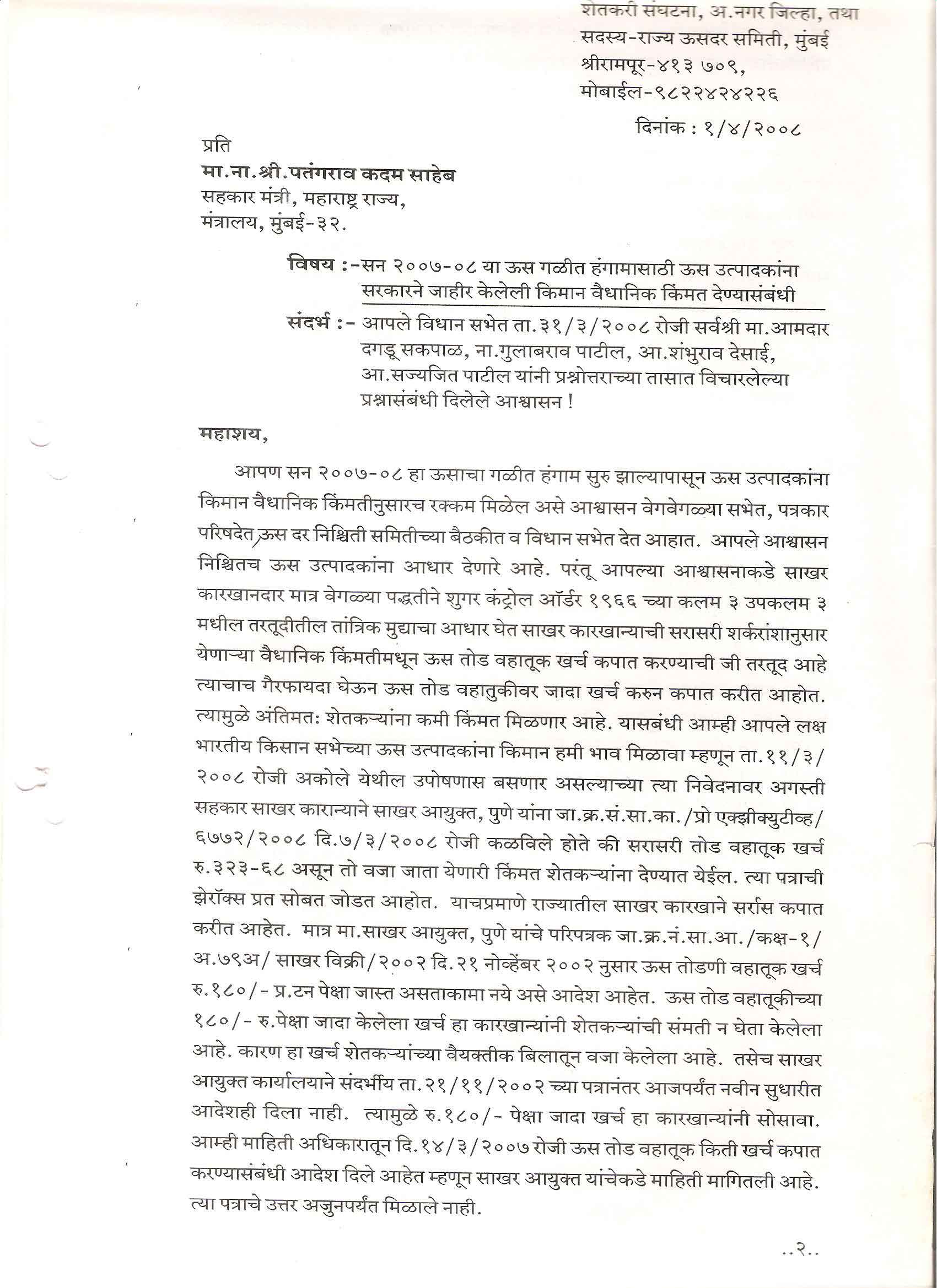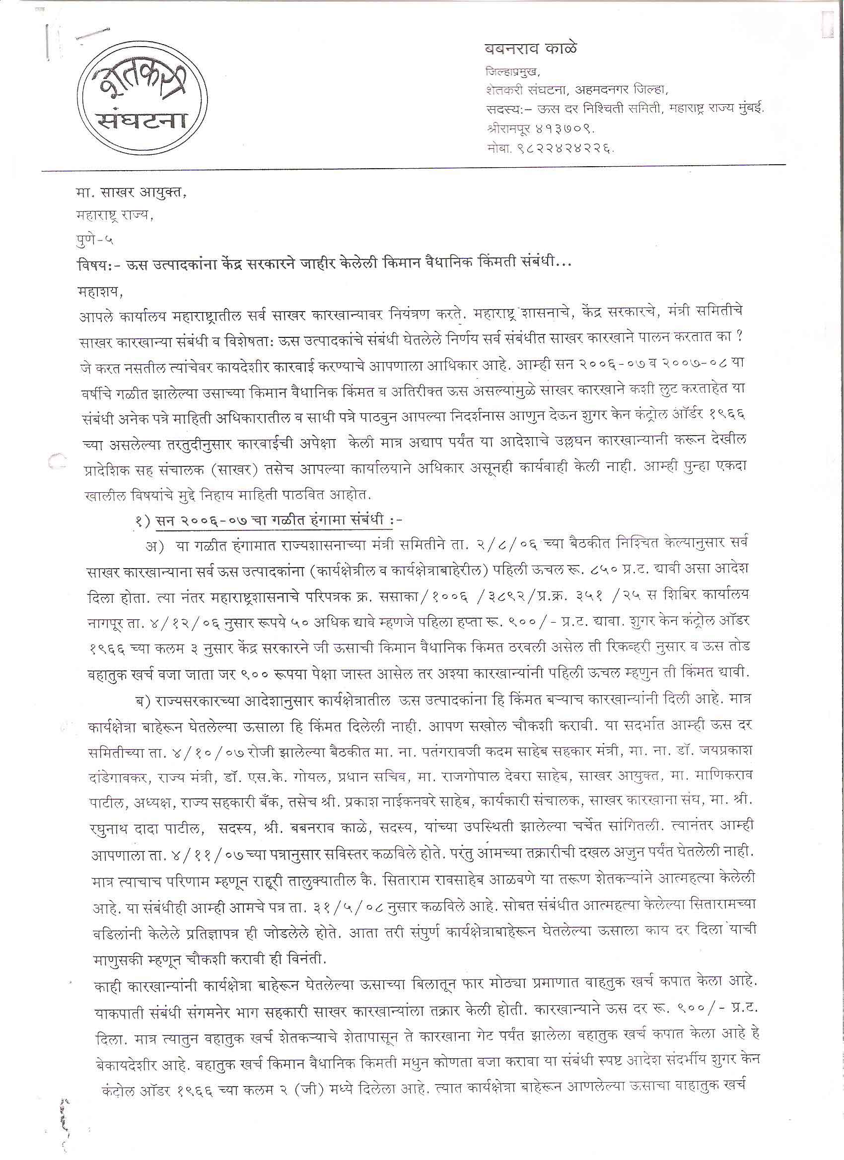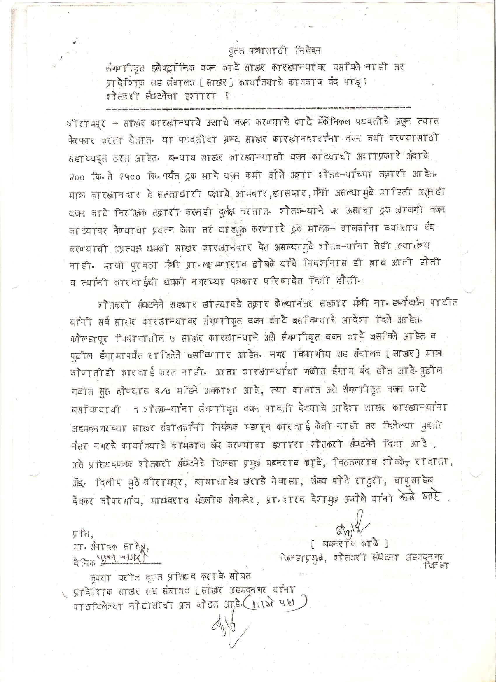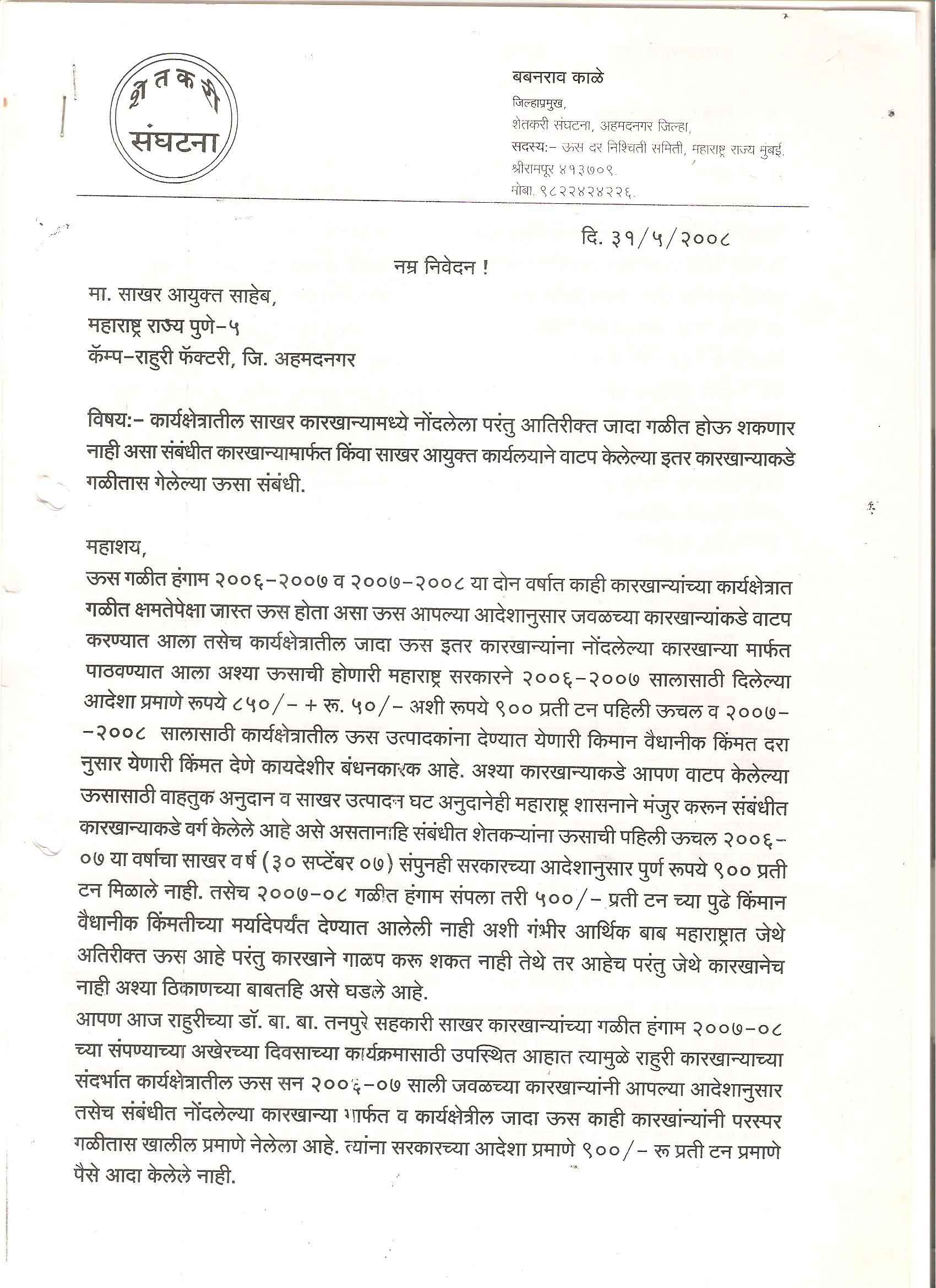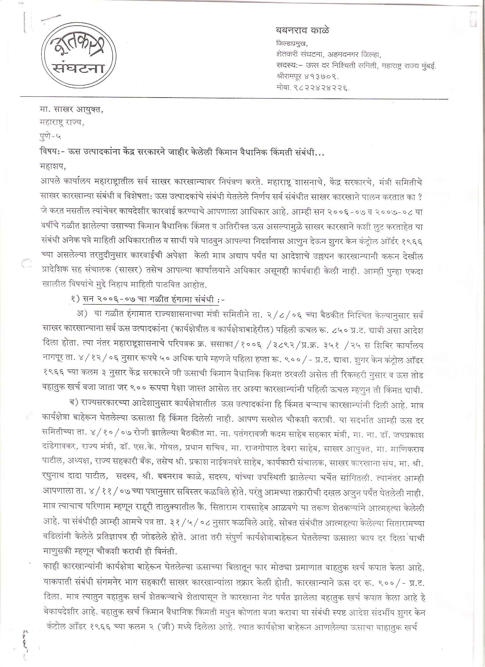 मा. कोषाध्यक्ष तथा राज्यकार्यकारणी सदस्य, शेतकरी संघटना