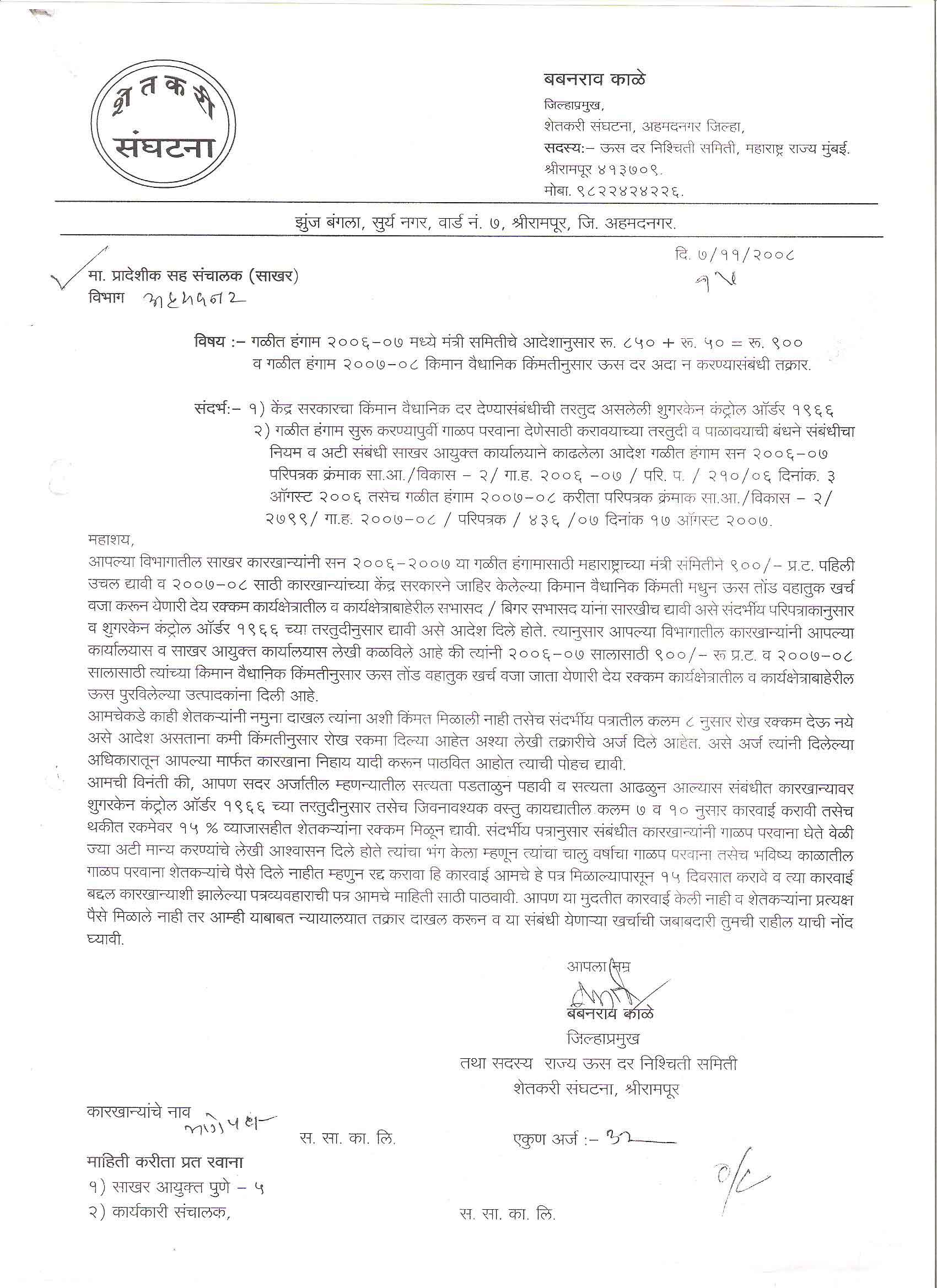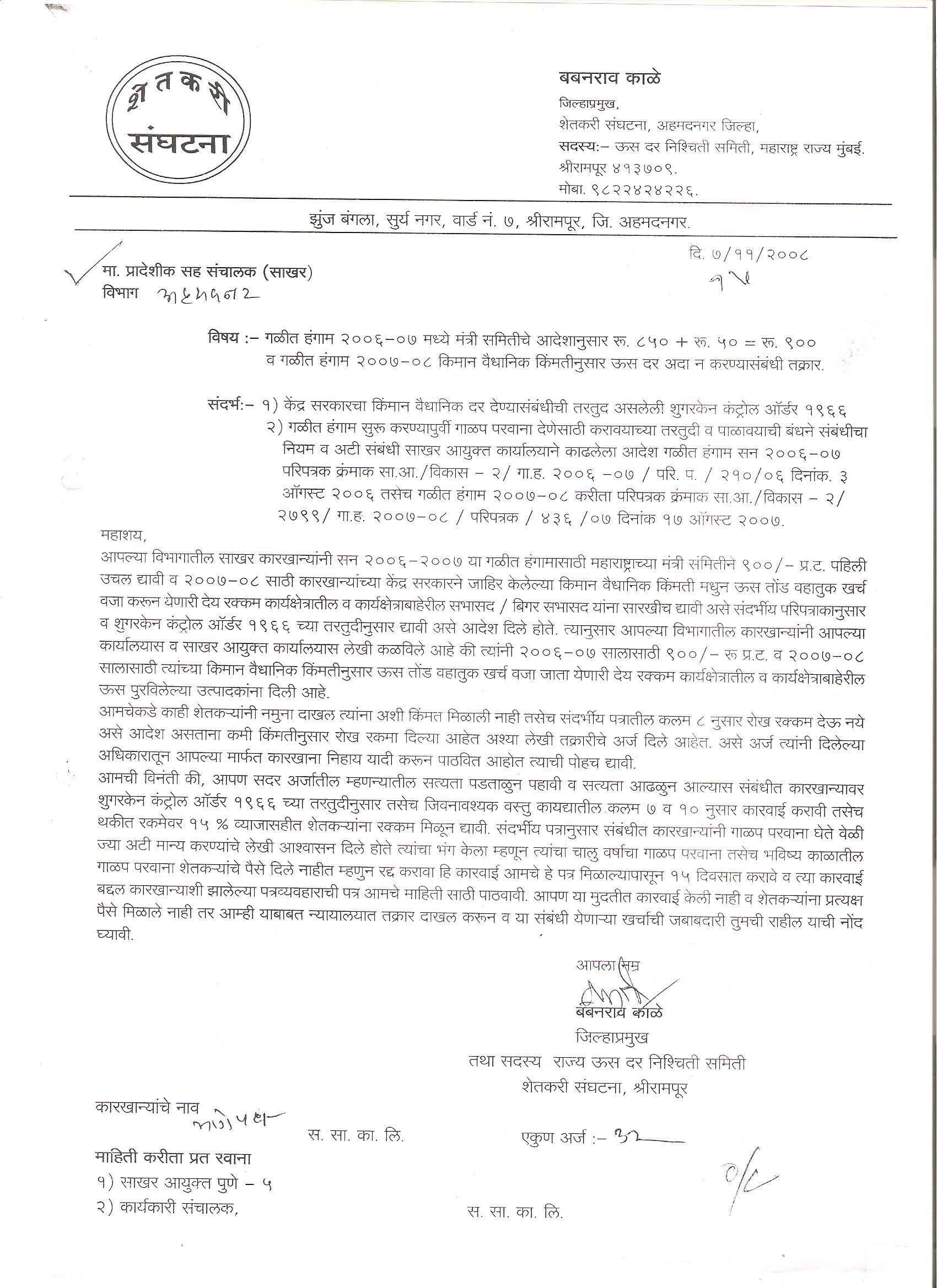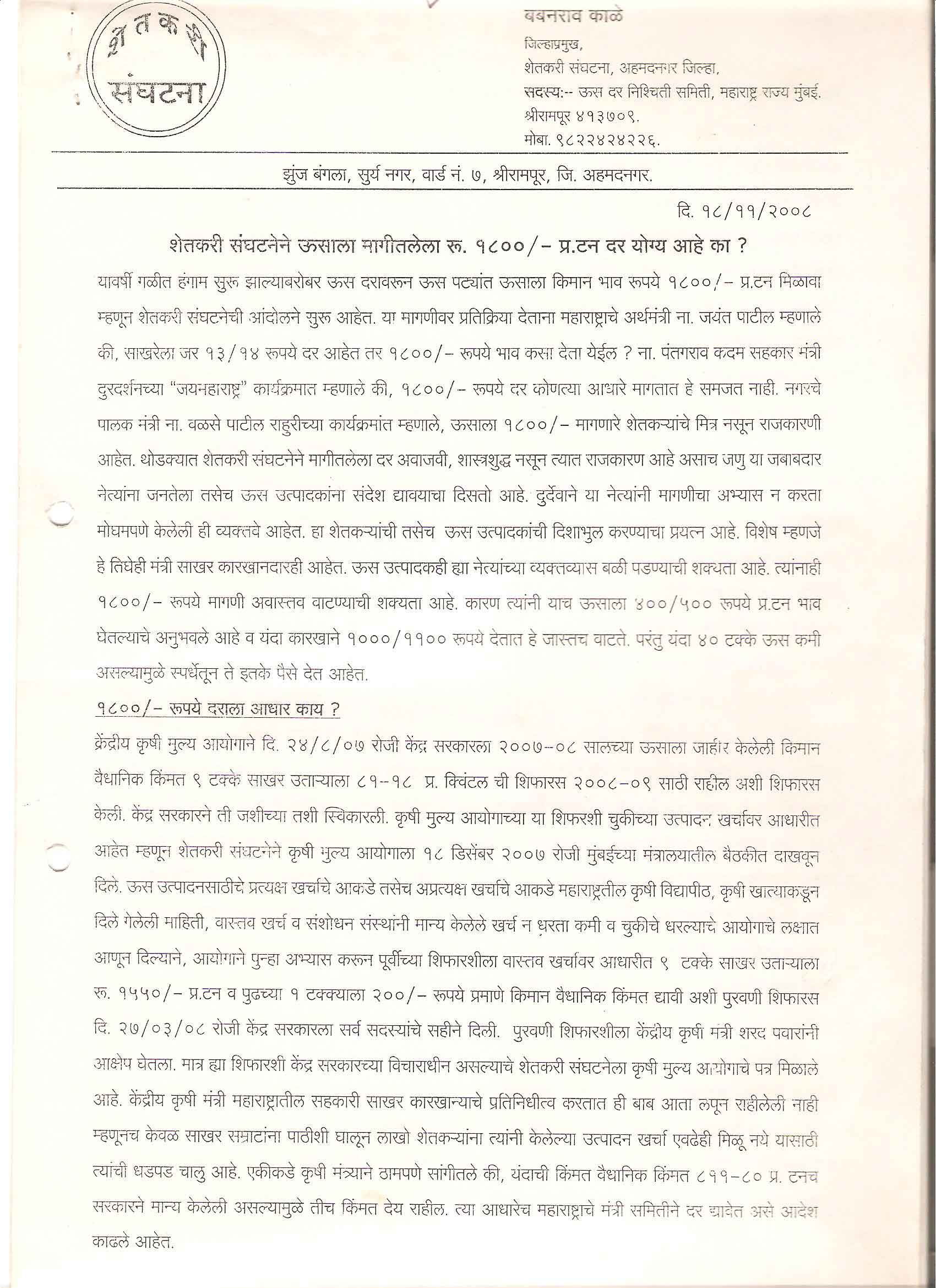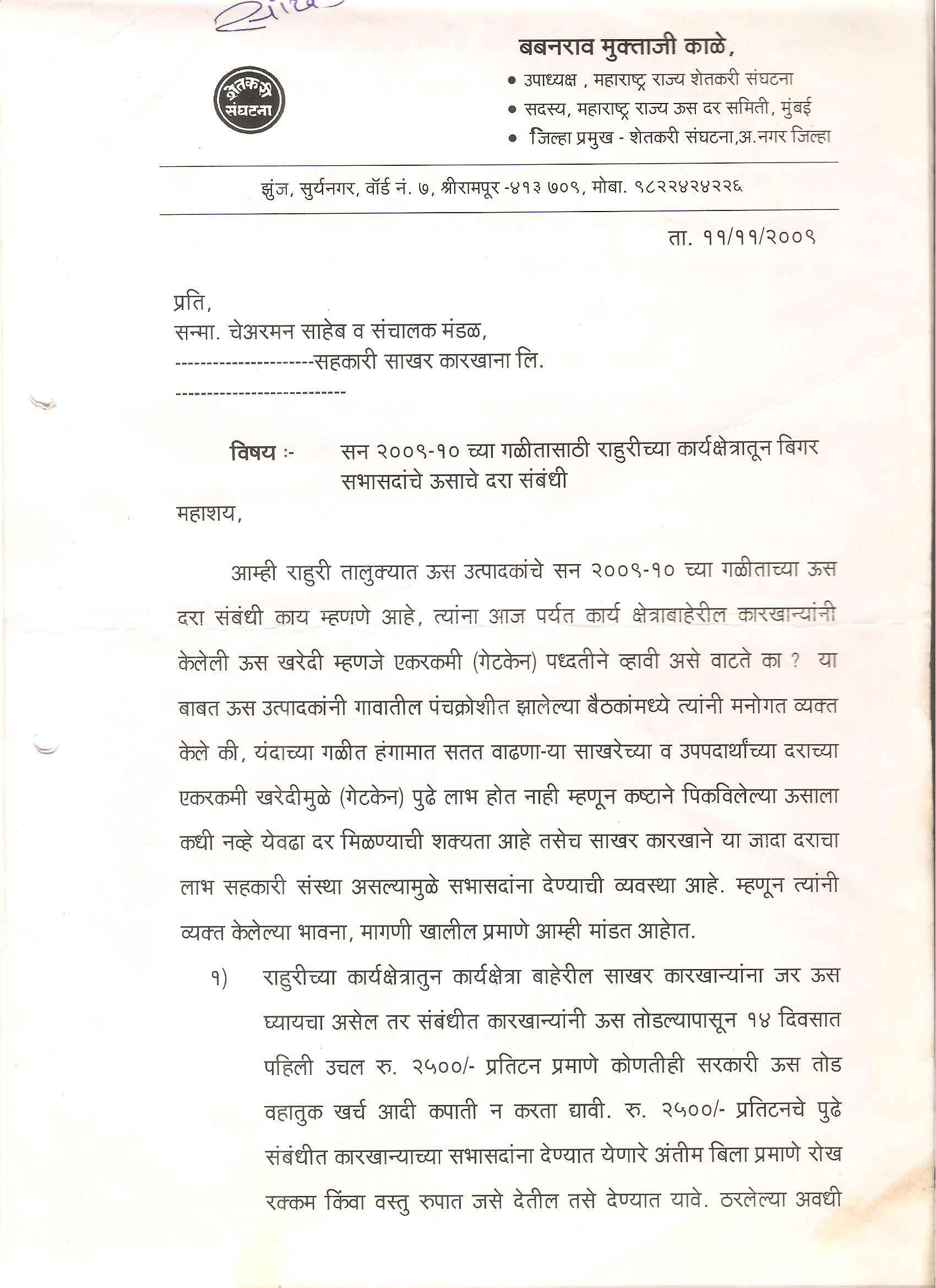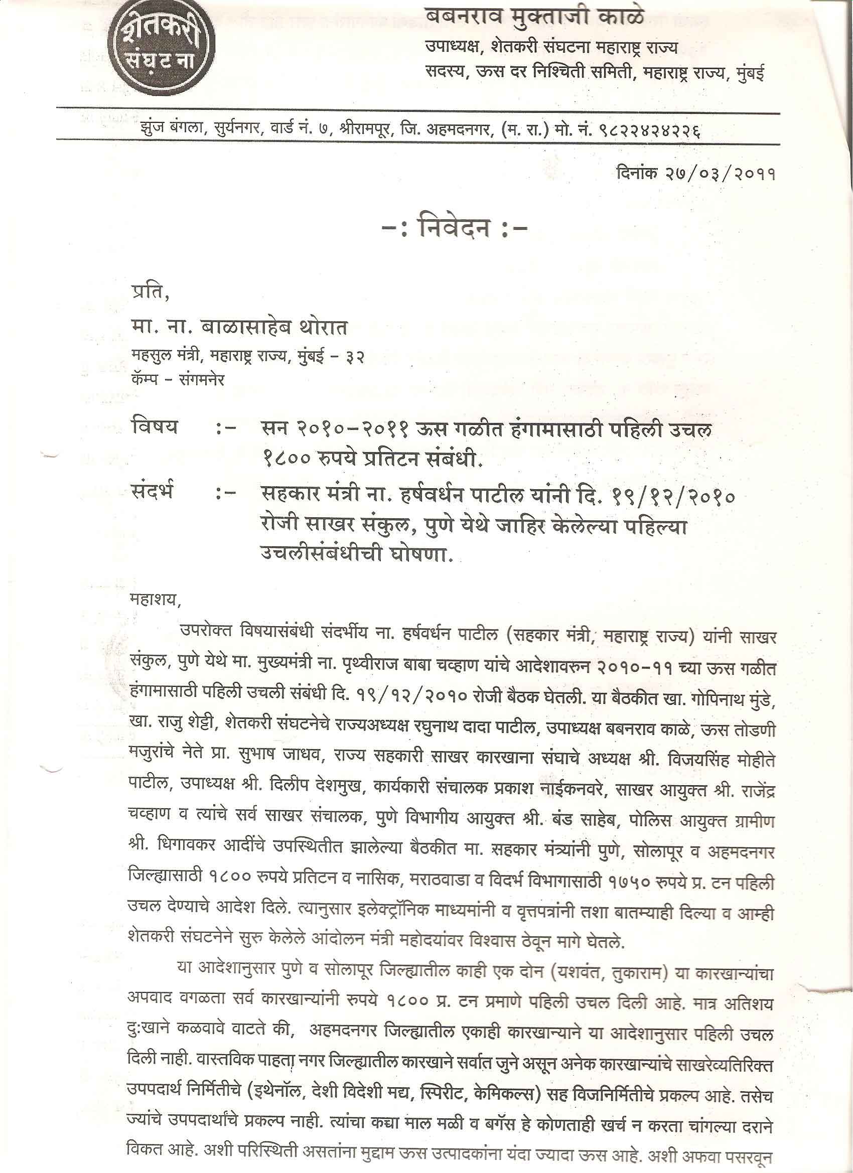 मा. कोषाध्यक्ष तथा राज्यकार्यकारणी सदस्य, शेतकरी संघटना